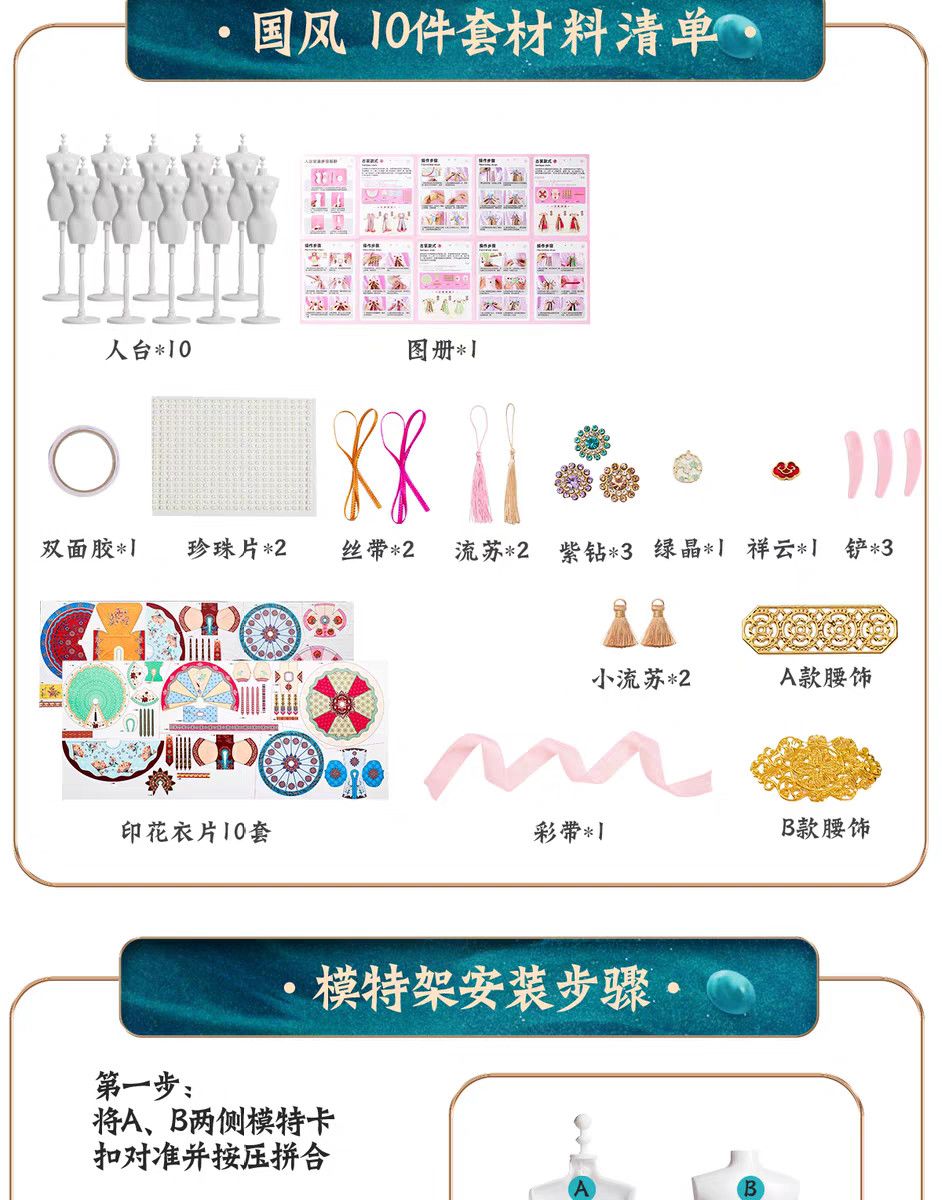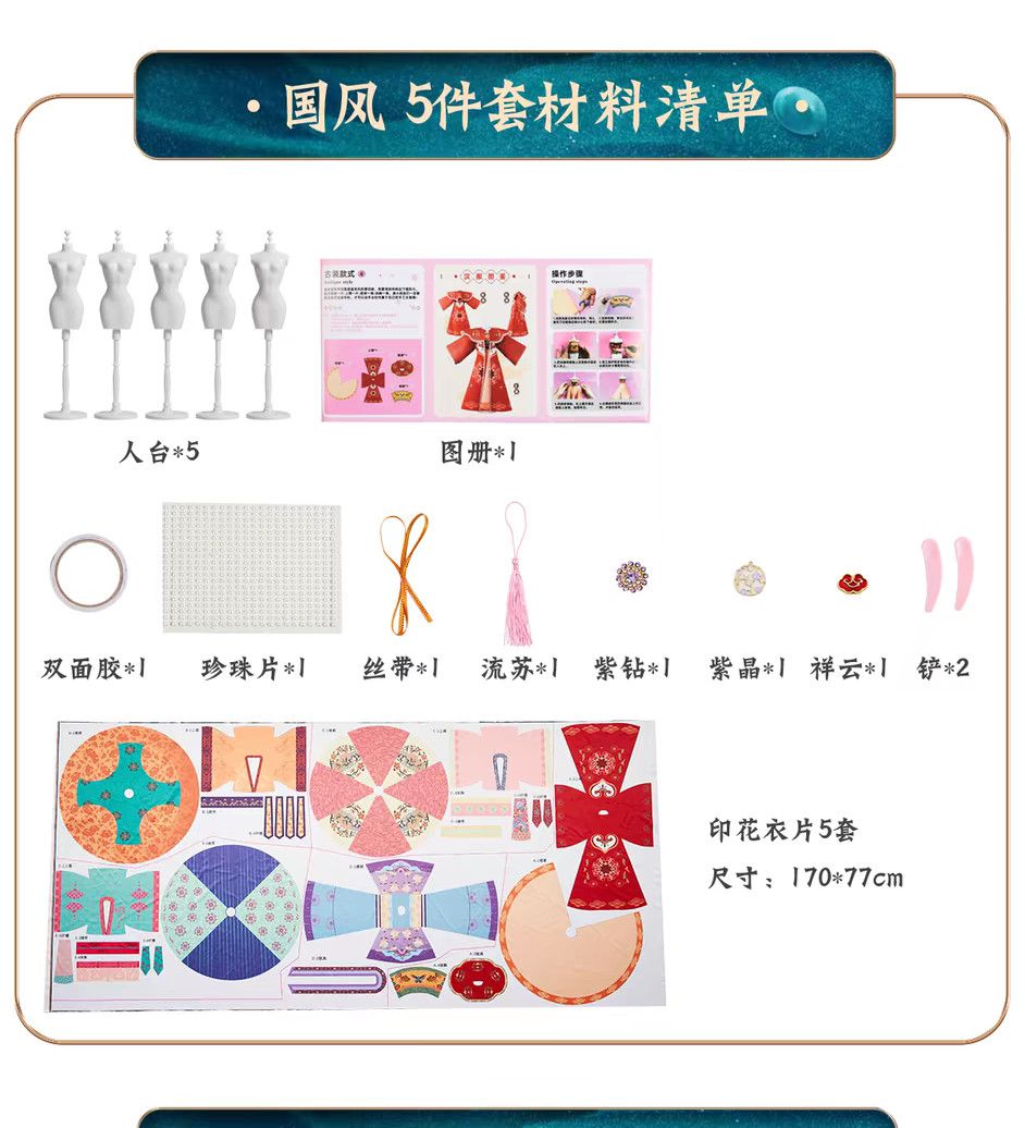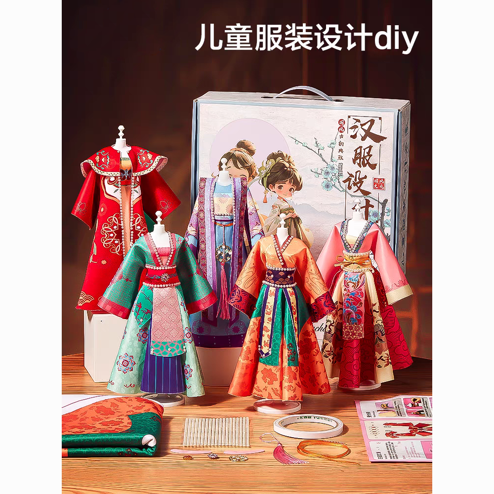 儿童手工diy服装设计女孩玩具过家家国风汉服古装套装生日礼物