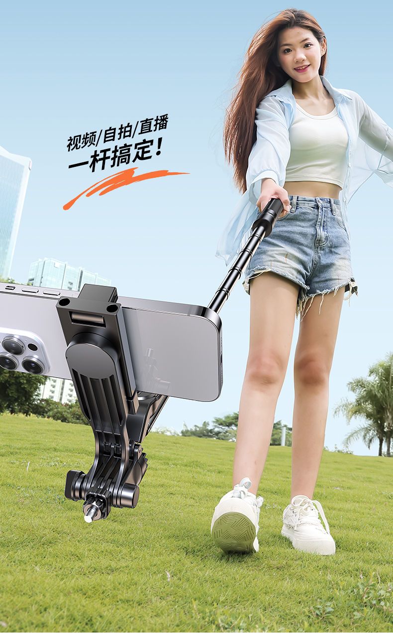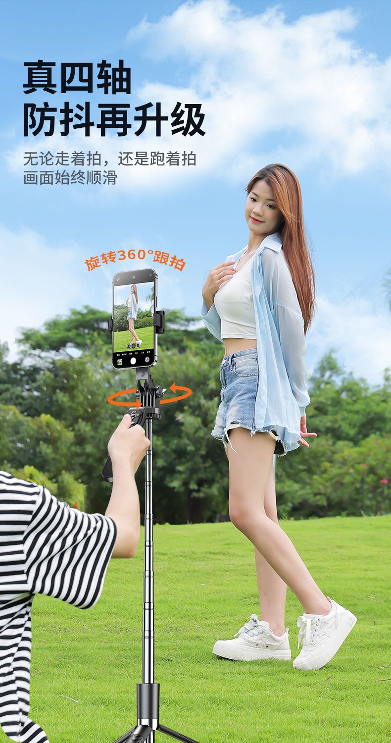 四轴2024新款自拍杆三脚架手机支架便携式自拍神器360度旋转