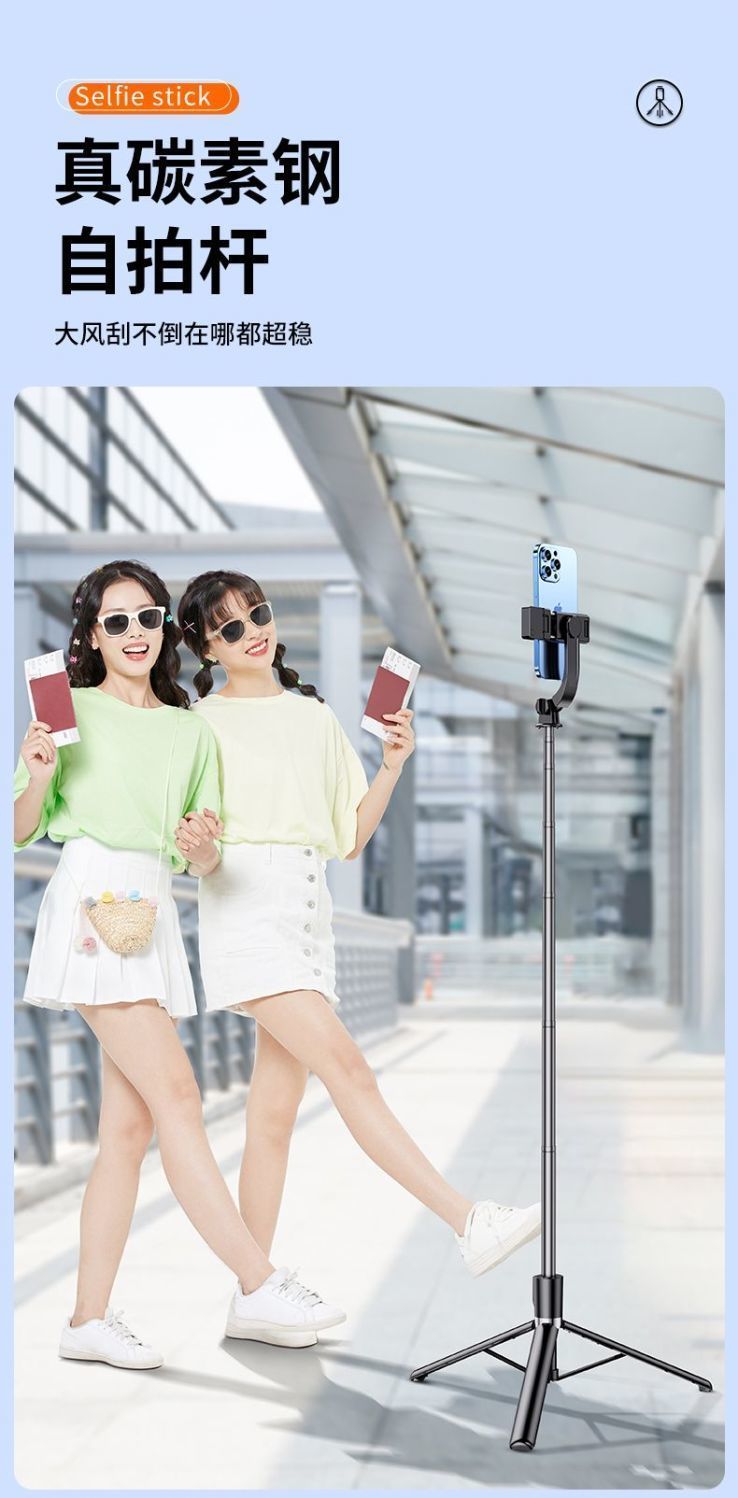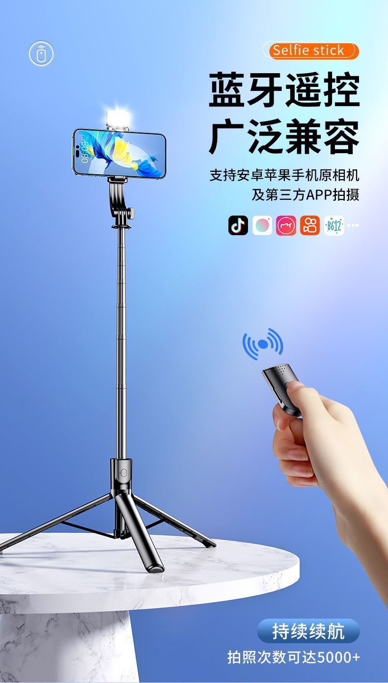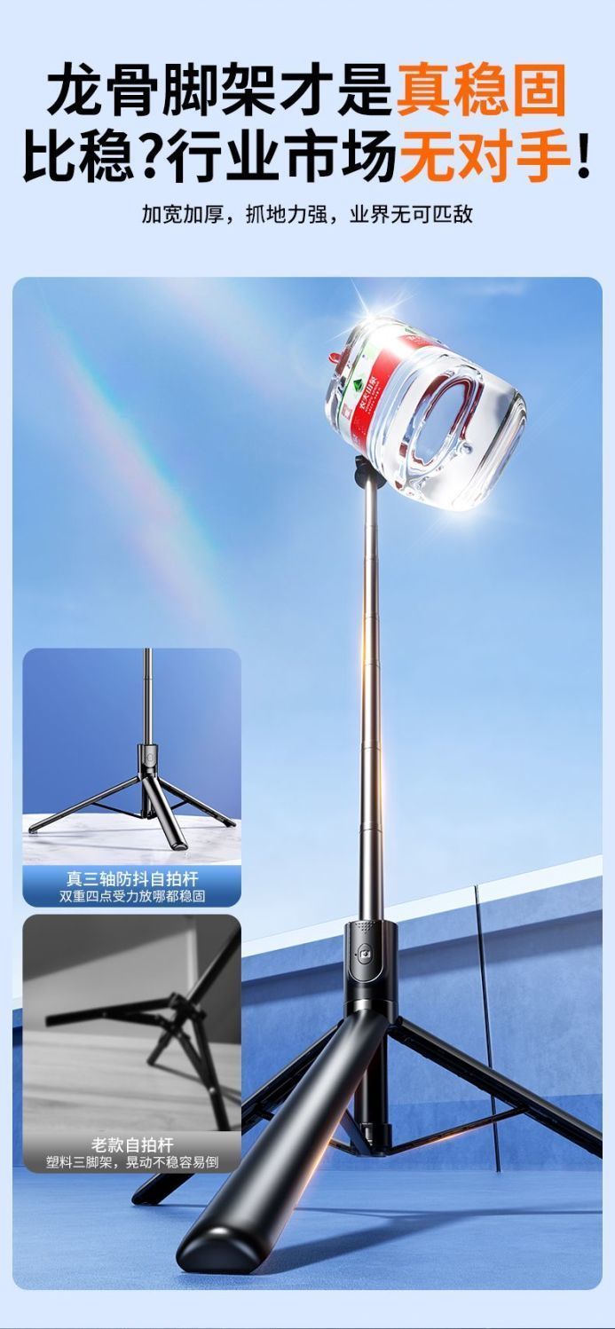1.8米自拍杆三脚架蓝牙手机直播抖音360度补光手持落地支架通用