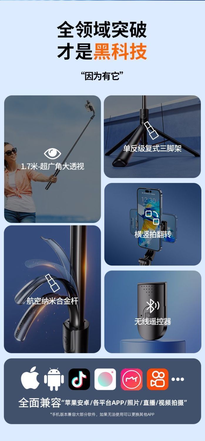 | 1.7 m + fill light [obsidian black + bluetooth remote control] duplex keel(1.7米+补光灯【曜石黑+蓝牙遥控】复式龙骨) | USD $6.81 | 999999 piece available |