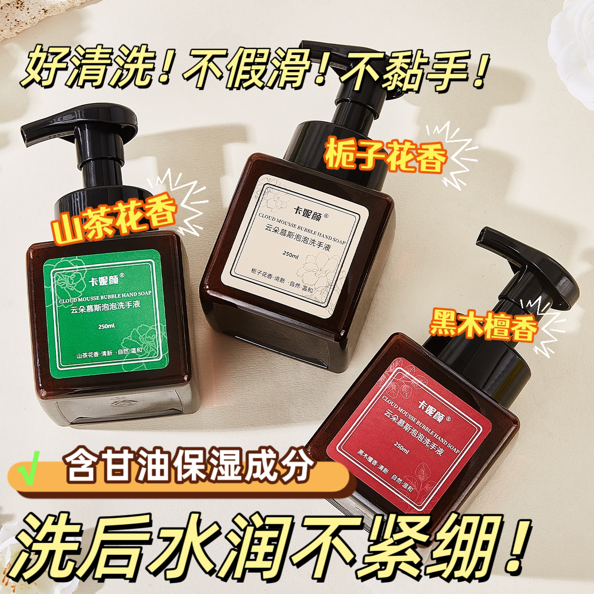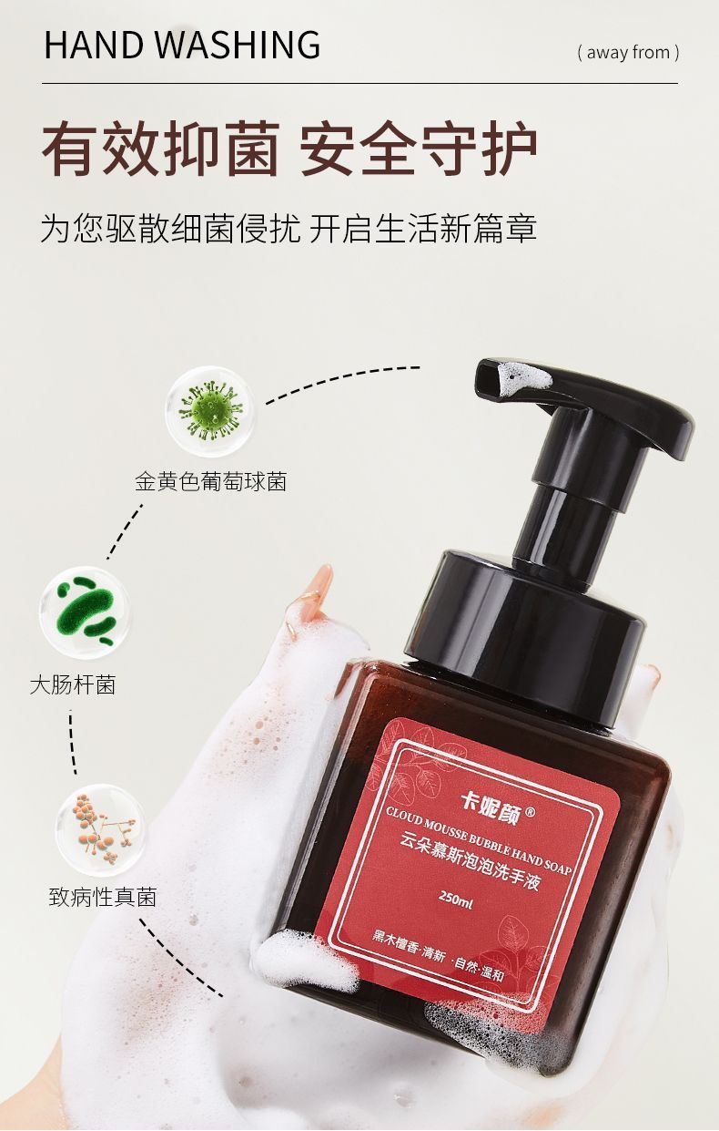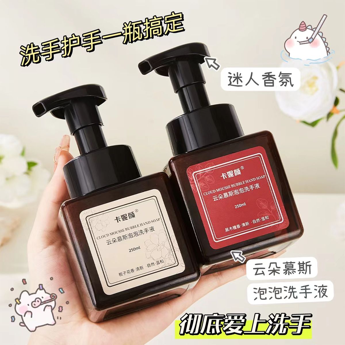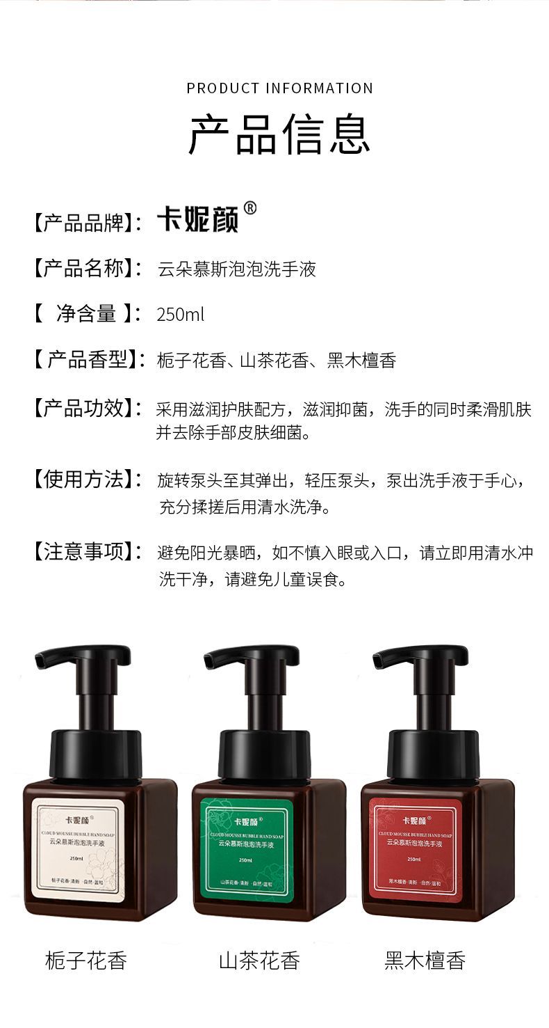 云朵慕斯泡沫洗手液香味持久超香按压瓶补充装杀菌抑菌泡沫型家庭