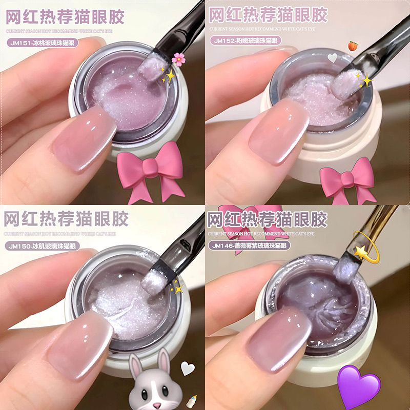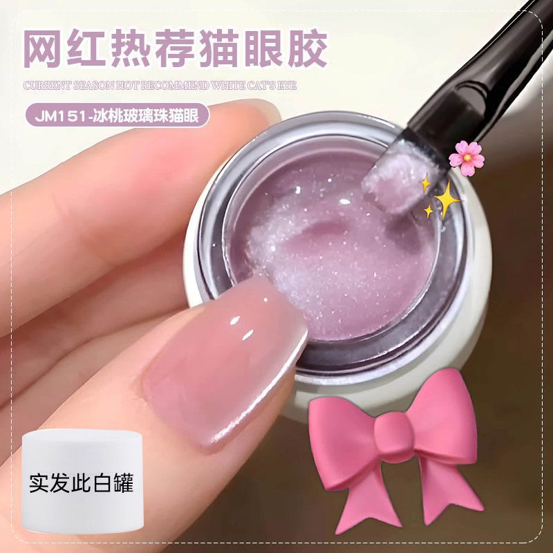 紫水晶玻璃珠猫眼甲油胶2024年新款罐装冰透晶石猫眼美甲店专用