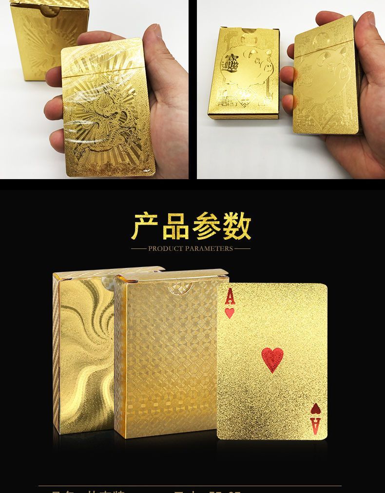 土豪金扑克可水洗耐用扑克牌金箔黄金扑克礼品塑料PVC桥牌斗地主