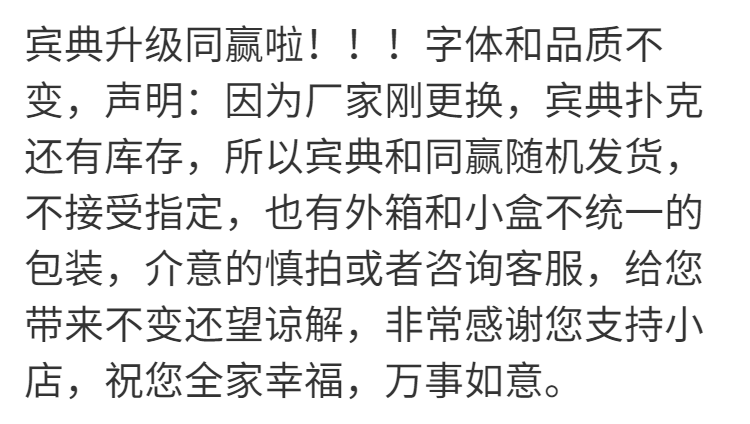 | 2 pairs of big word poker random (bad box) no refund(大字扑克2副随机(坏盒子)不退) | USD $0.42 | 999999 piece available |