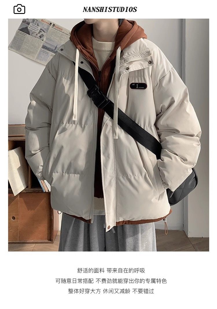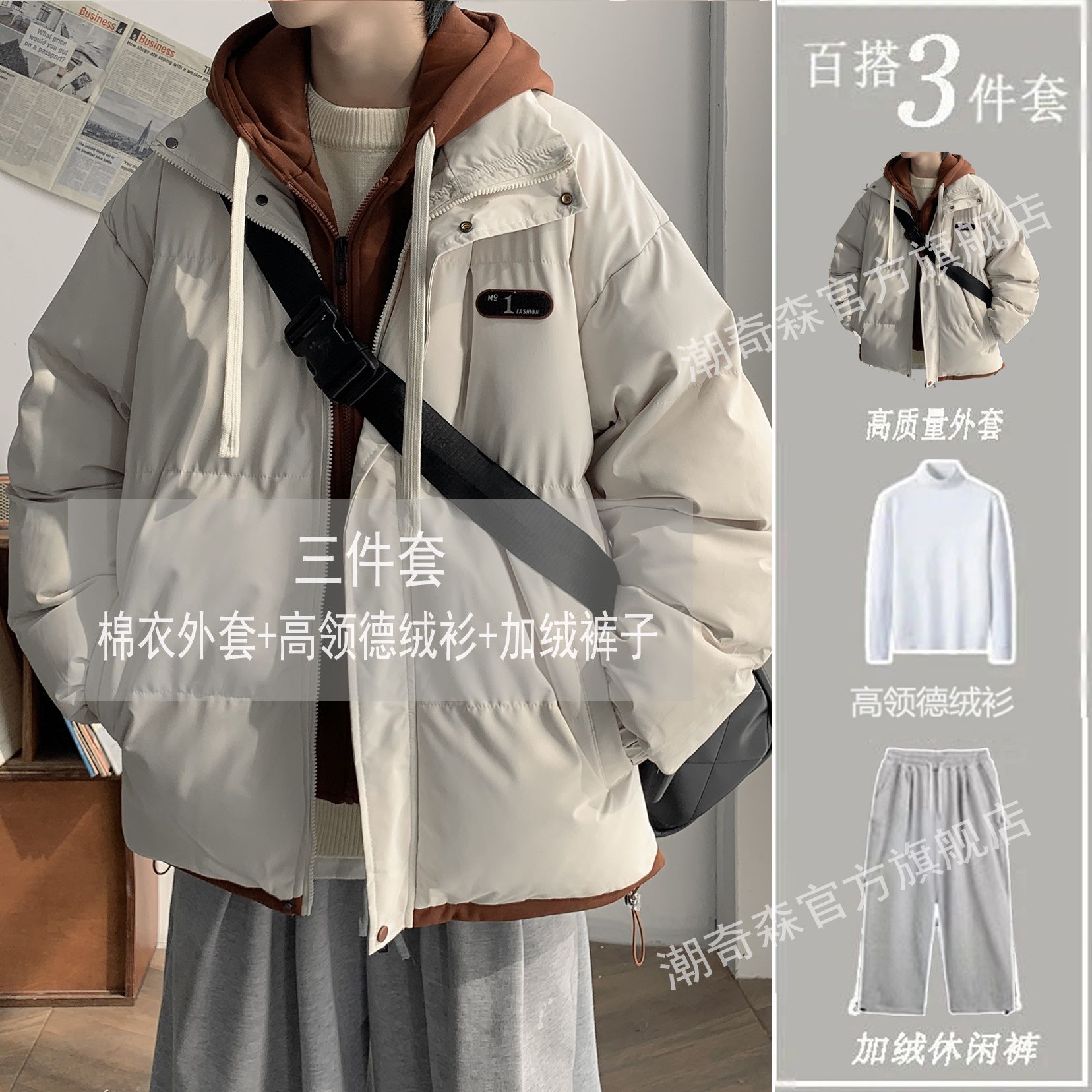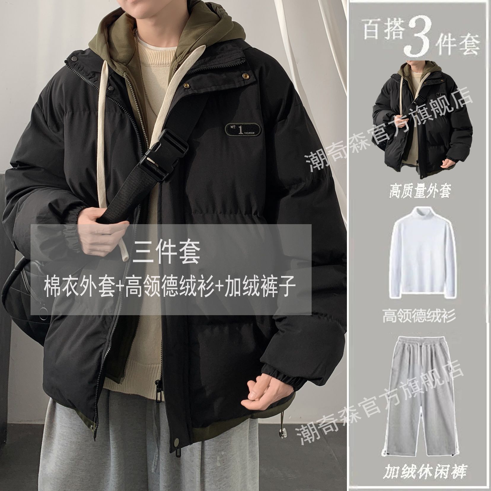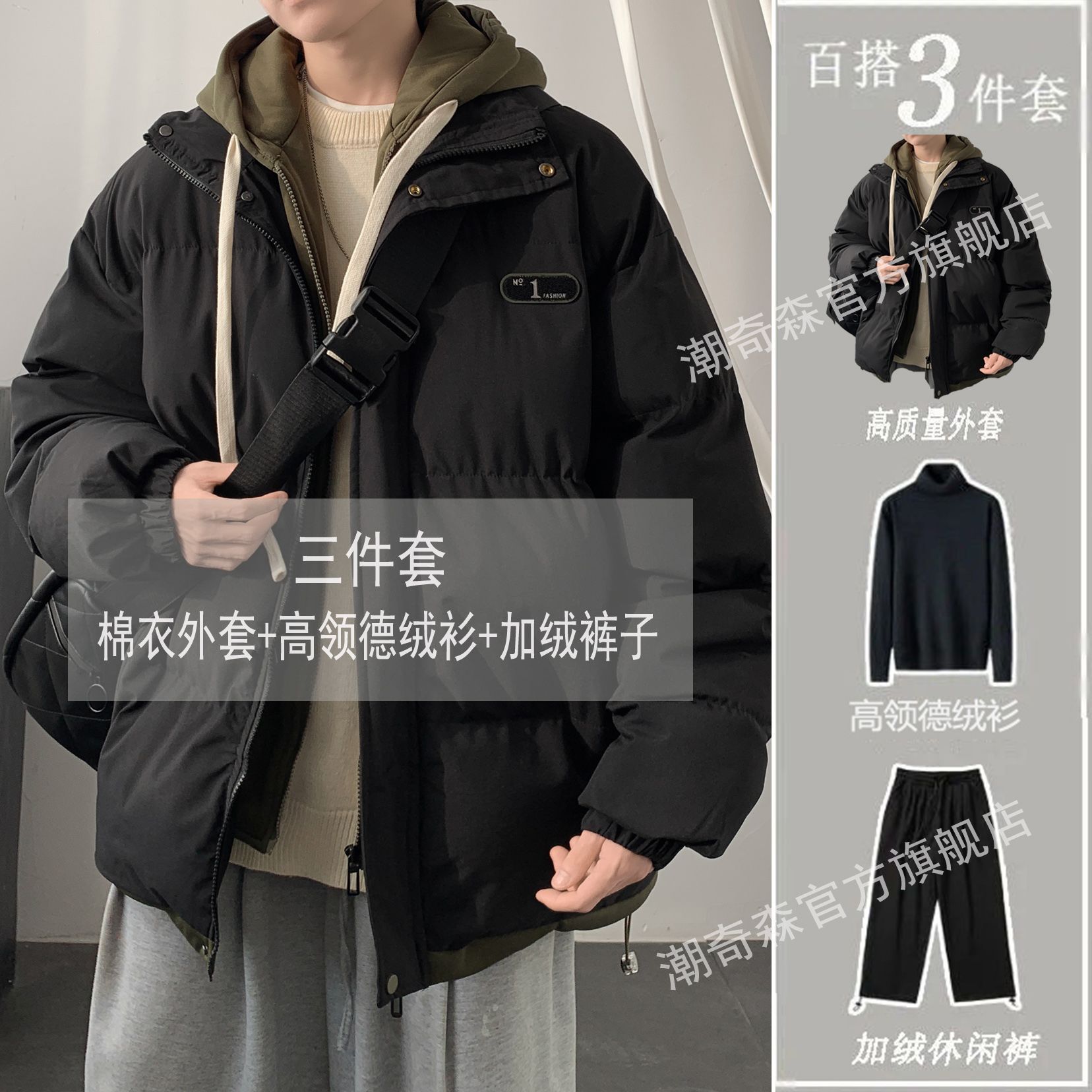 【三件套】冬季连帽棉衣男士宽松外套加厚棉服休闲套装棉袄面包服