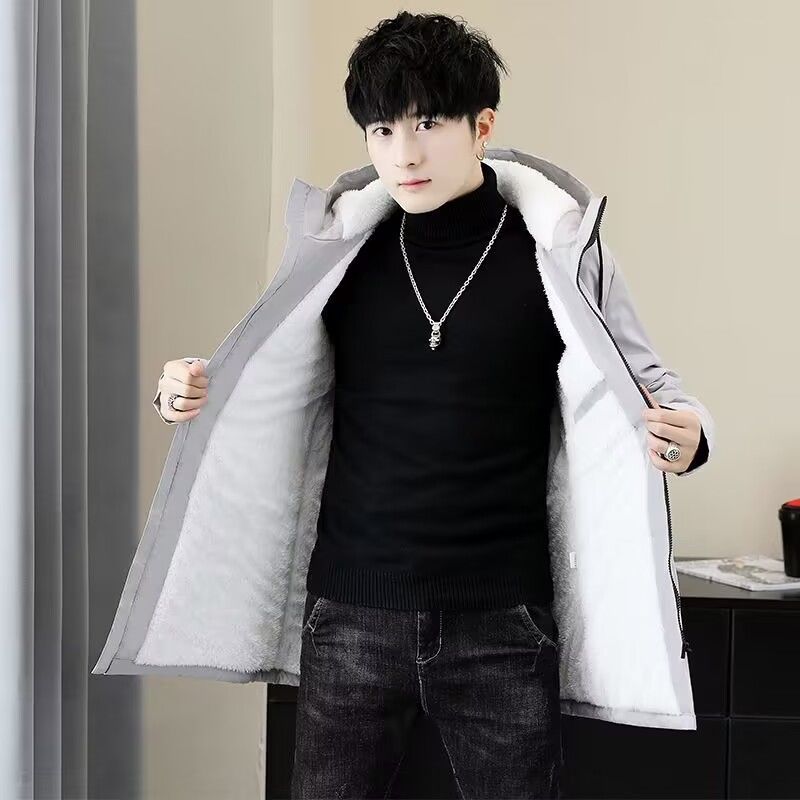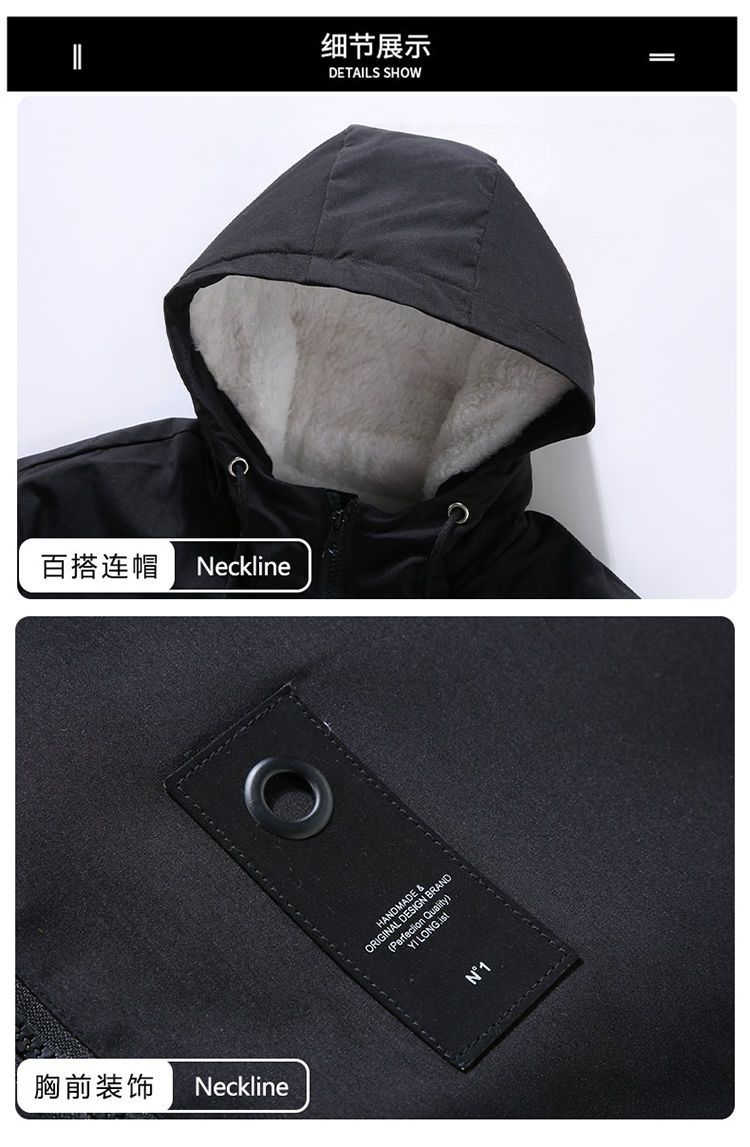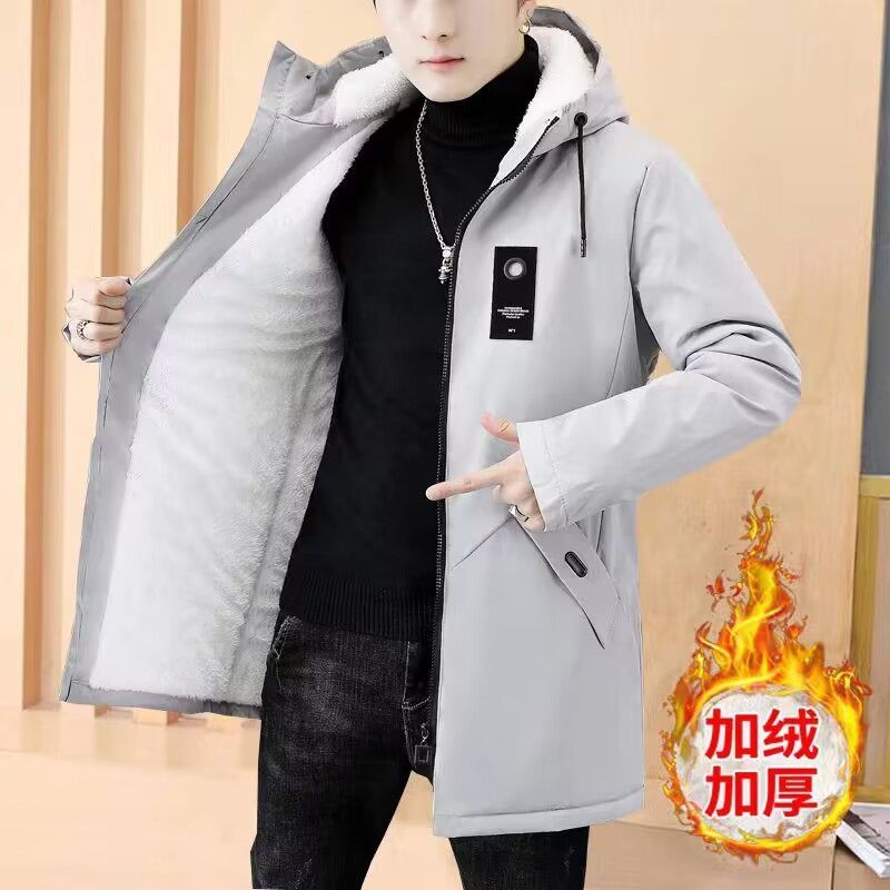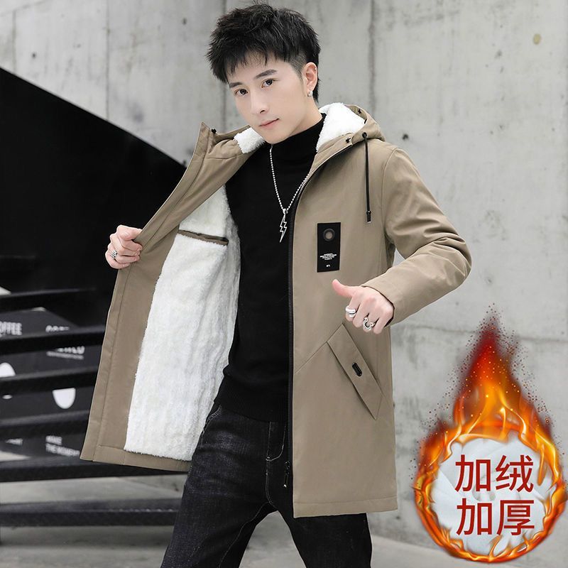 棉衣男加绒加厚中长款外套秋冬装防寒保暖棉袄男士休闲连帽棉服潮