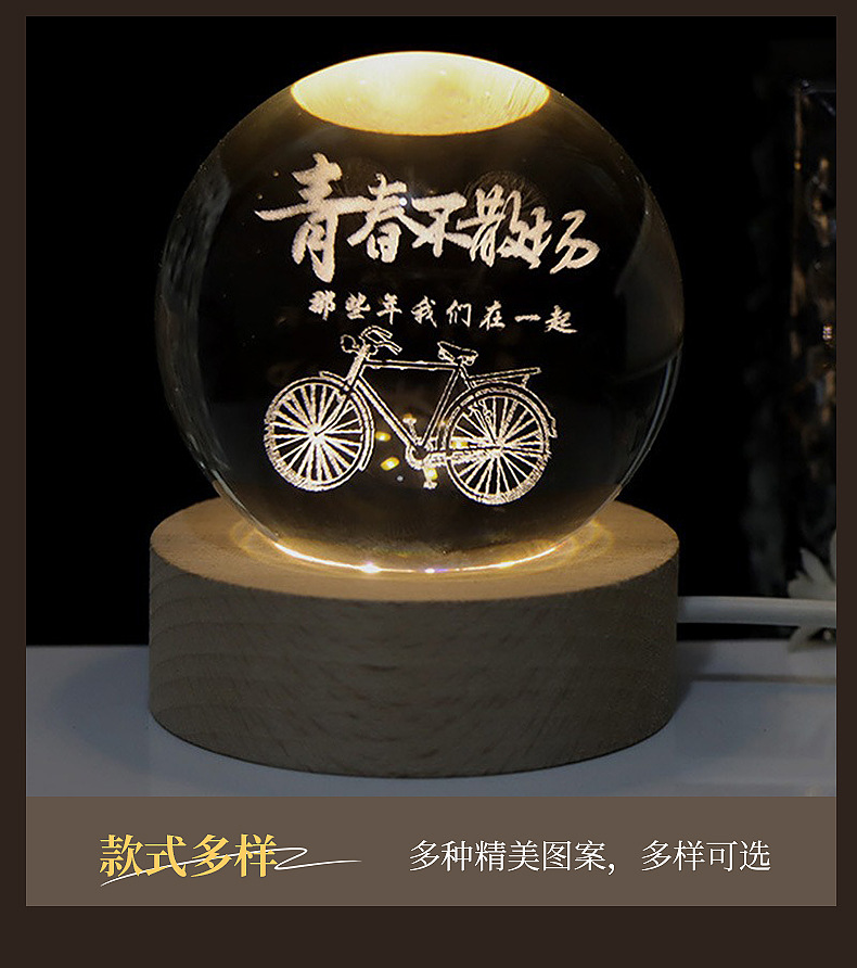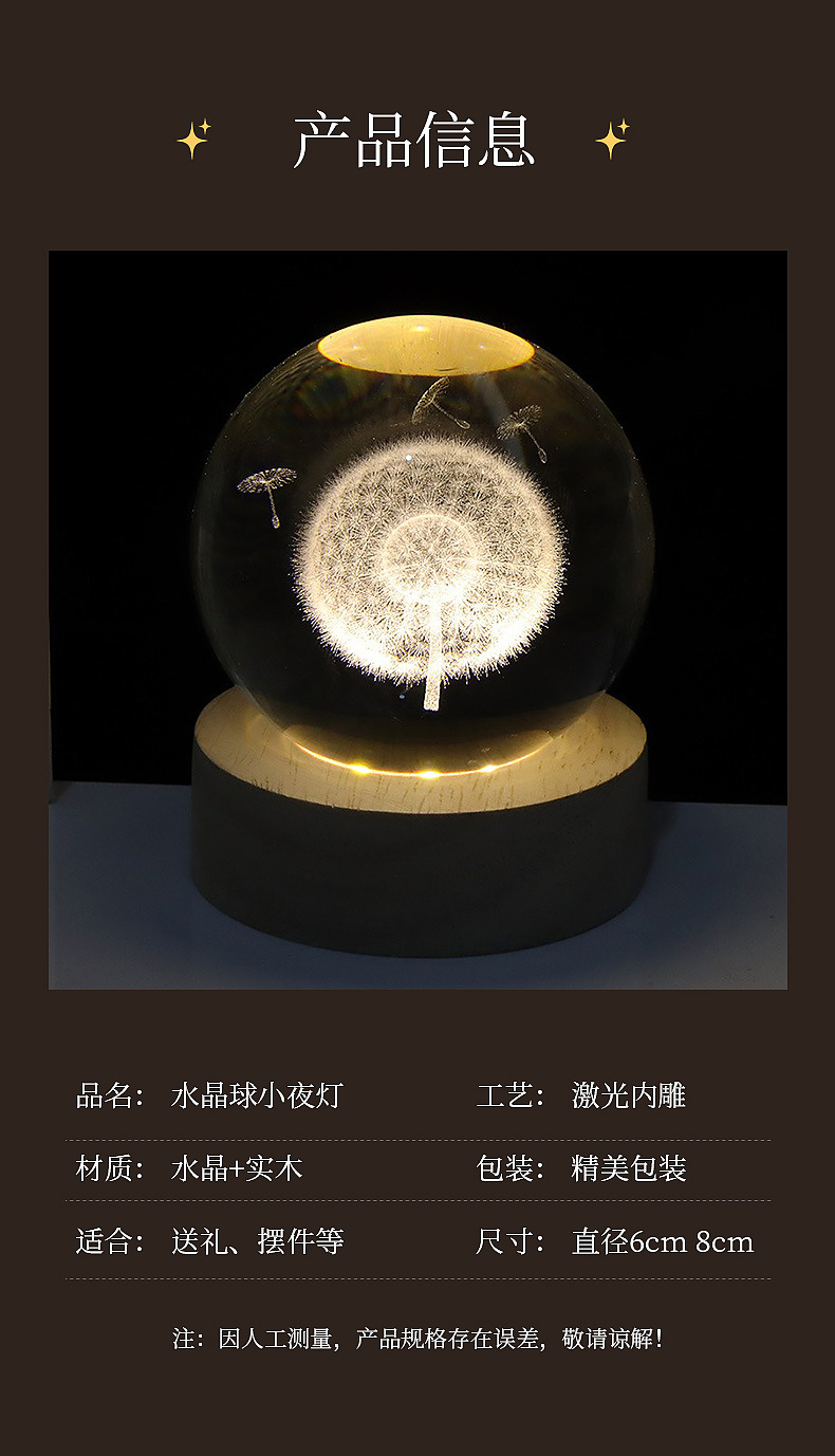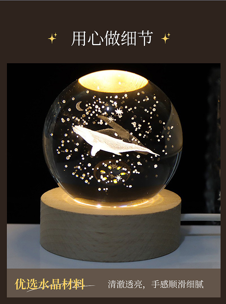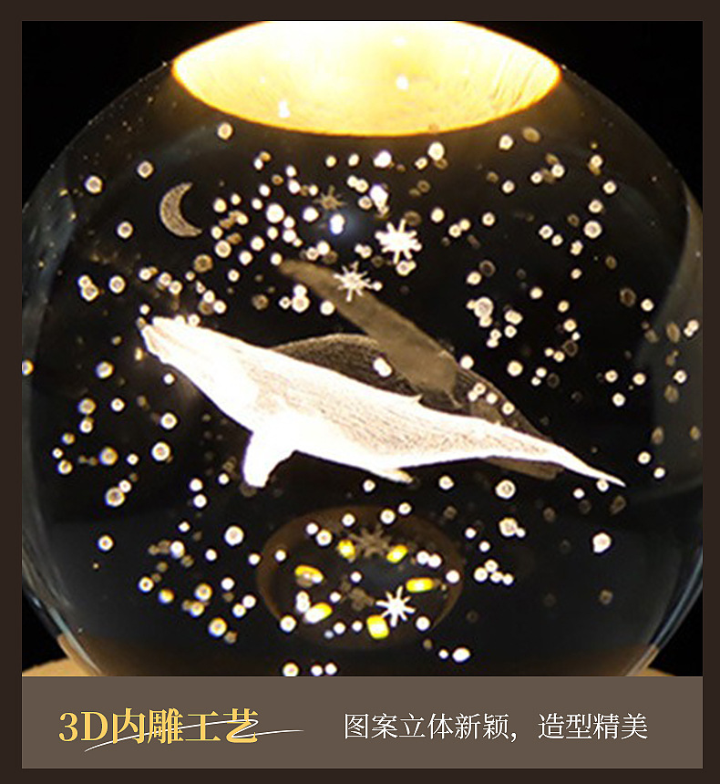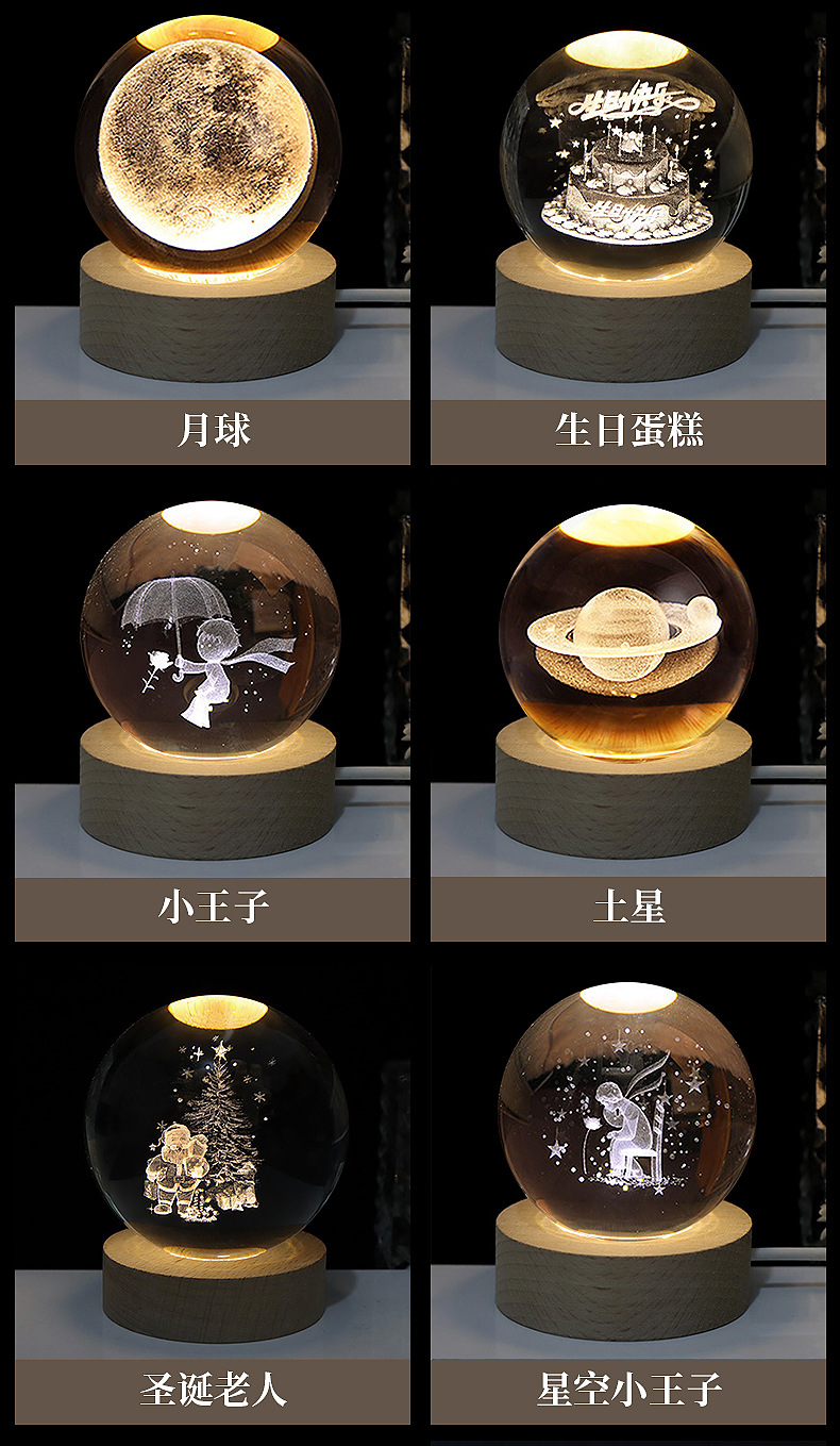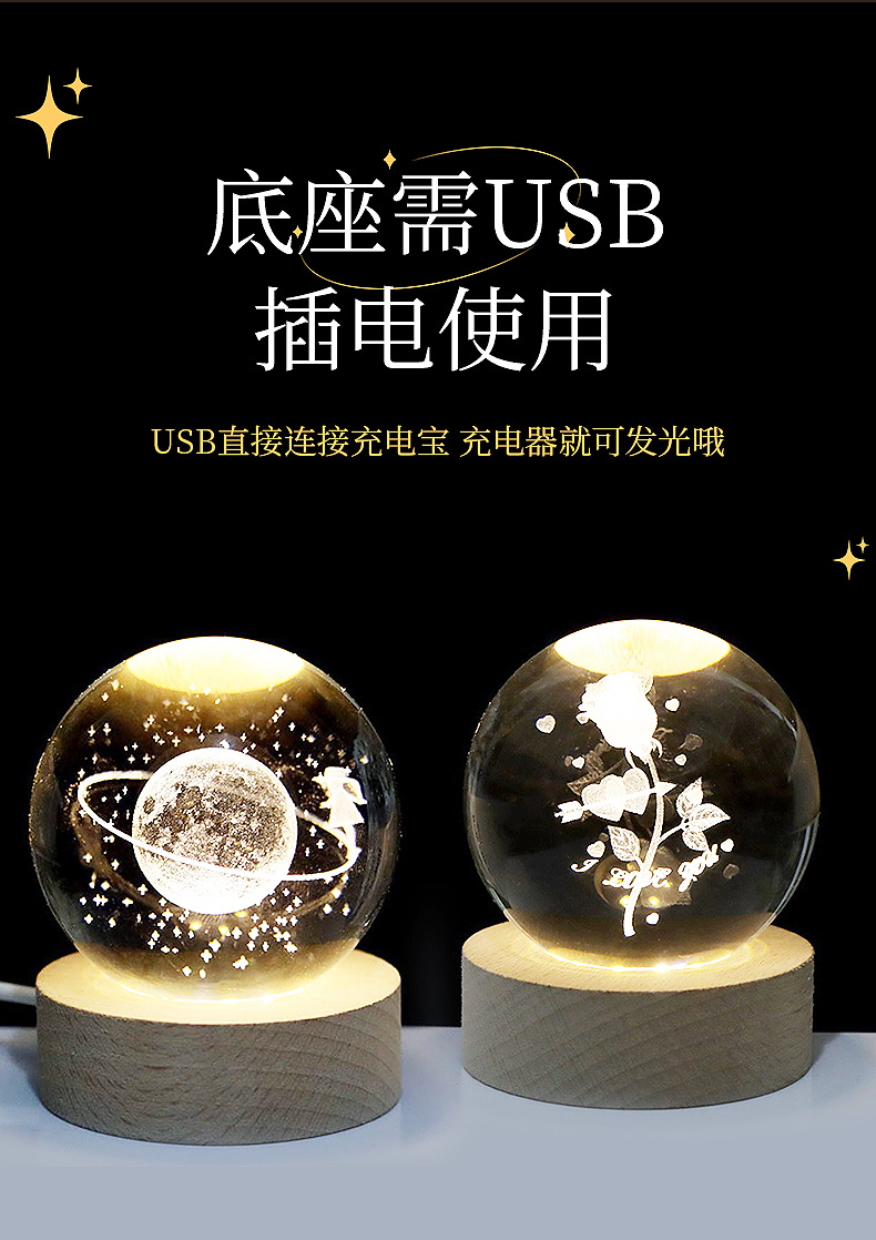 厂家供应水晶球小夜灯创意星空内雕桌面摆件送礼水晶球夜灯小礼品