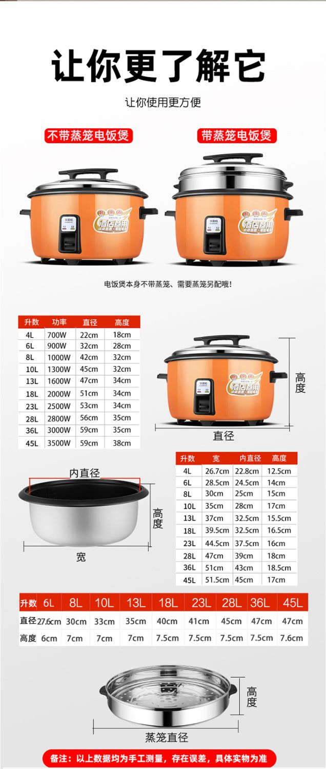 商用大容量电饭锅食堂酒店4L6L8L10L13L18L23L28L36L家用电饭煲美