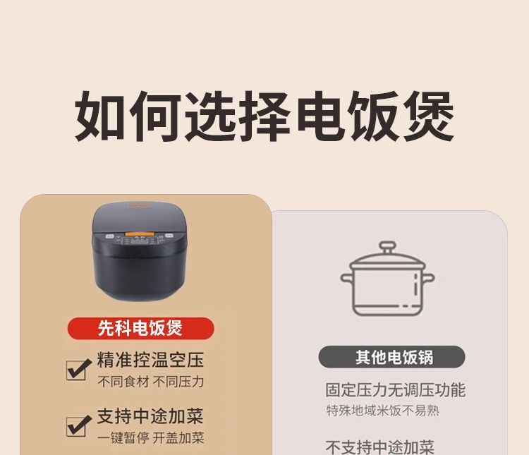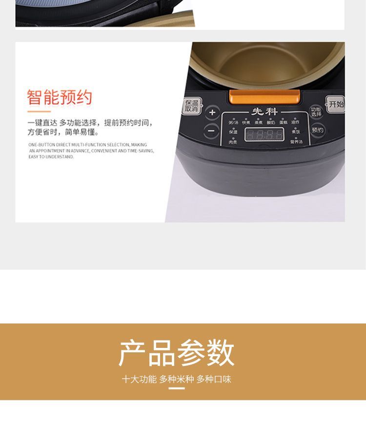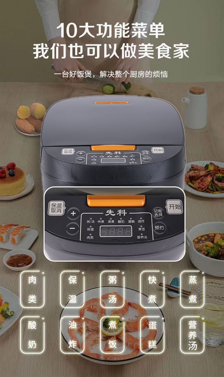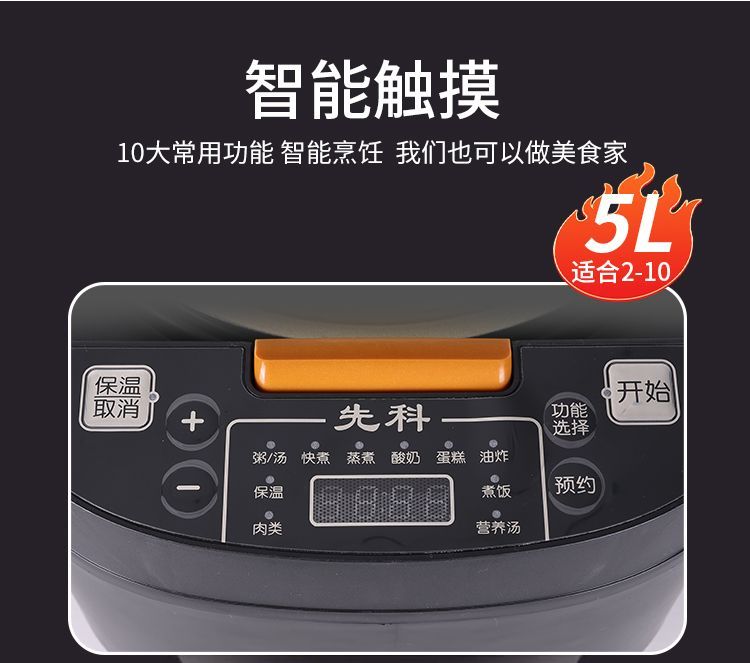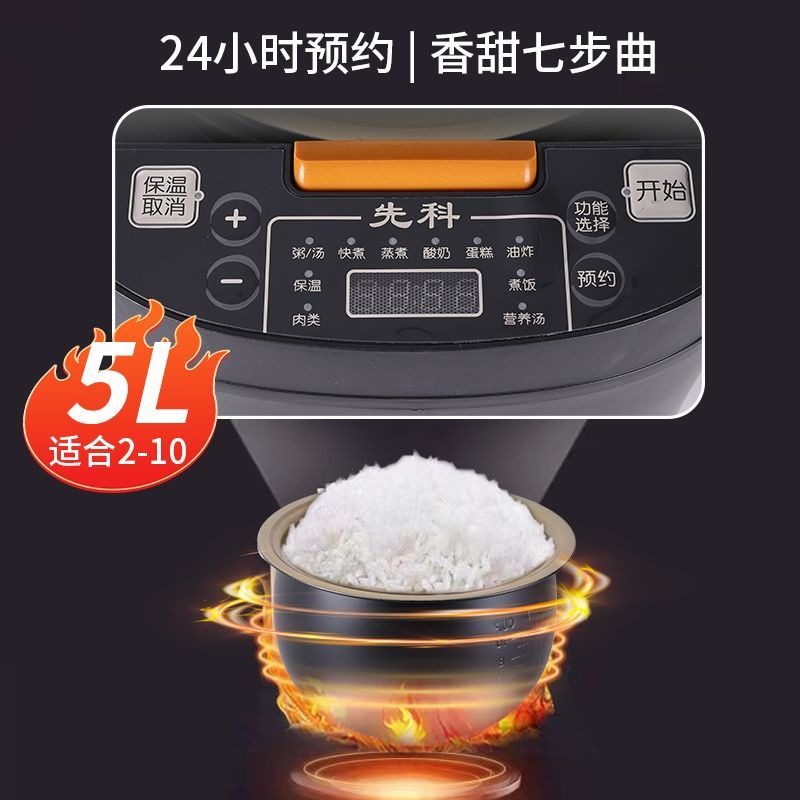 先科电饭煲家用正品5L全自动大容量智能预约多功能电饭煲家用节能