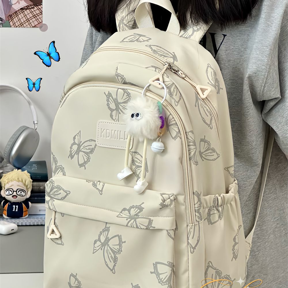 日系ins风蝴蝶双肩包女初高中学生书包女大容量外出旅游轻便背包