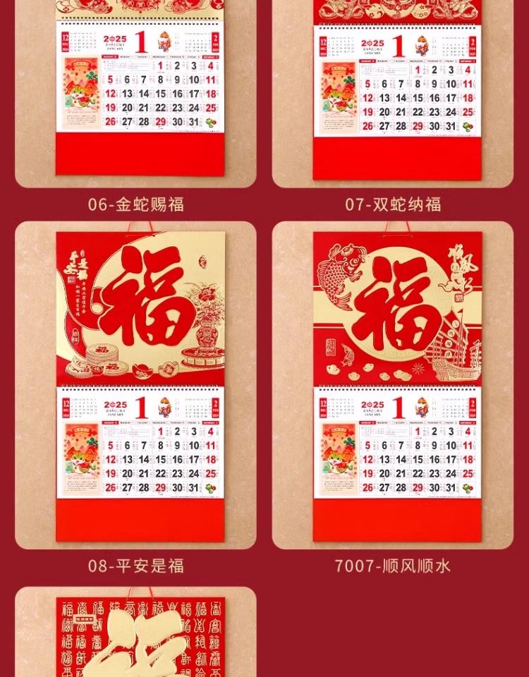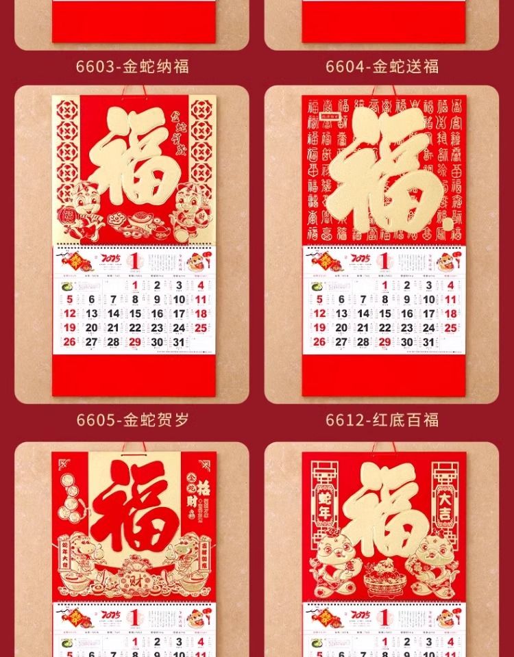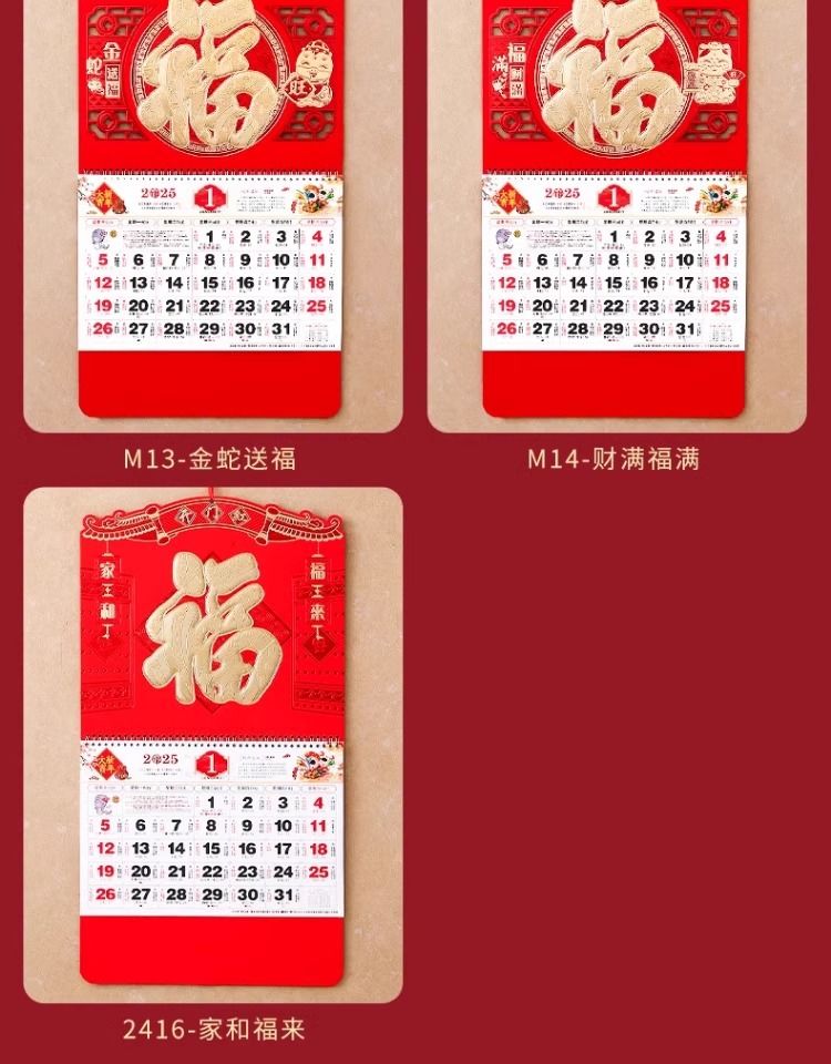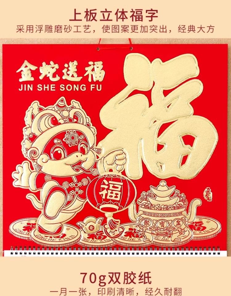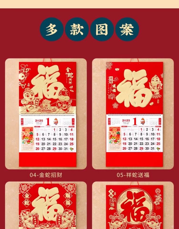 福字挂历2025年新款定制定做公司广告中国风家用挂墙大号撕历蛇年