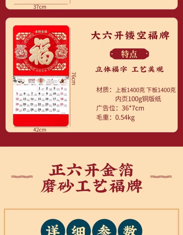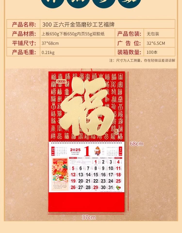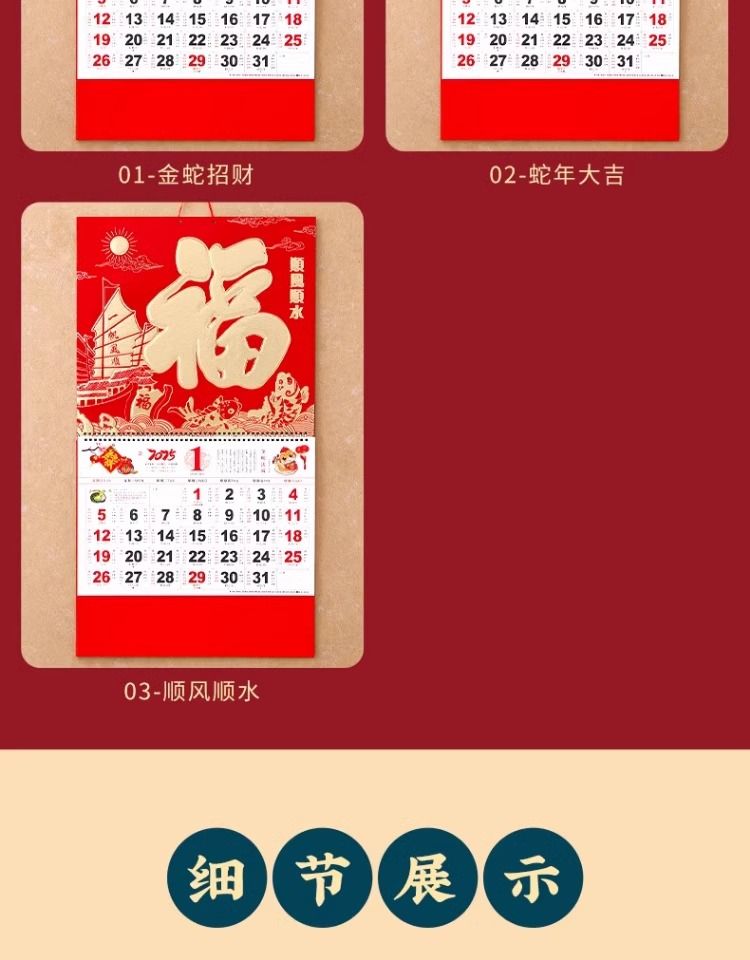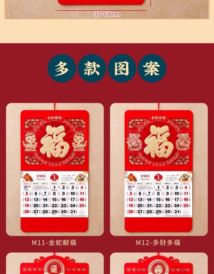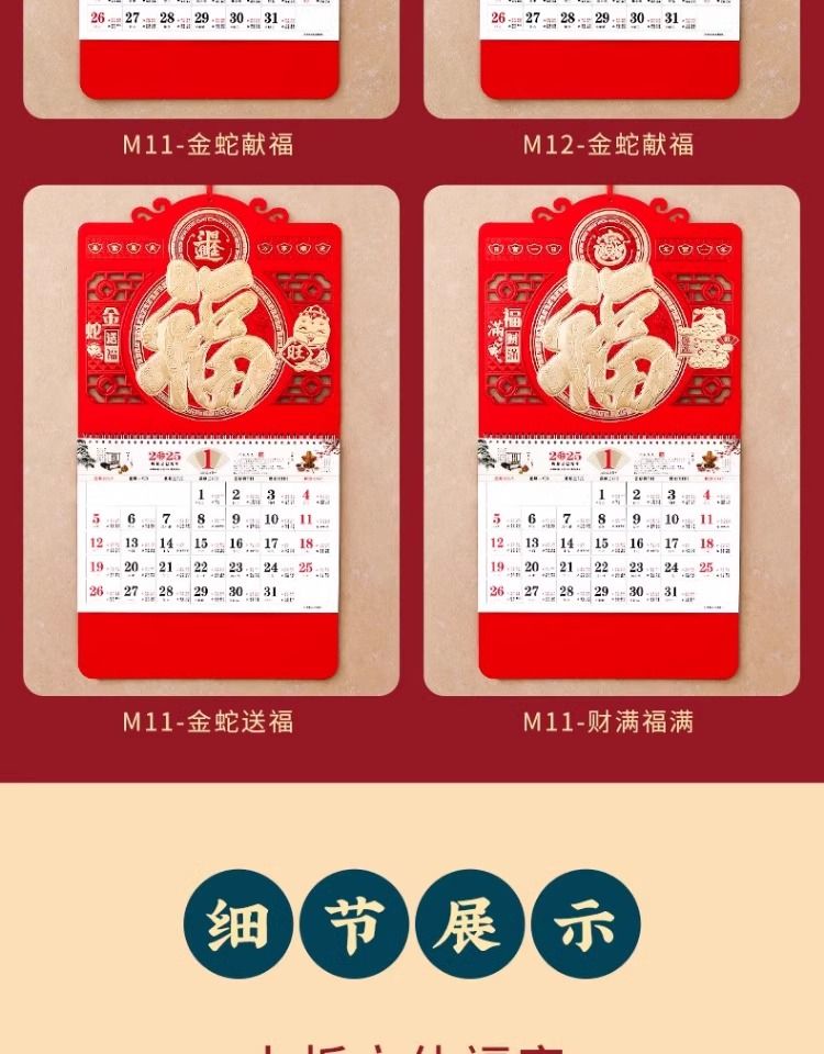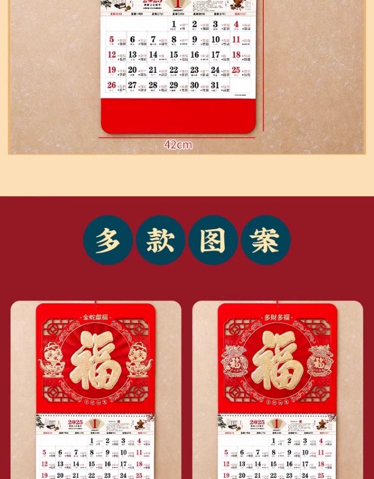 福字挂历2025年新款定制定做公司广告中国风家用挂墙大号撕历蛇年