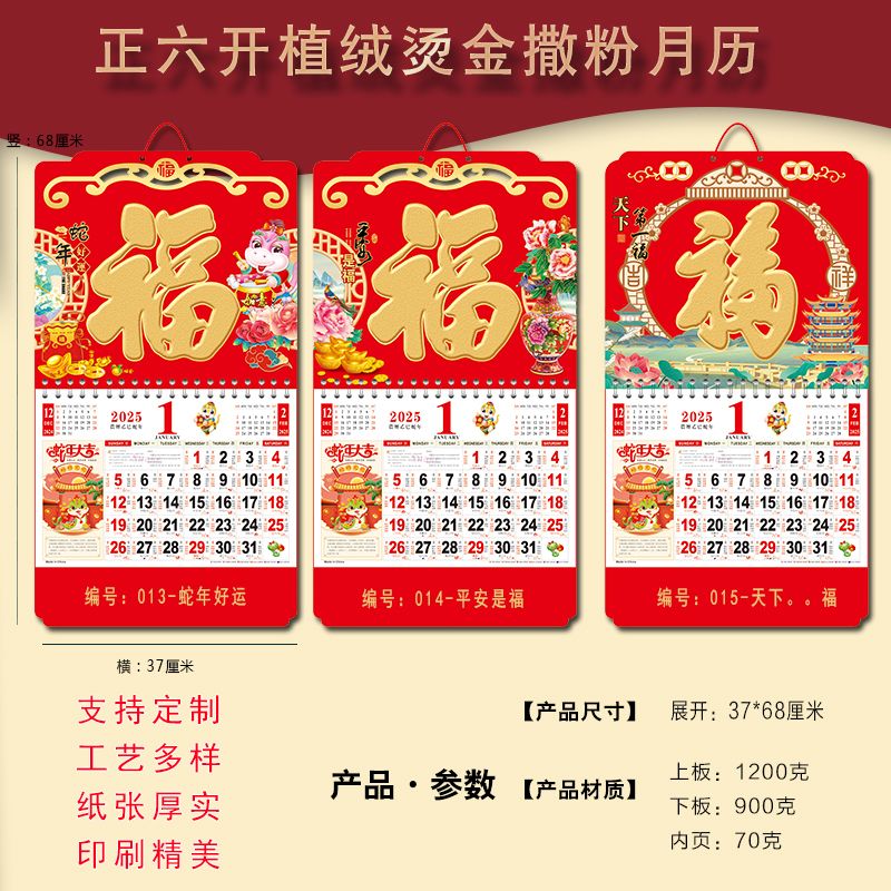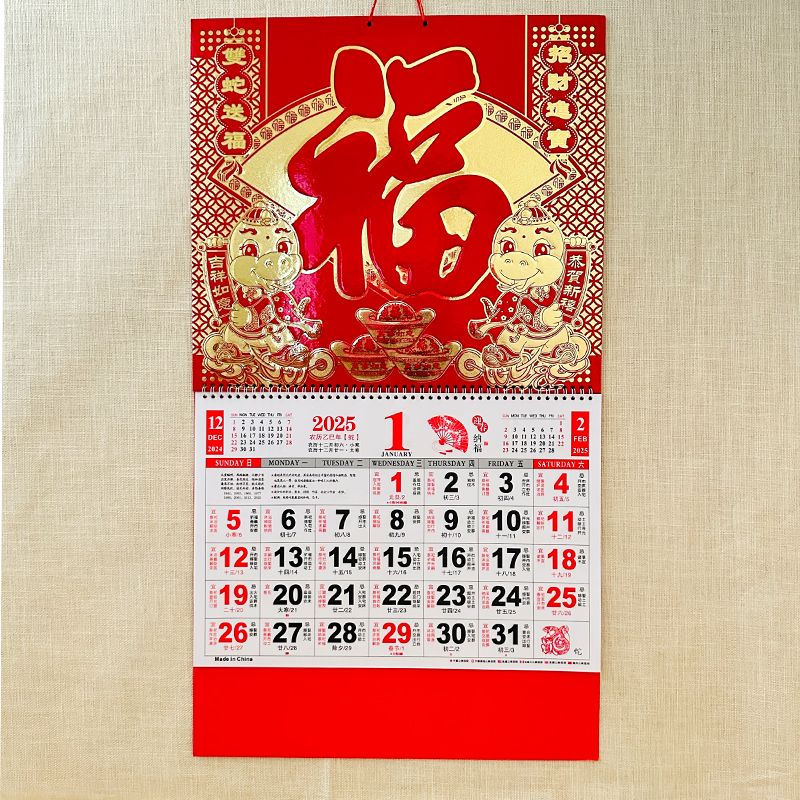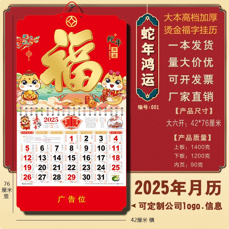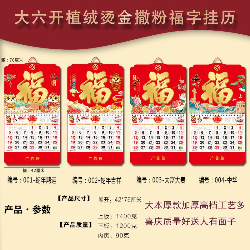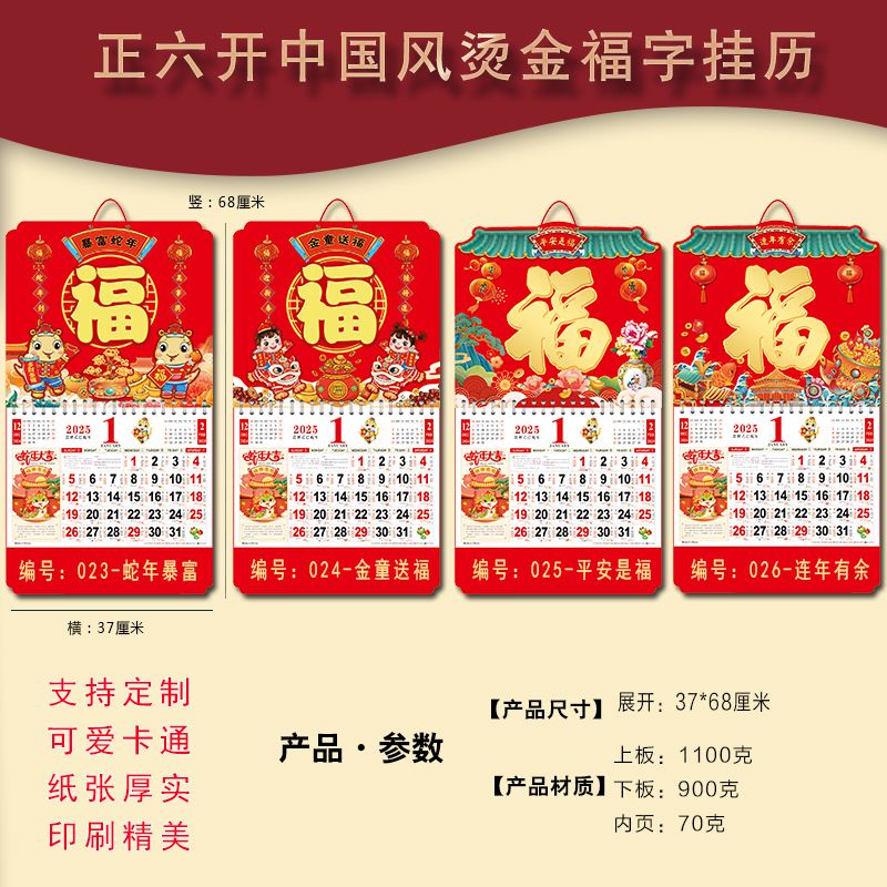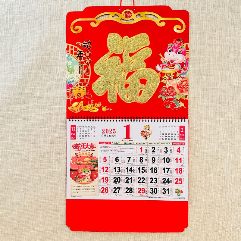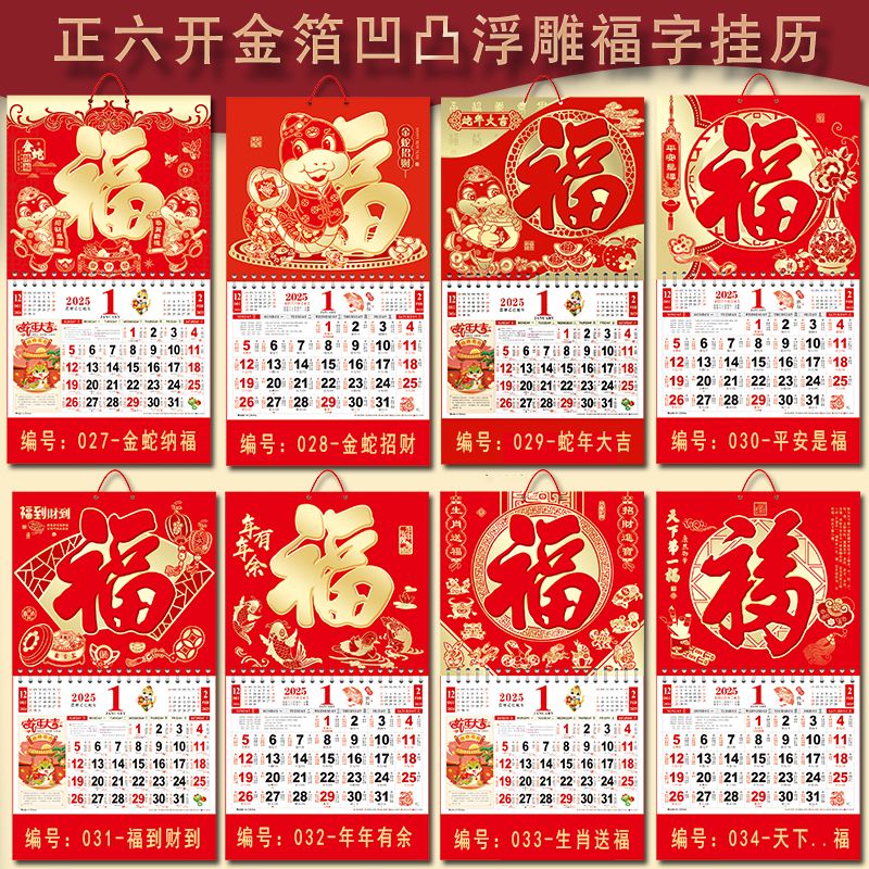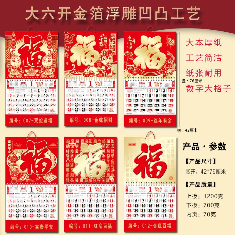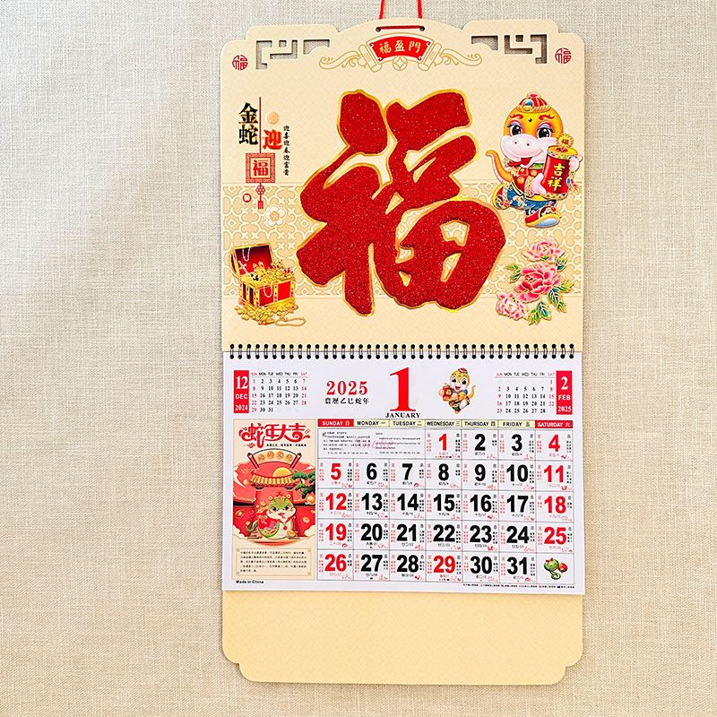 2025年挂历福字月历家用挂墙上送礼老人家平安是福计划蛇年大日历