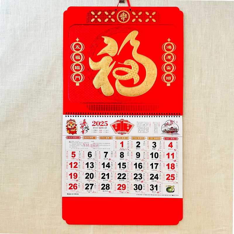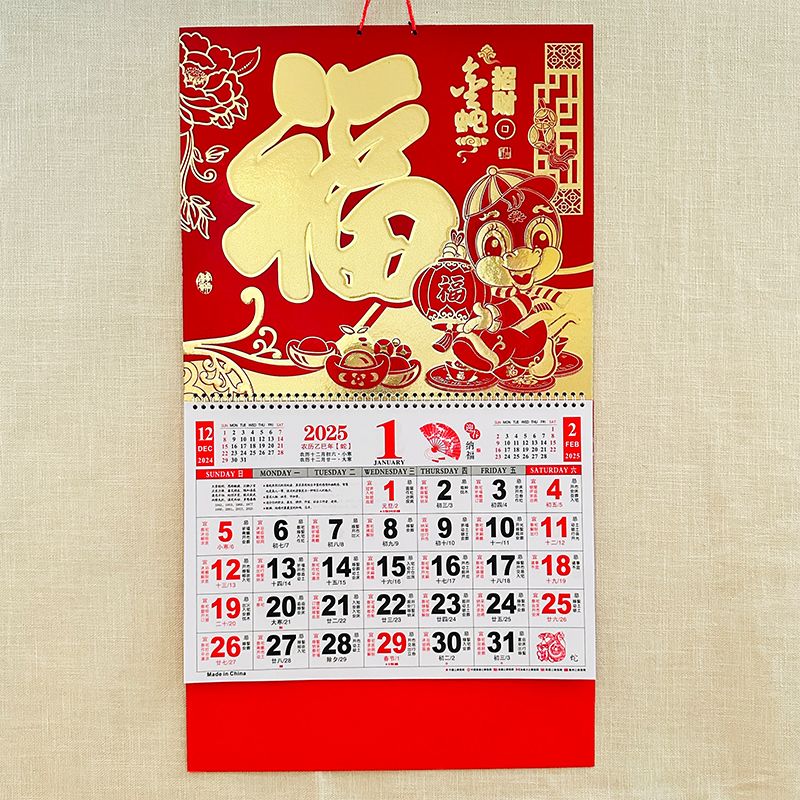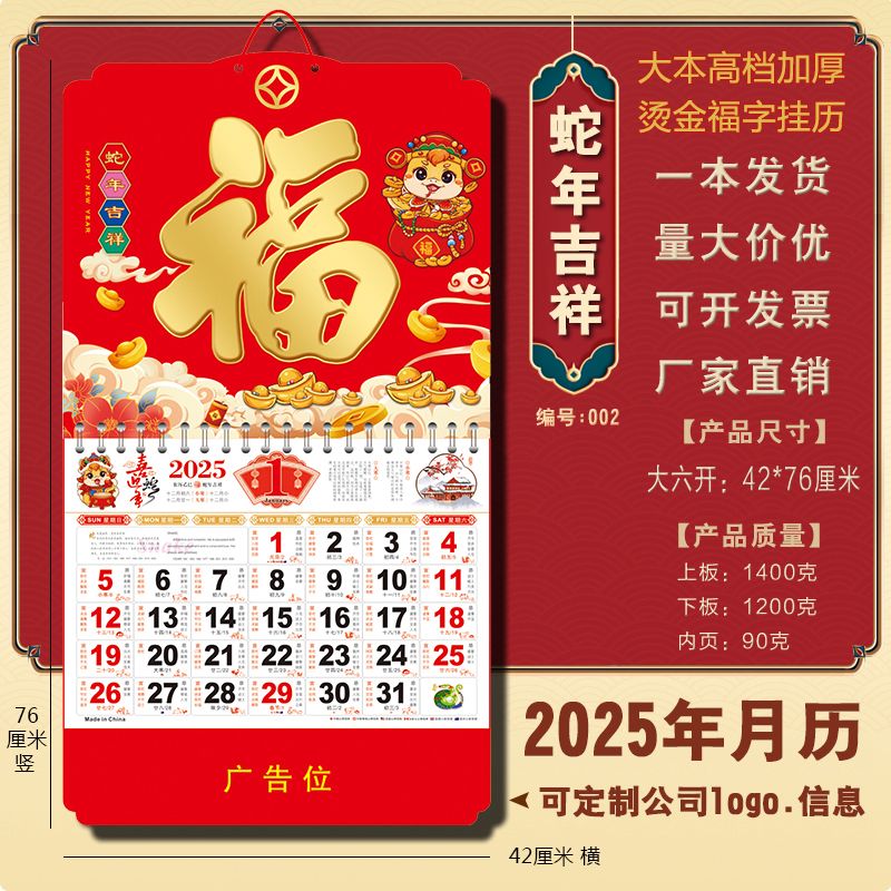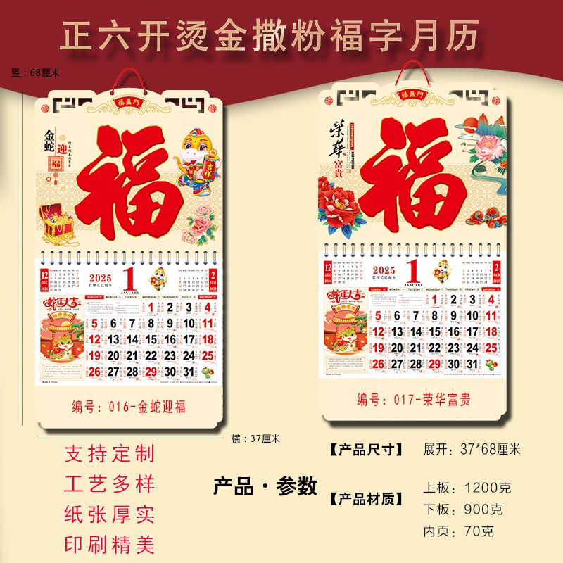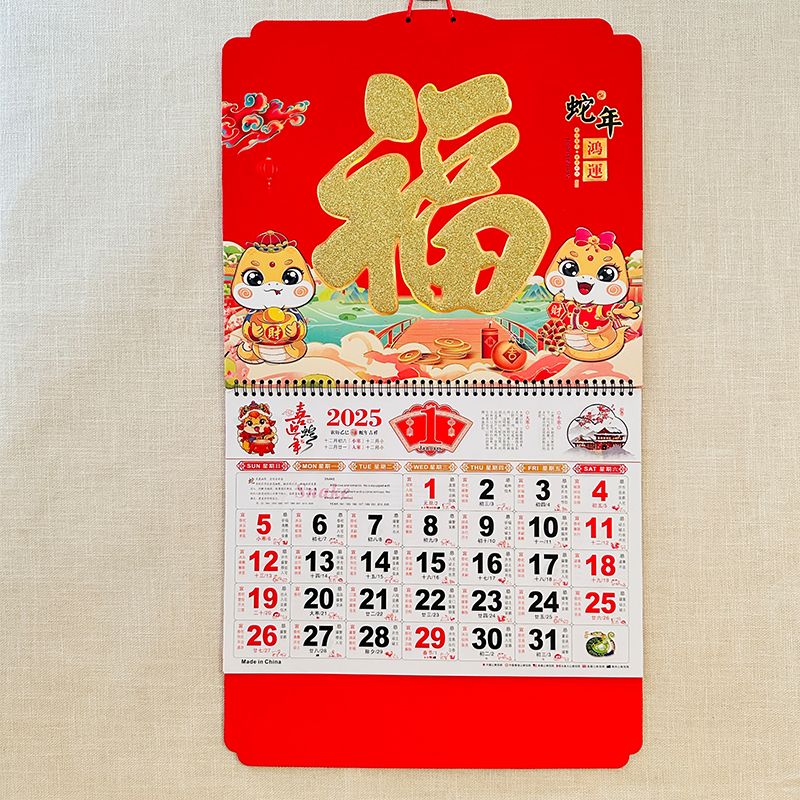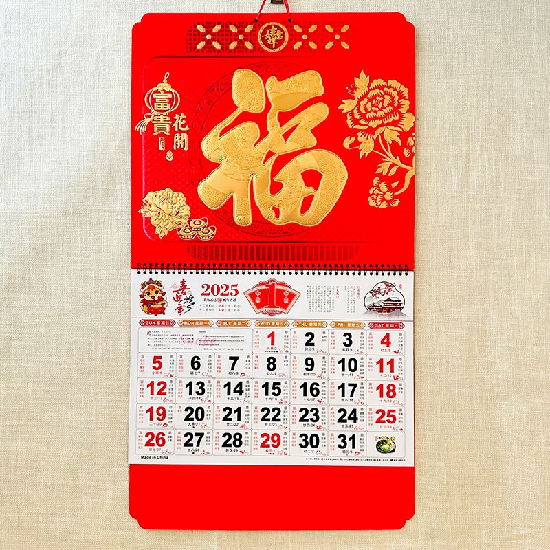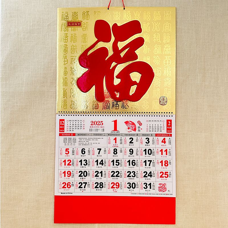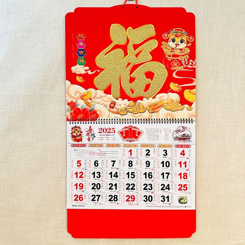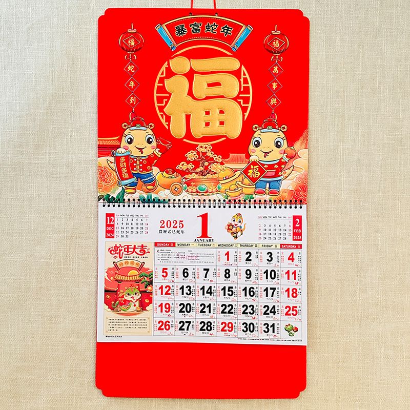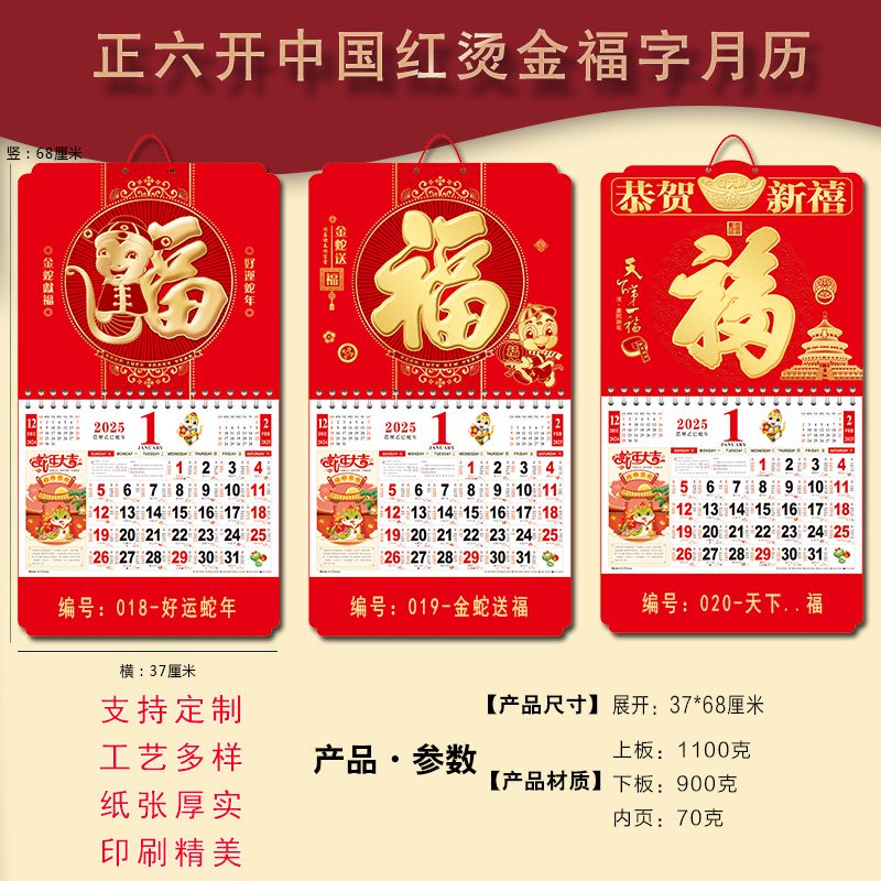 2025年挂历福字月历家用挂墙上送礼老人家平安是福计划蛇年大日历