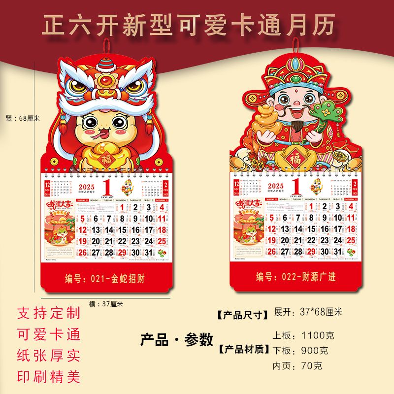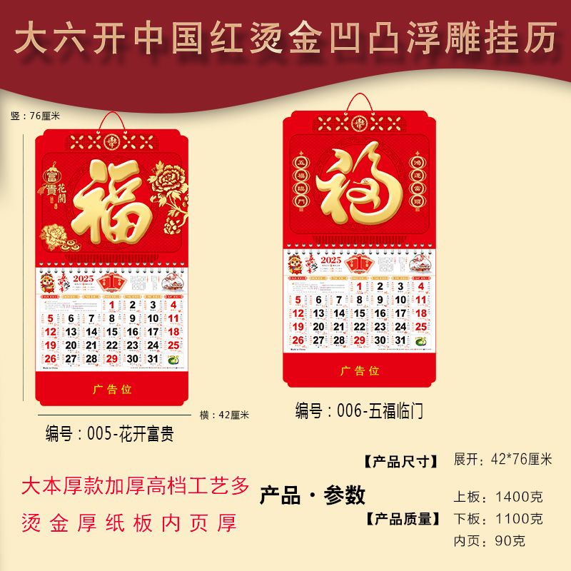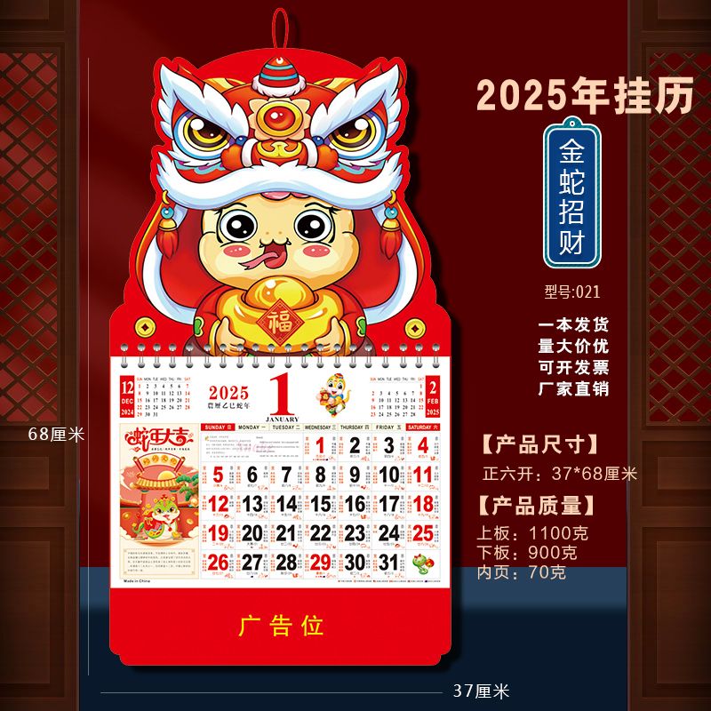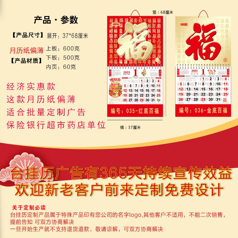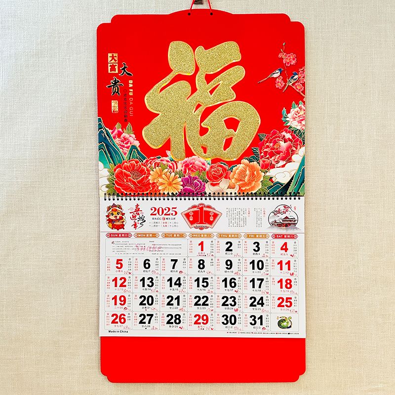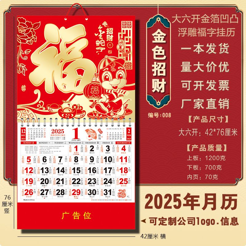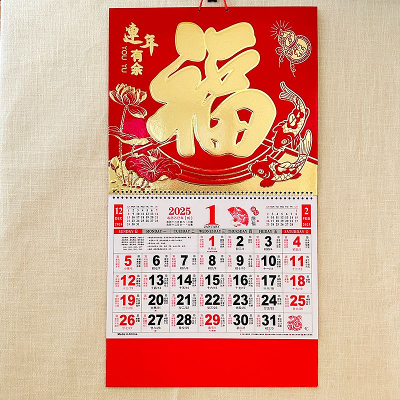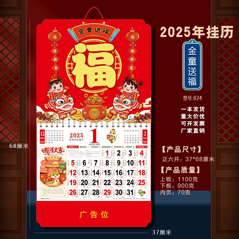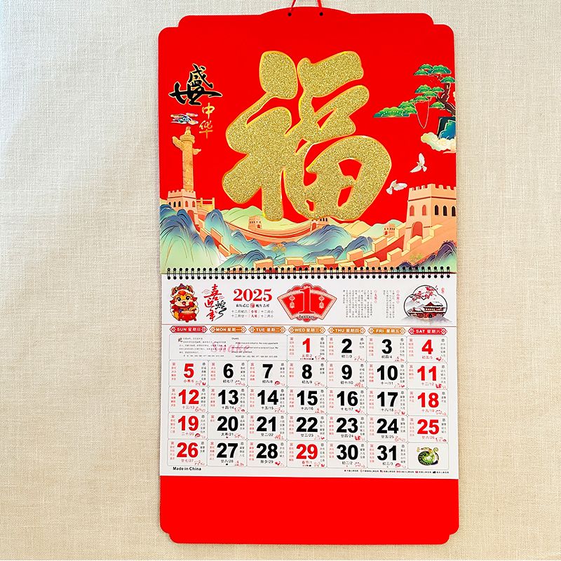2025年挂历福字月历家用挂墙上送礼老人家平安是福计划蛇年大日历