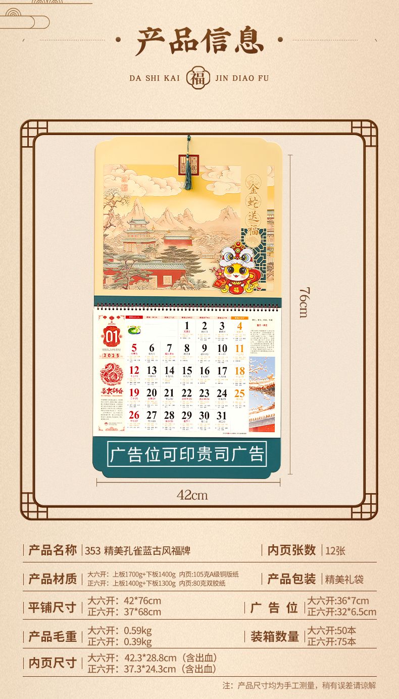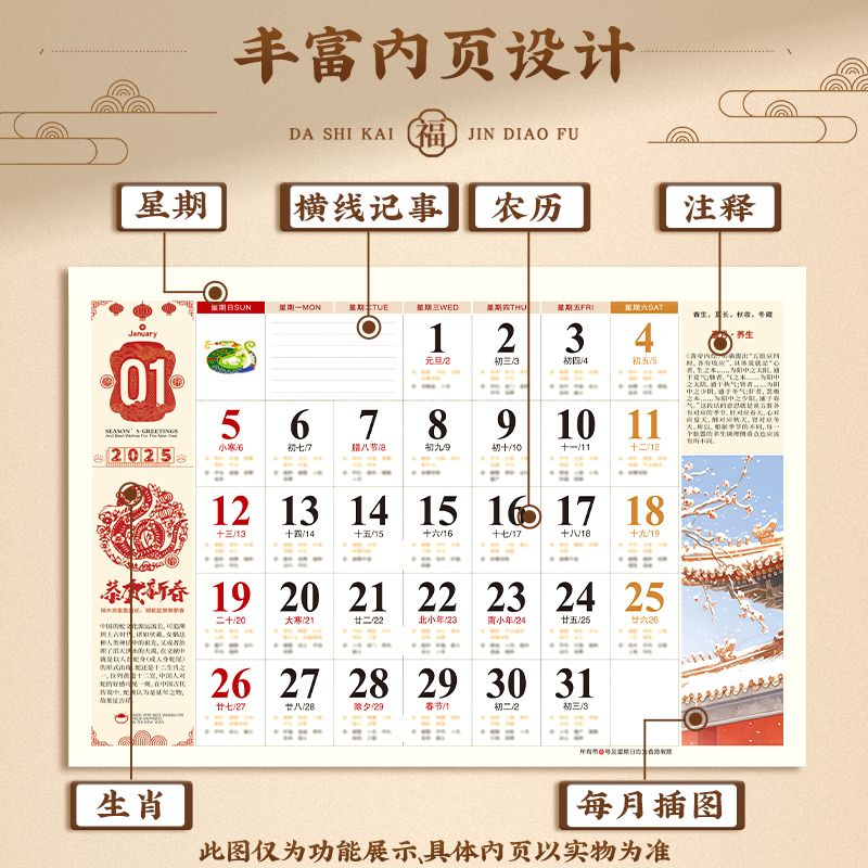 挂历2025年新款家用挂墙日历挂式手撕创意文创中国风家庭新年礼物