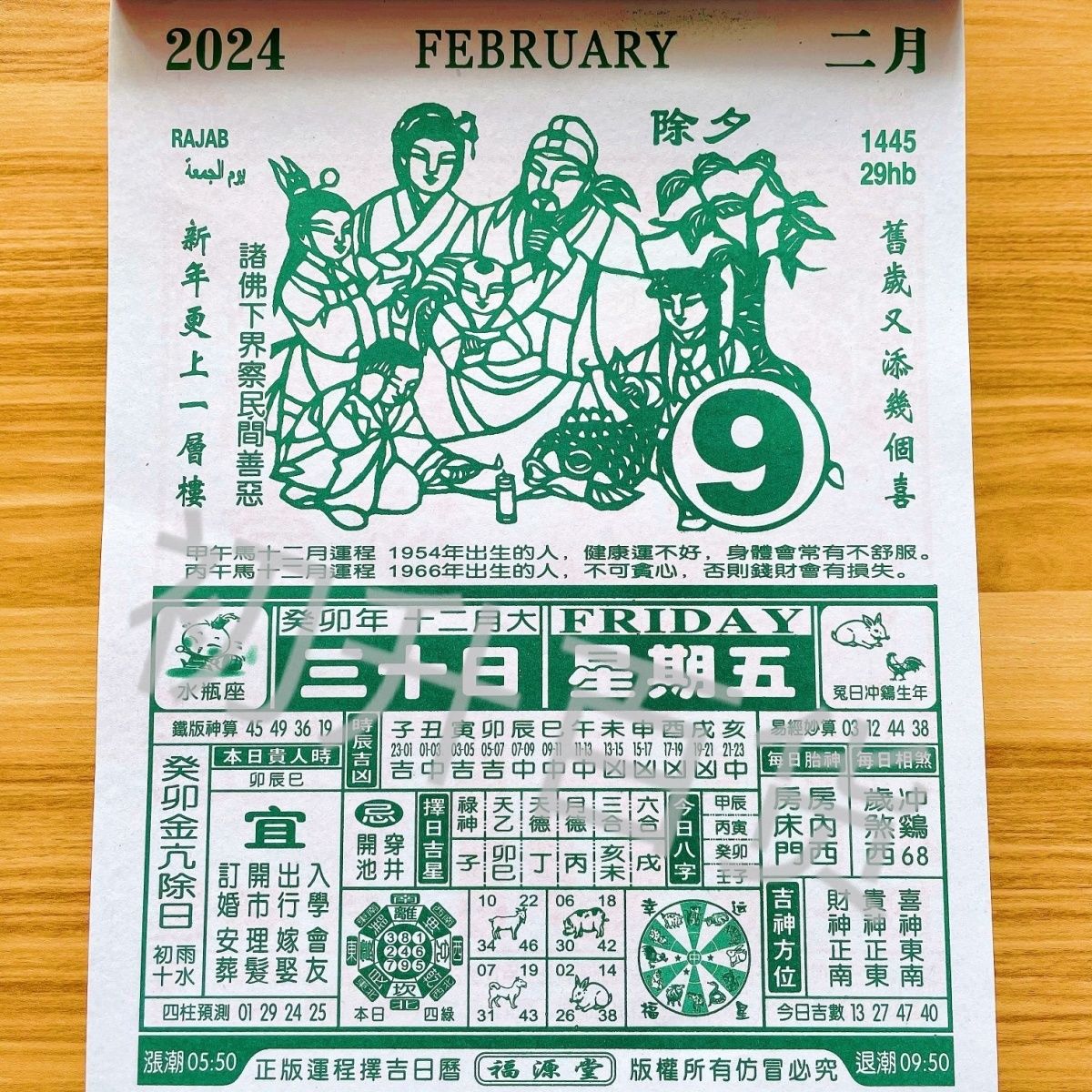2025年日历蛇年手撕挂历香港福源堂恭喜发财挂墙家用皇历老黄历