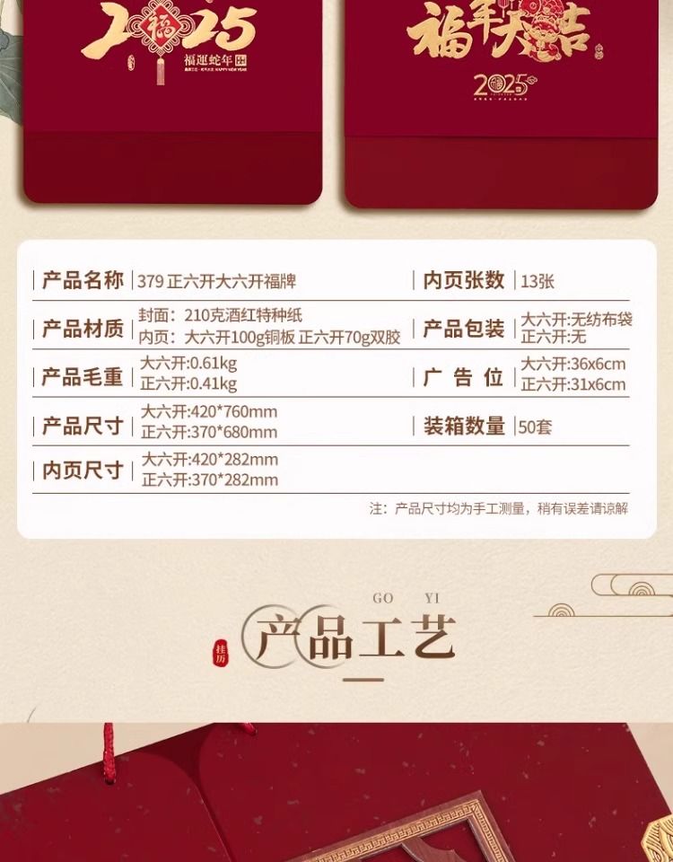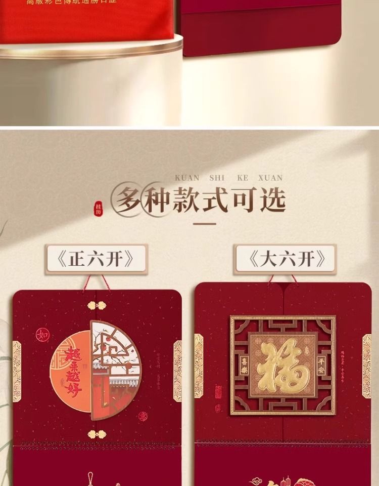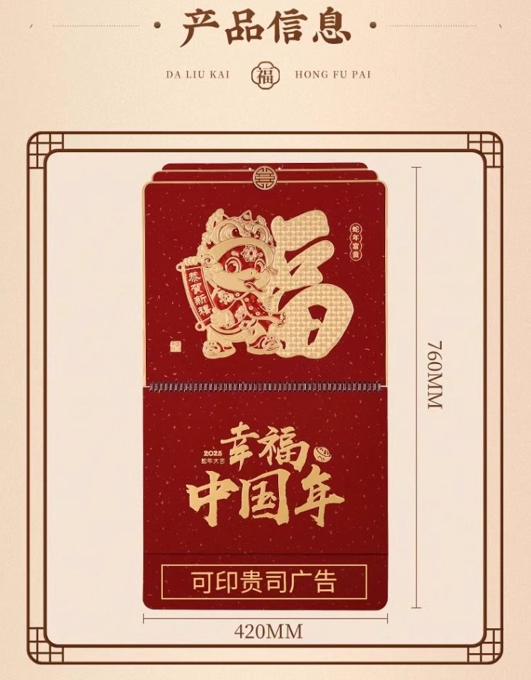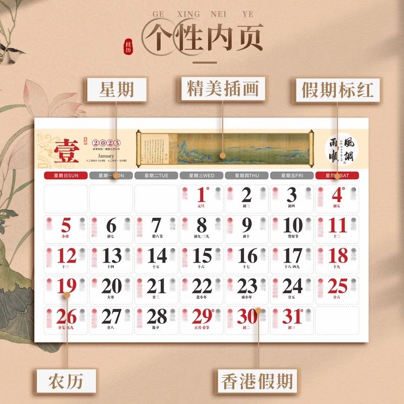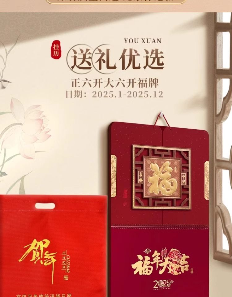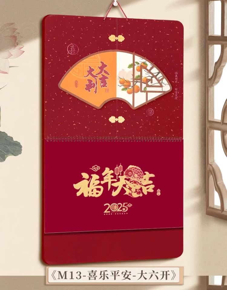 2025年新款大六开家用挂墙式黄历大号吊历中国风传统装饰墙贴手撕