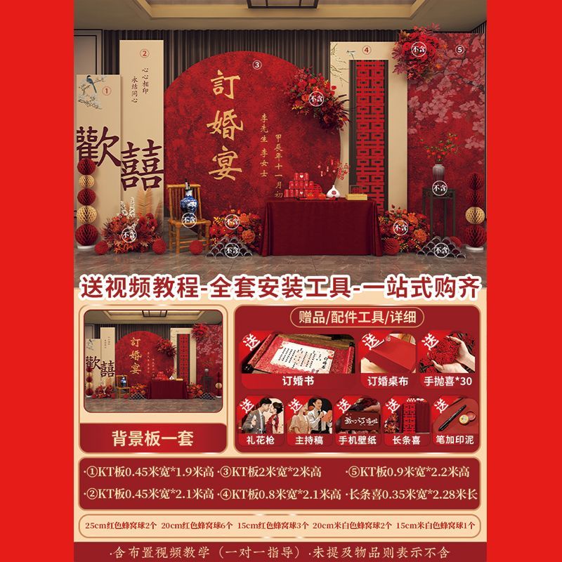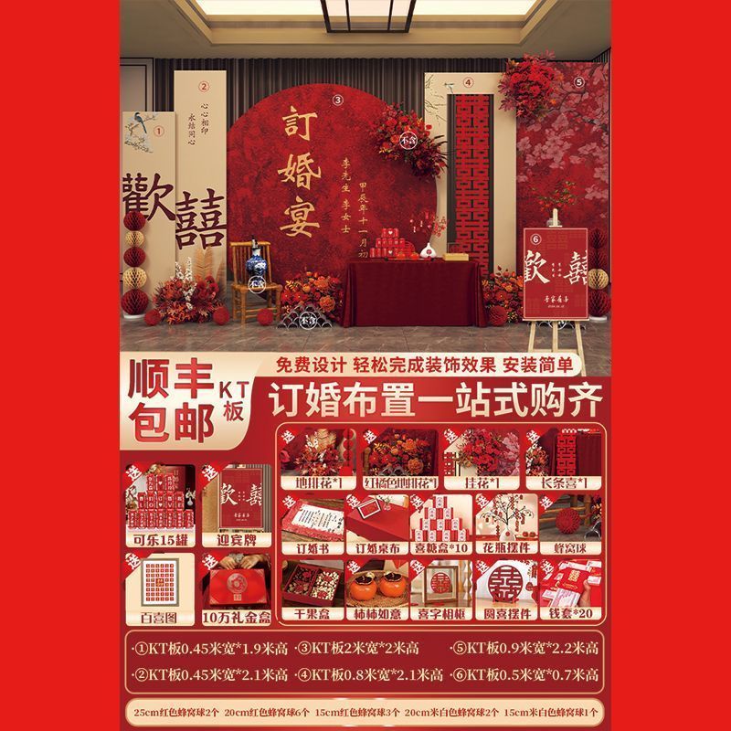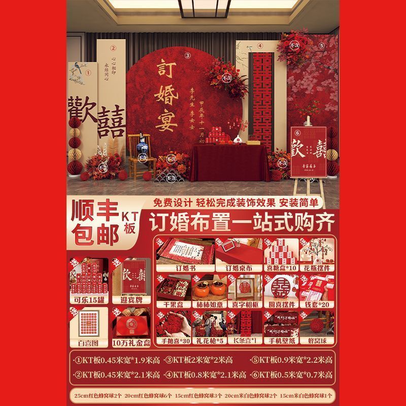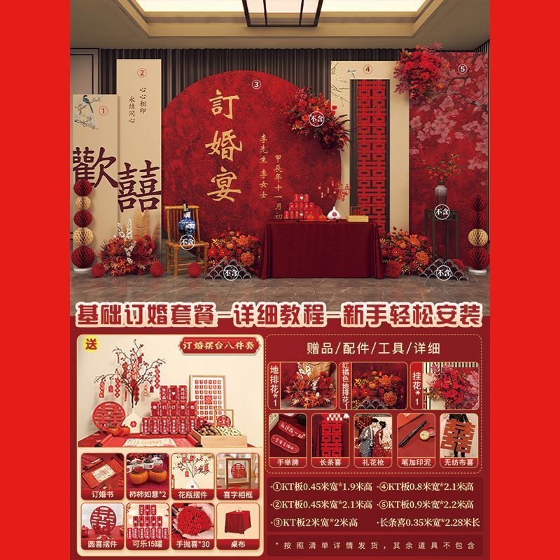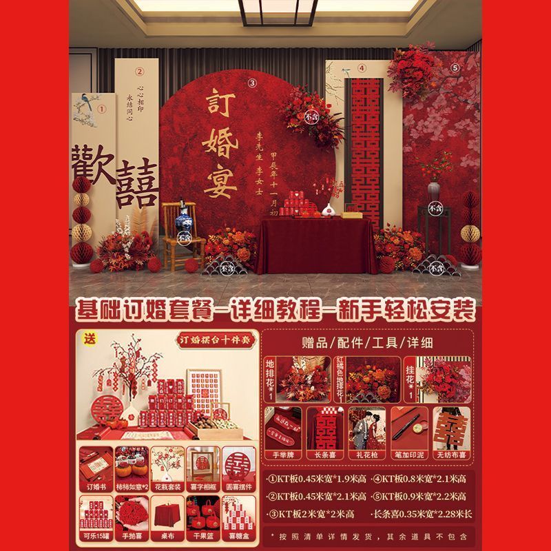 新中式订婚礼宴布置装饰全套摆件台2025高级出阁背景墙kt板全套餐