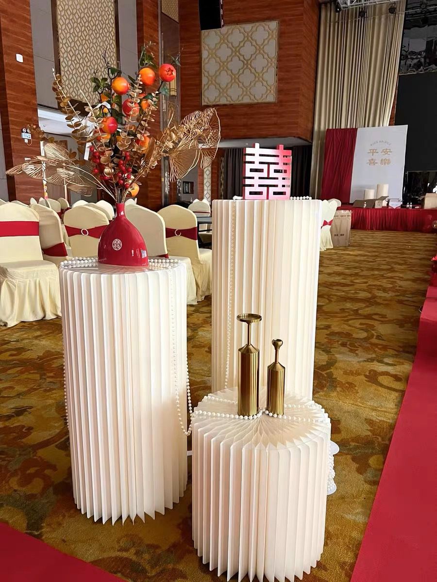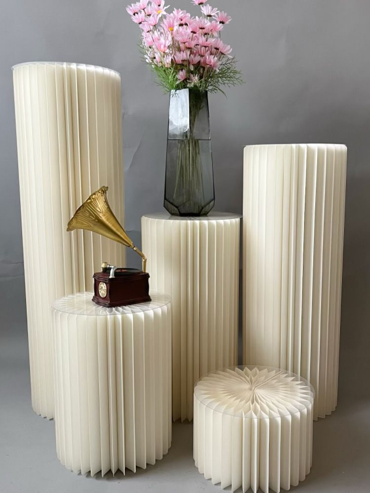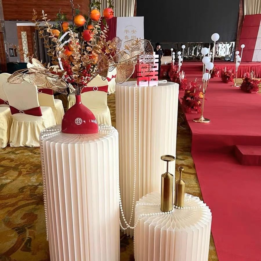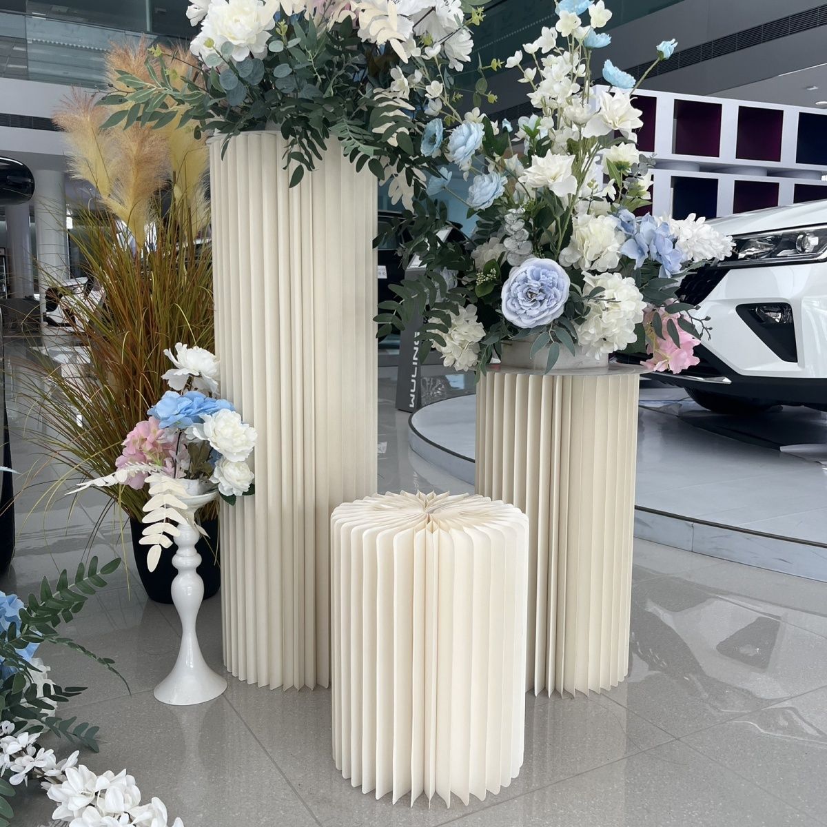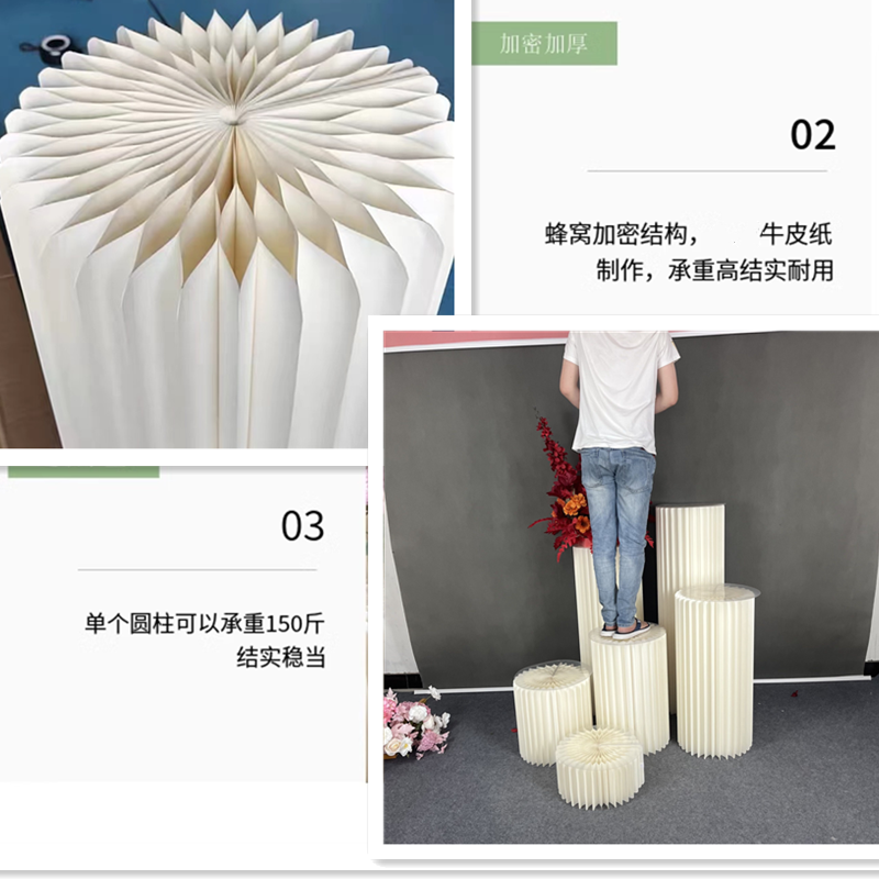 新款婚庆橱窗生日折纸路引折叠圆柱甜品台罗马柱节日派对装饰道具