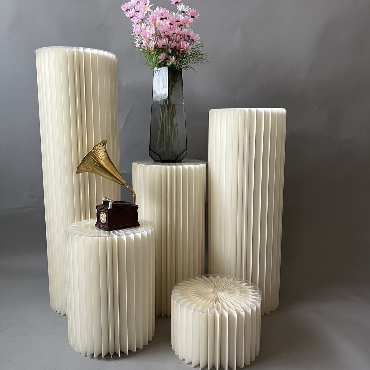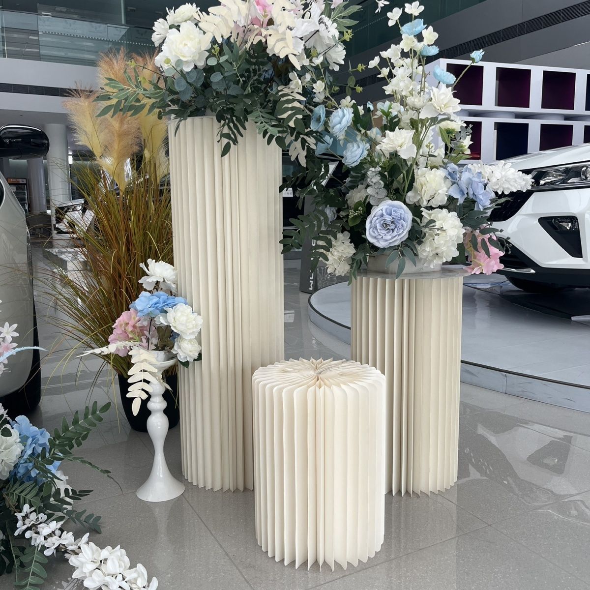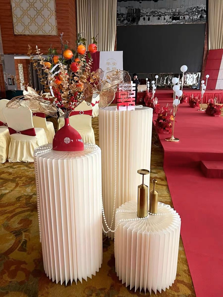 新款婚庆橱窗生日折纸路引折叠圆柱甜品台罗马柱节日派对装饰道具