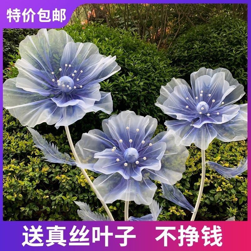新款婚庆道具舞台婚礼布置装饰橱窗拍照纸花真丝纱花成品路引花