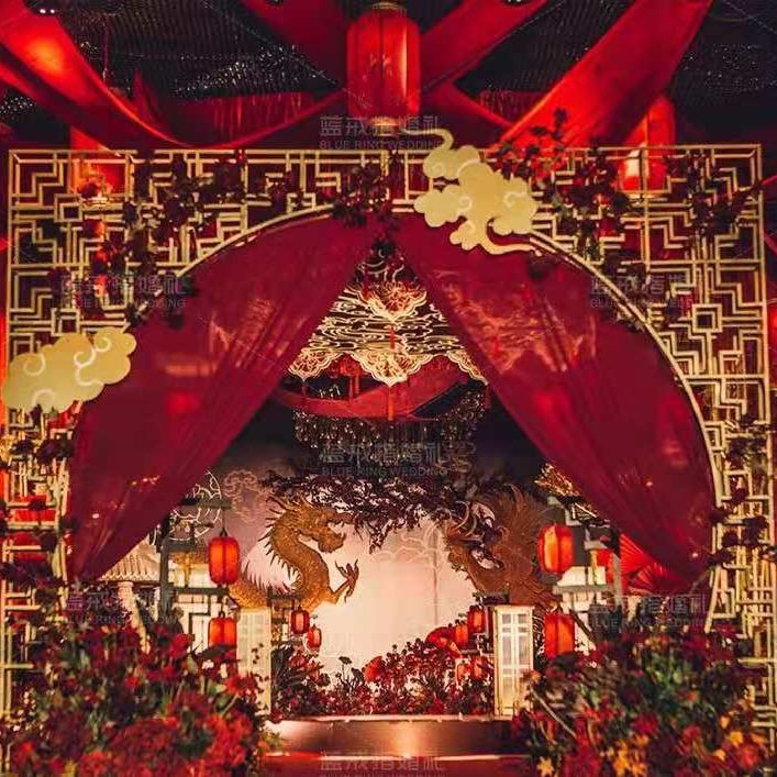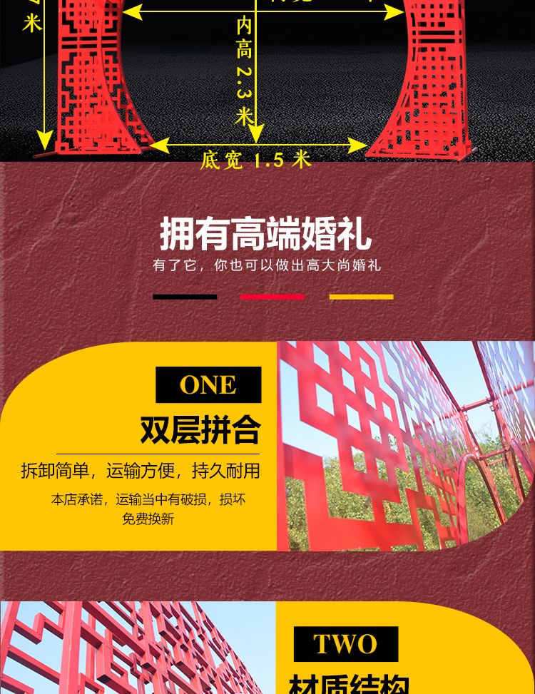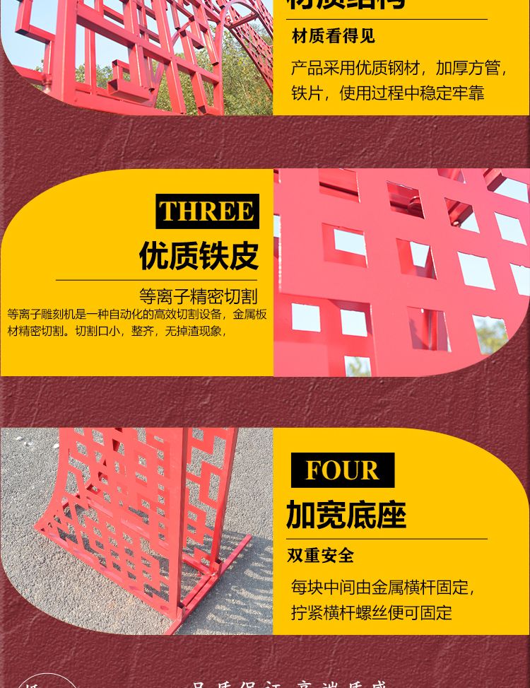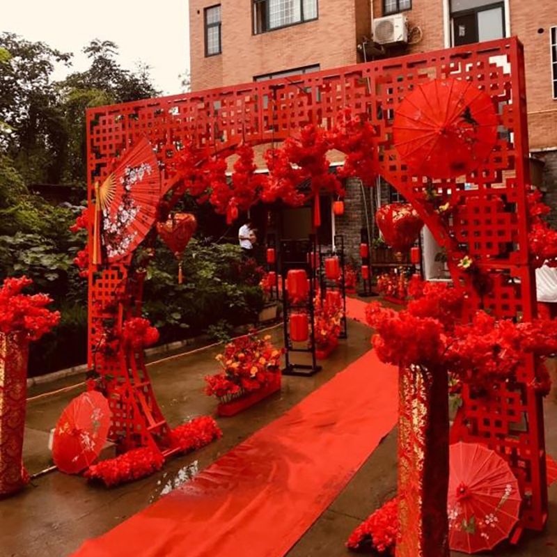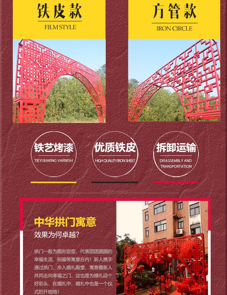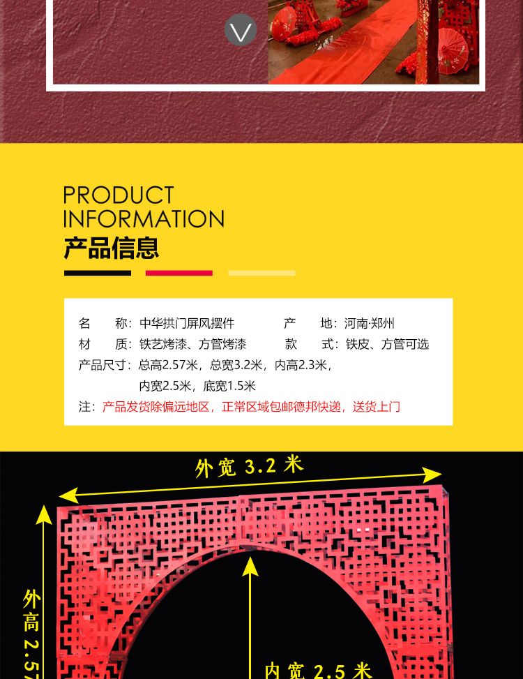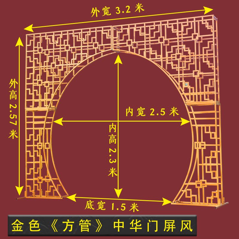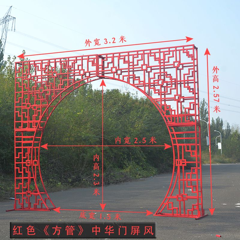中式婚庆道具铁艺中华门大拱门农村户外婚礼舞台装饰屏风路引摆件