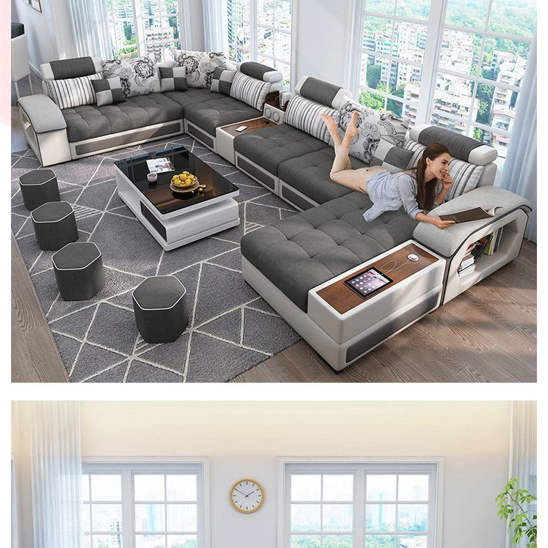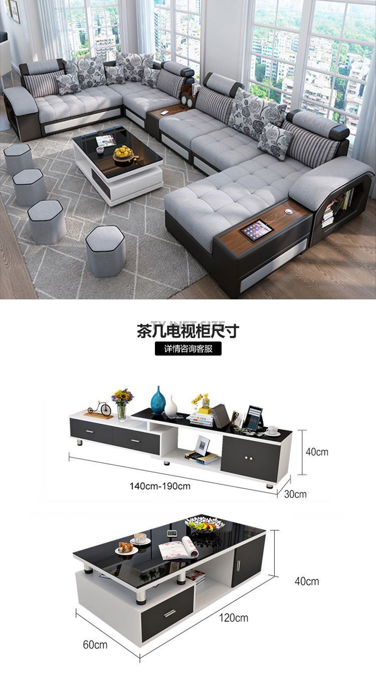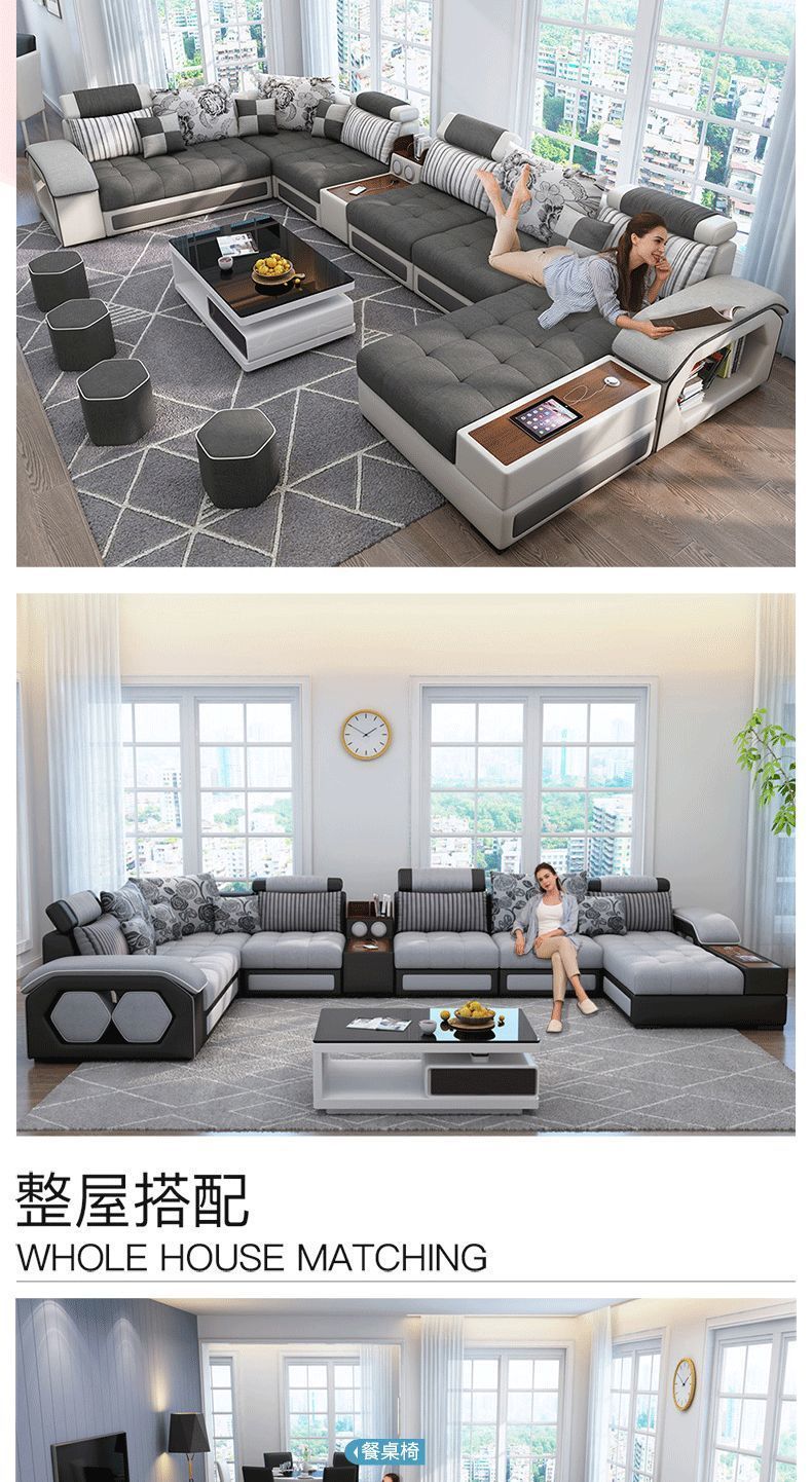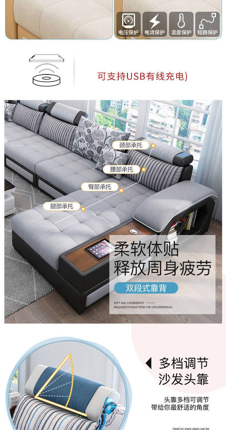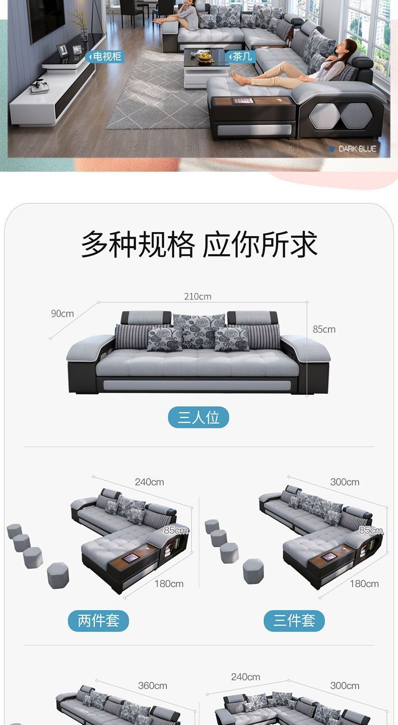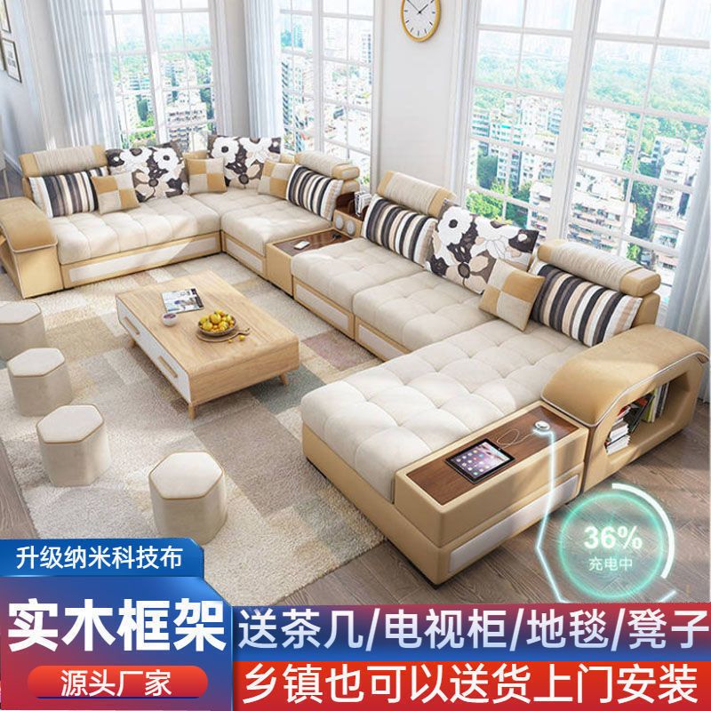 科技布艺沙发大小户型现代简约家用乳胶布沙发客厅组合家具可拆洗