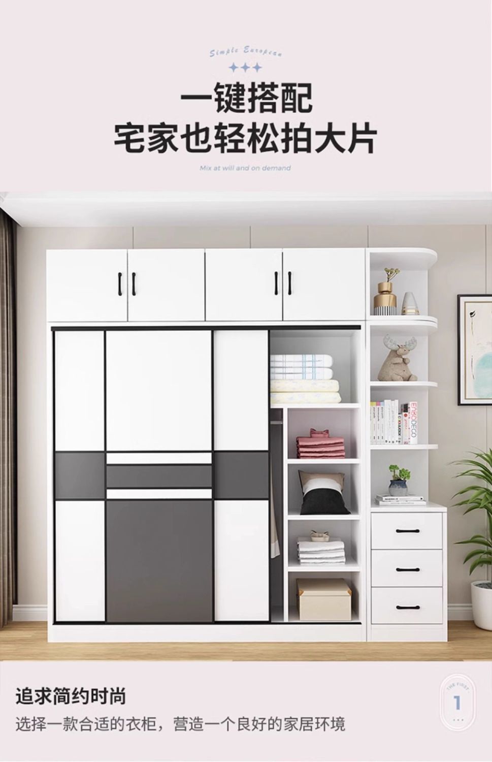 智赏衣柜家用卧室推拉门储物柜现代简约经济型收纳柜简易组合衣柜