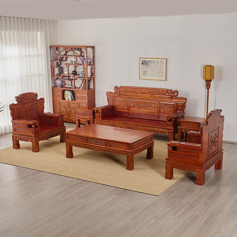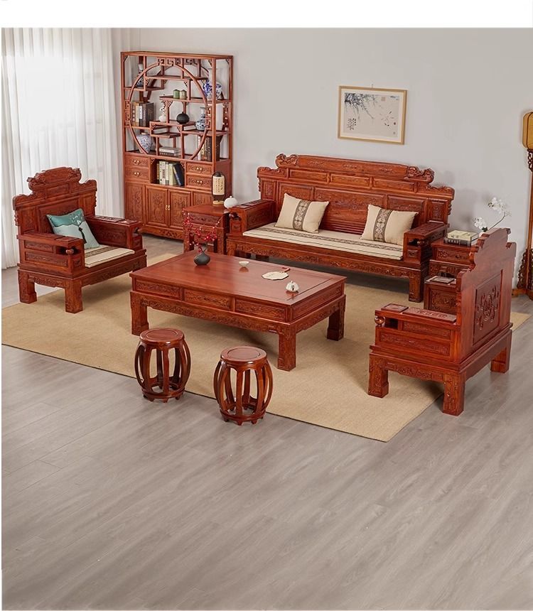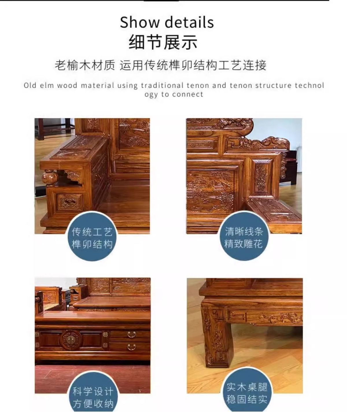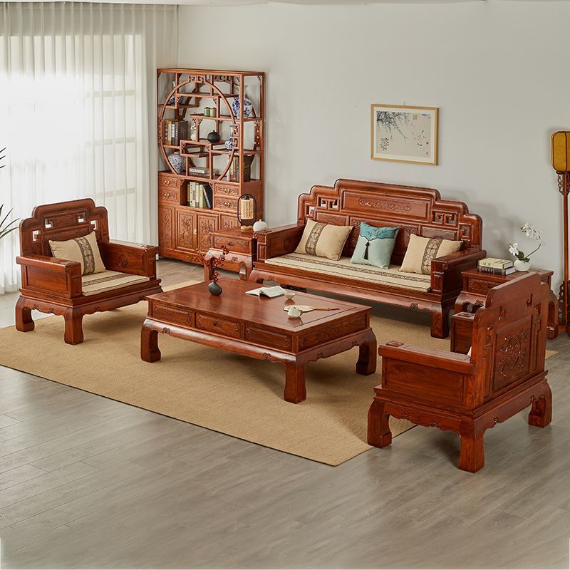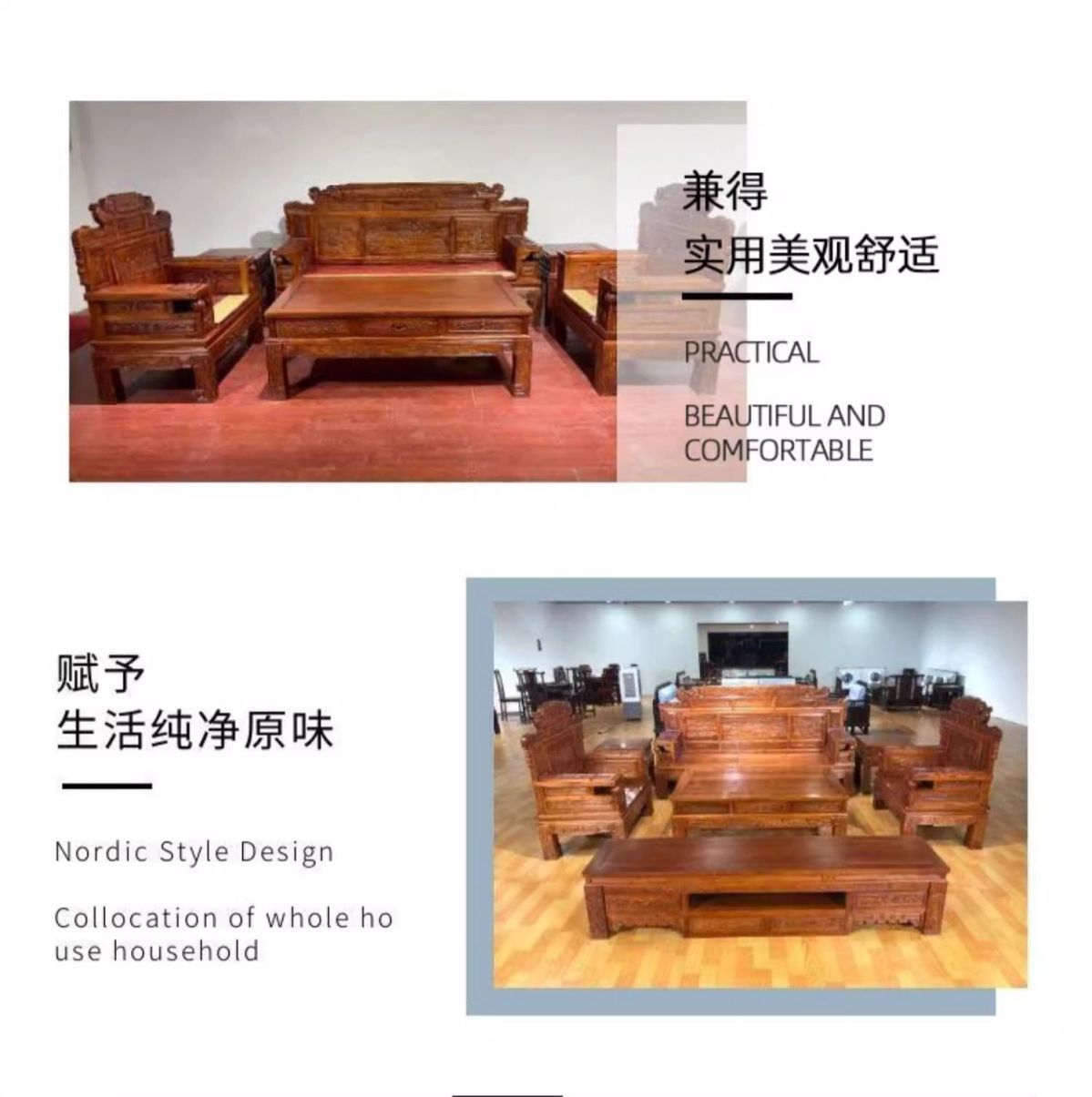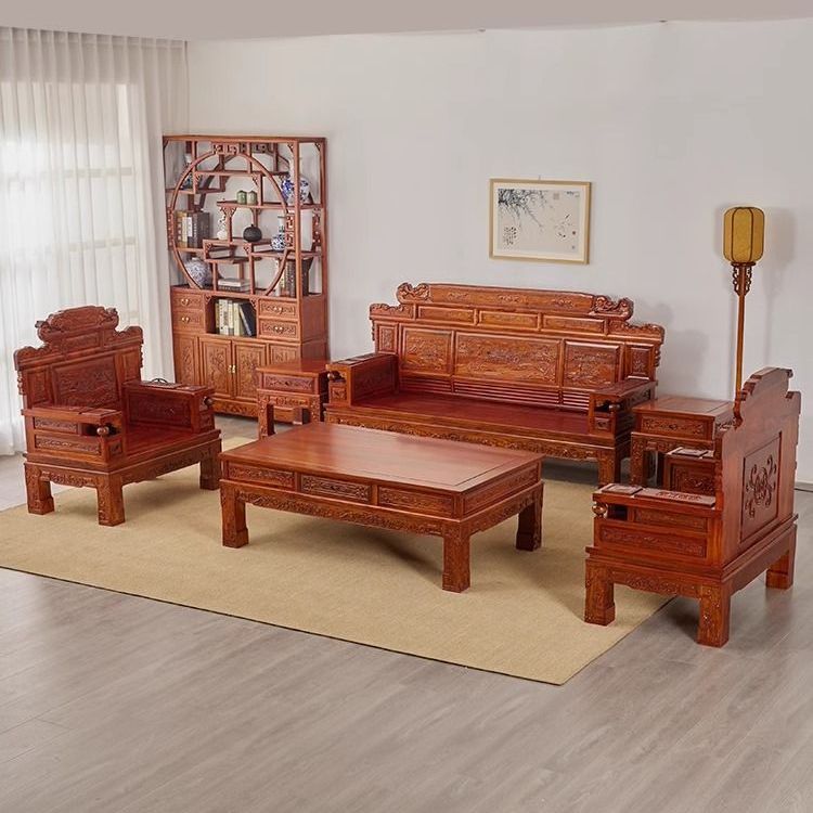 组合实木中式沙发客厅明清仿古茶几农村家具家用榆木雕花古典