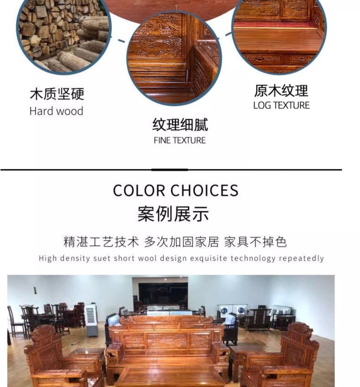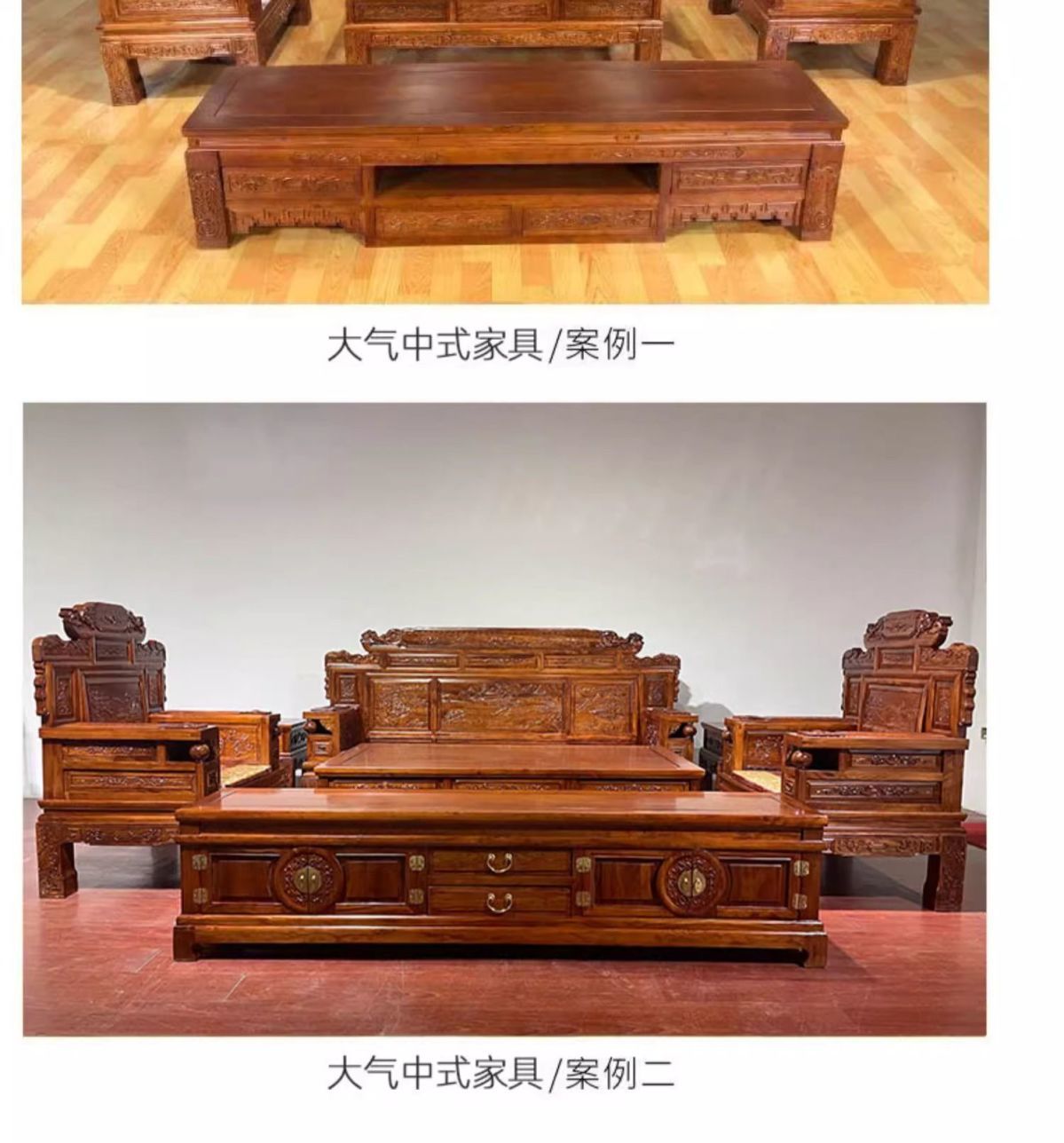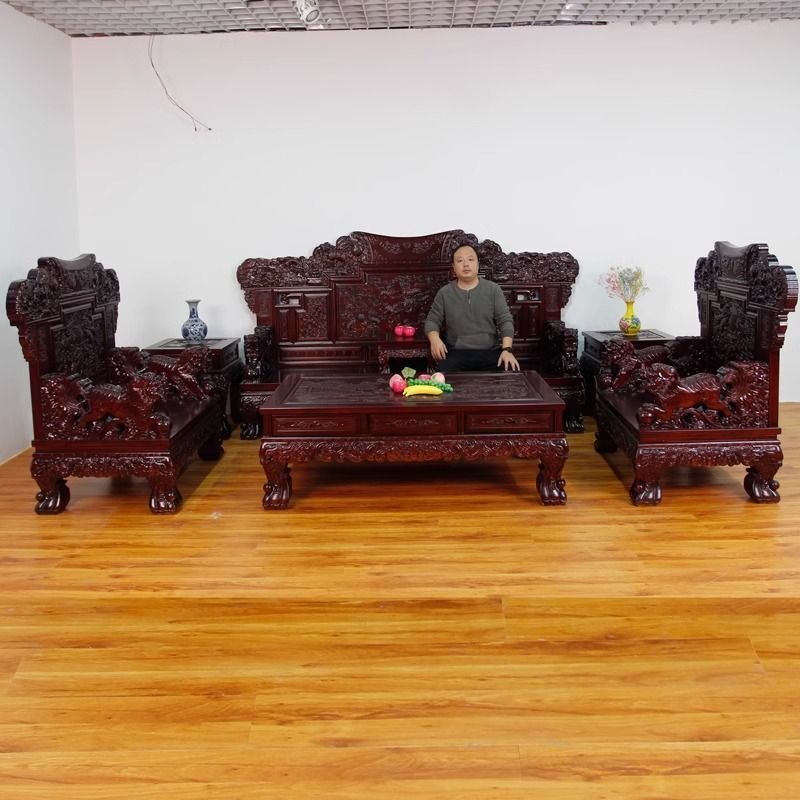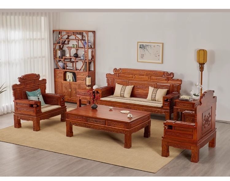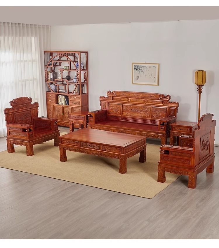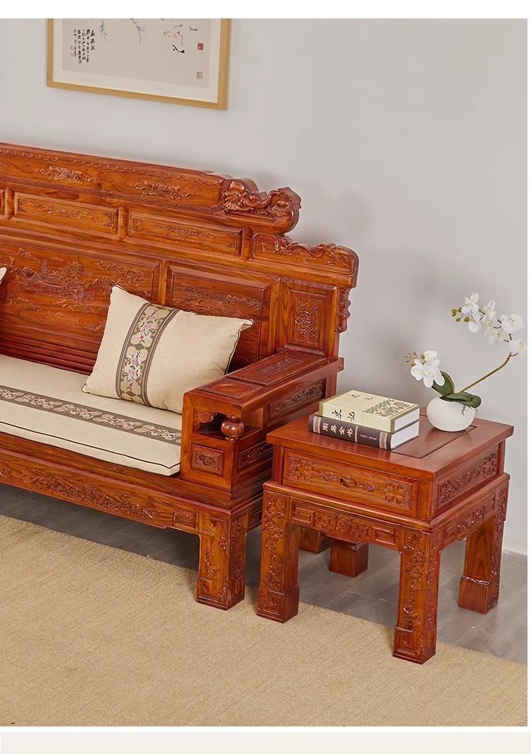 组合实木中式沙发客厅明清仿古茶几农村家具家用榆木雕花古典