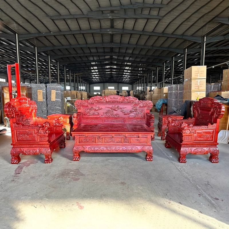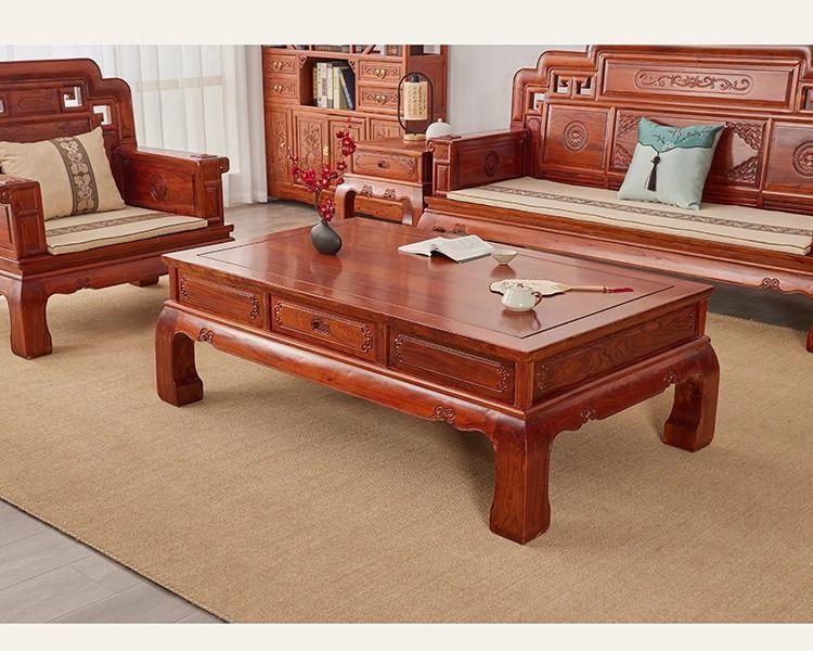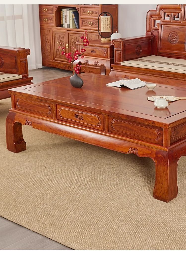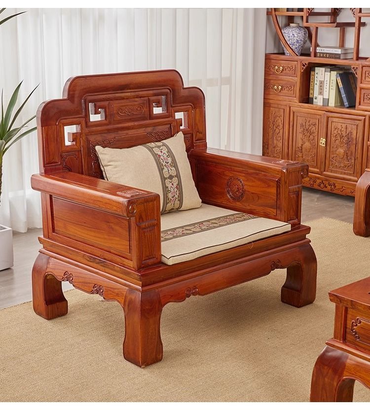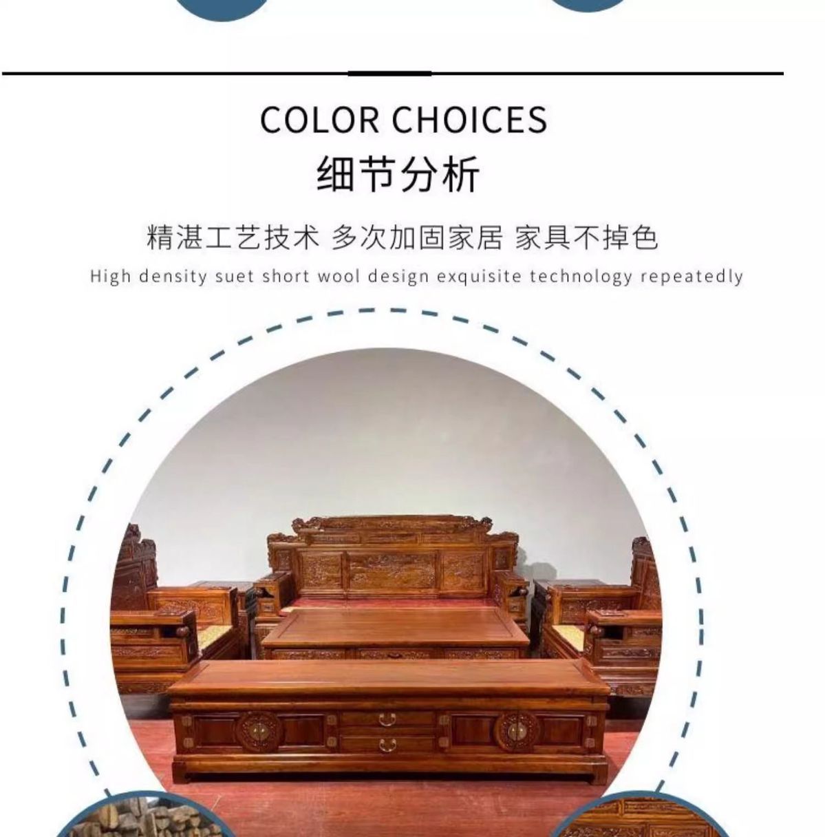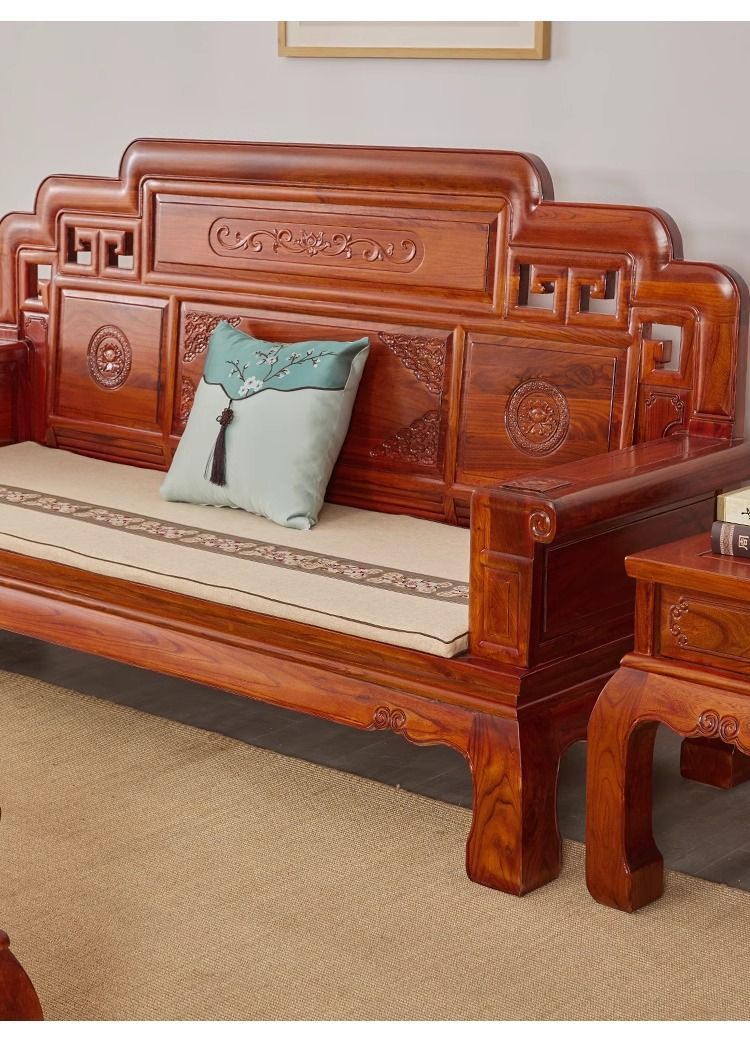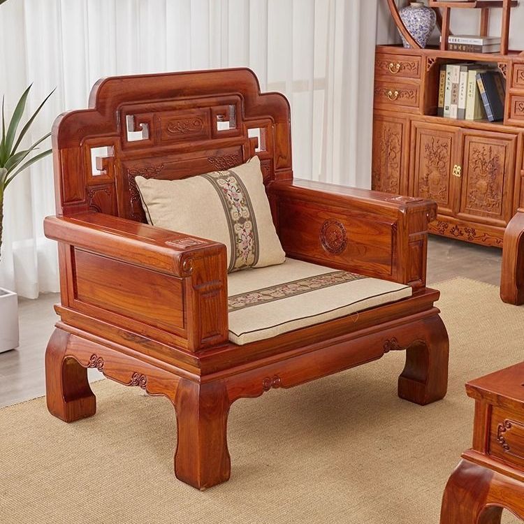组合实木中式沙发客厅明清仿古茶几农村家具家用榆木雕花古典