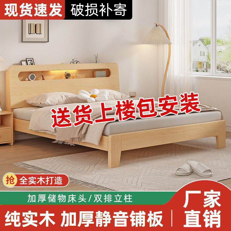 实木床1.5米双人床家用1.8米现代简约出租房经济型1.2m单人床架