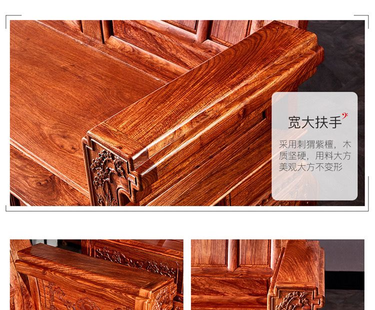 红木沙发花梨木刺猬紫檀中式大奔沙发客厅组合小户型仿古实木家具