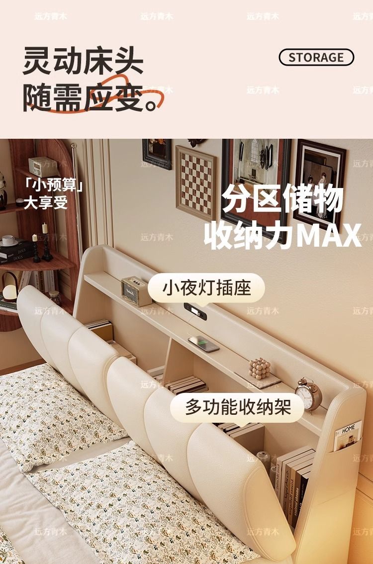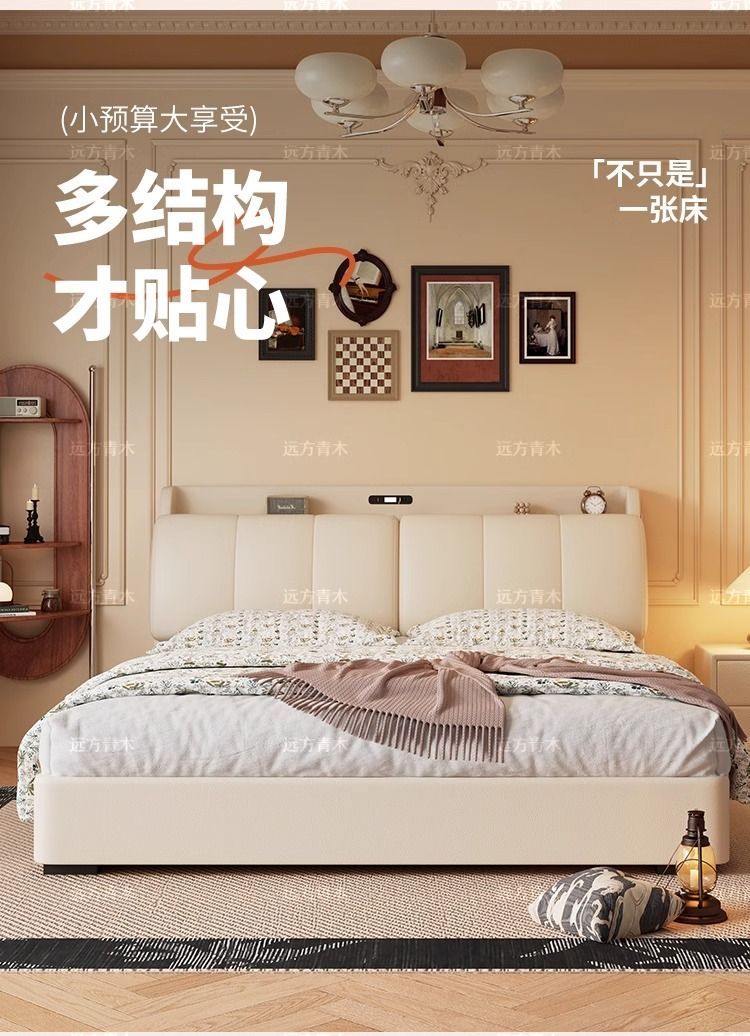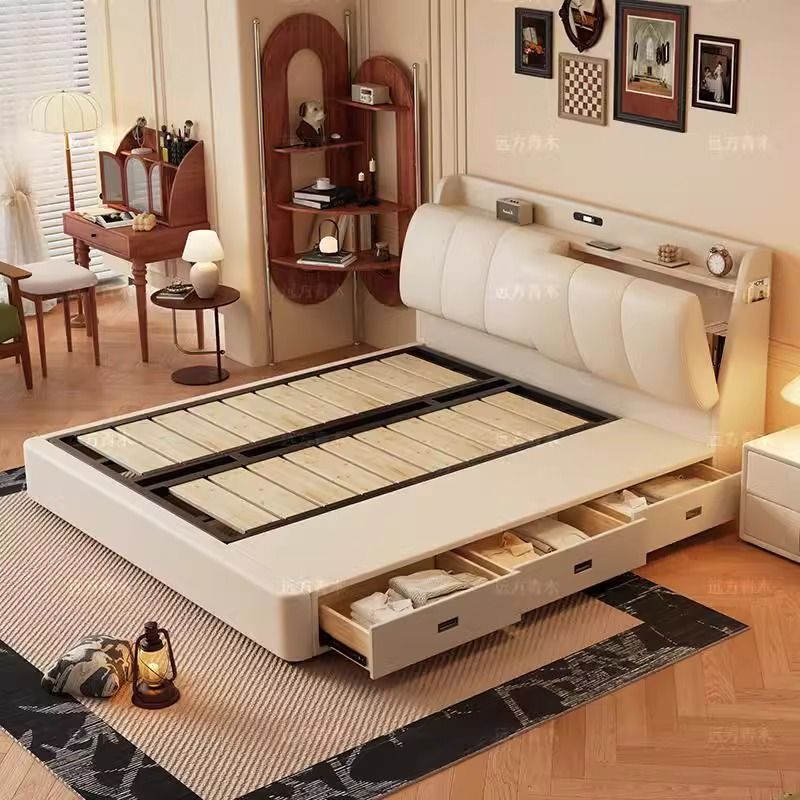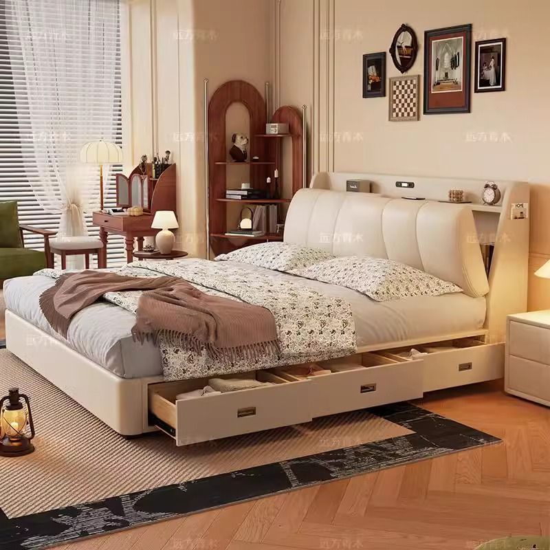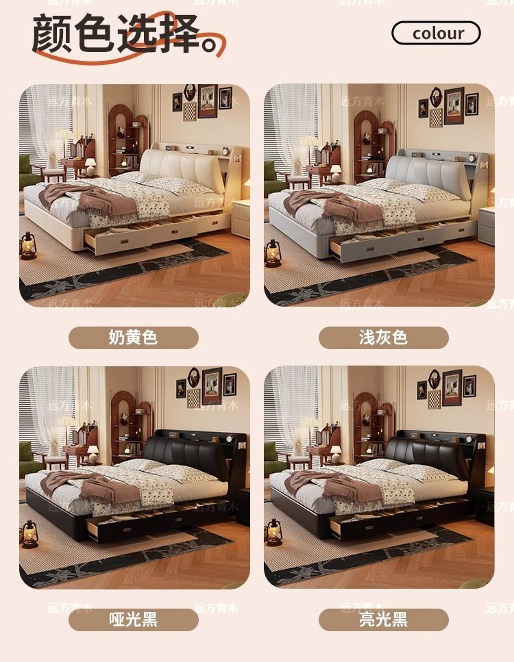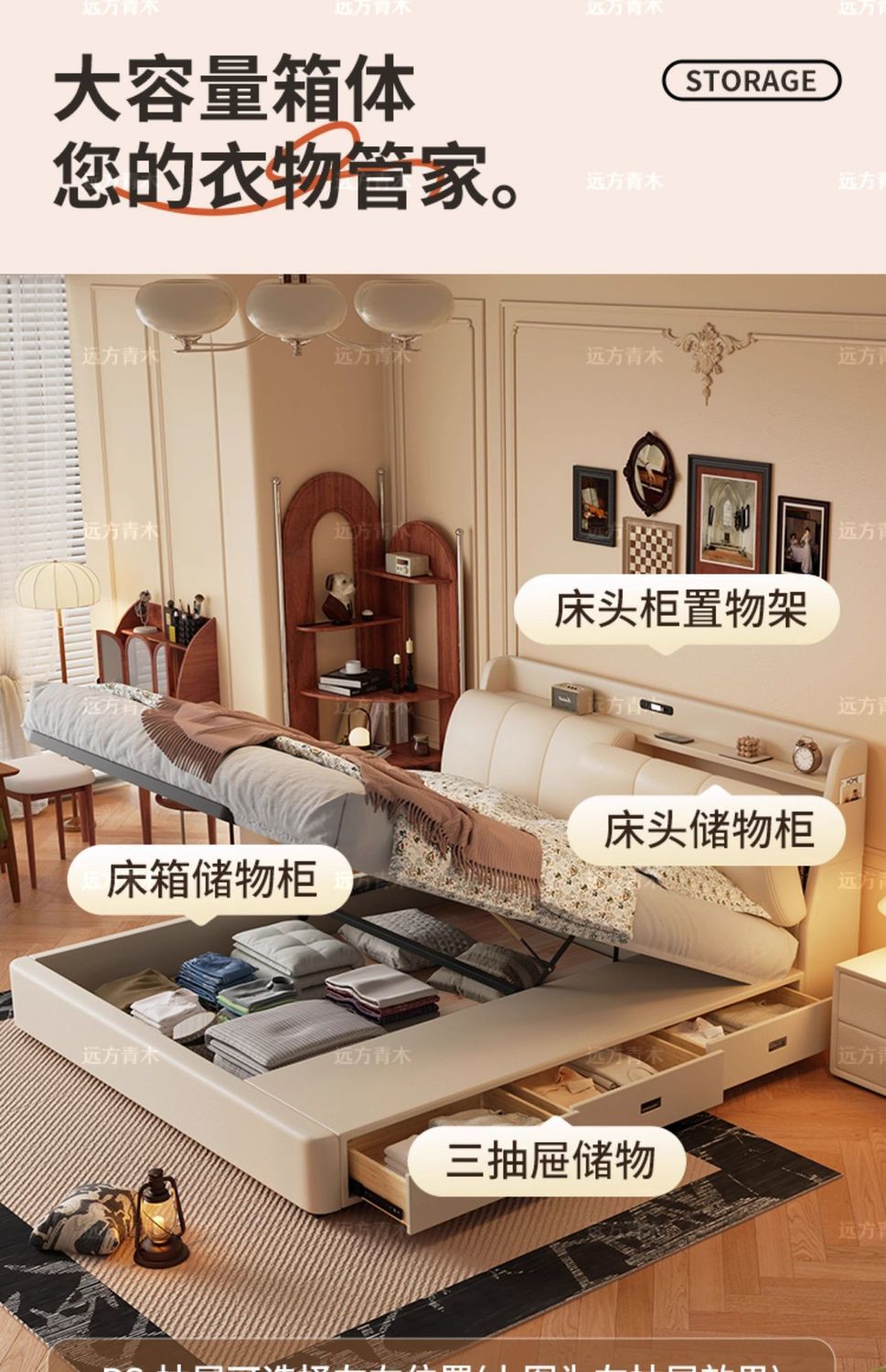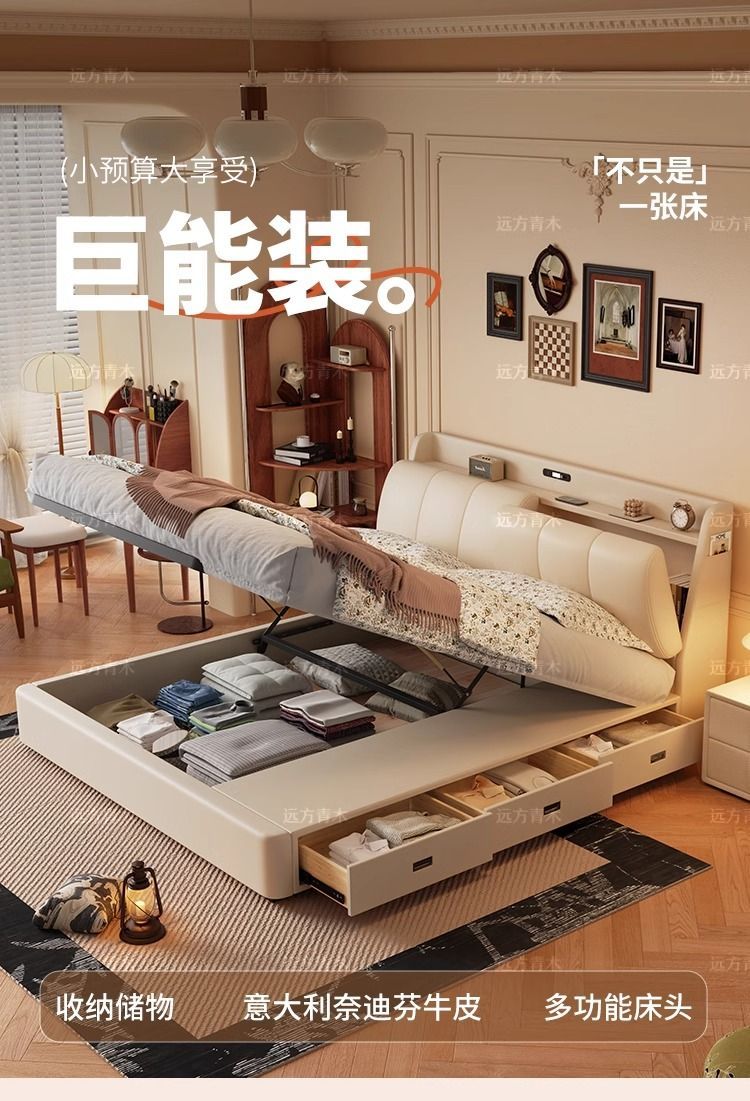 奶油风多功能真皮床轻奢主卧储物双人床网红现代简约抽屉收纳大床