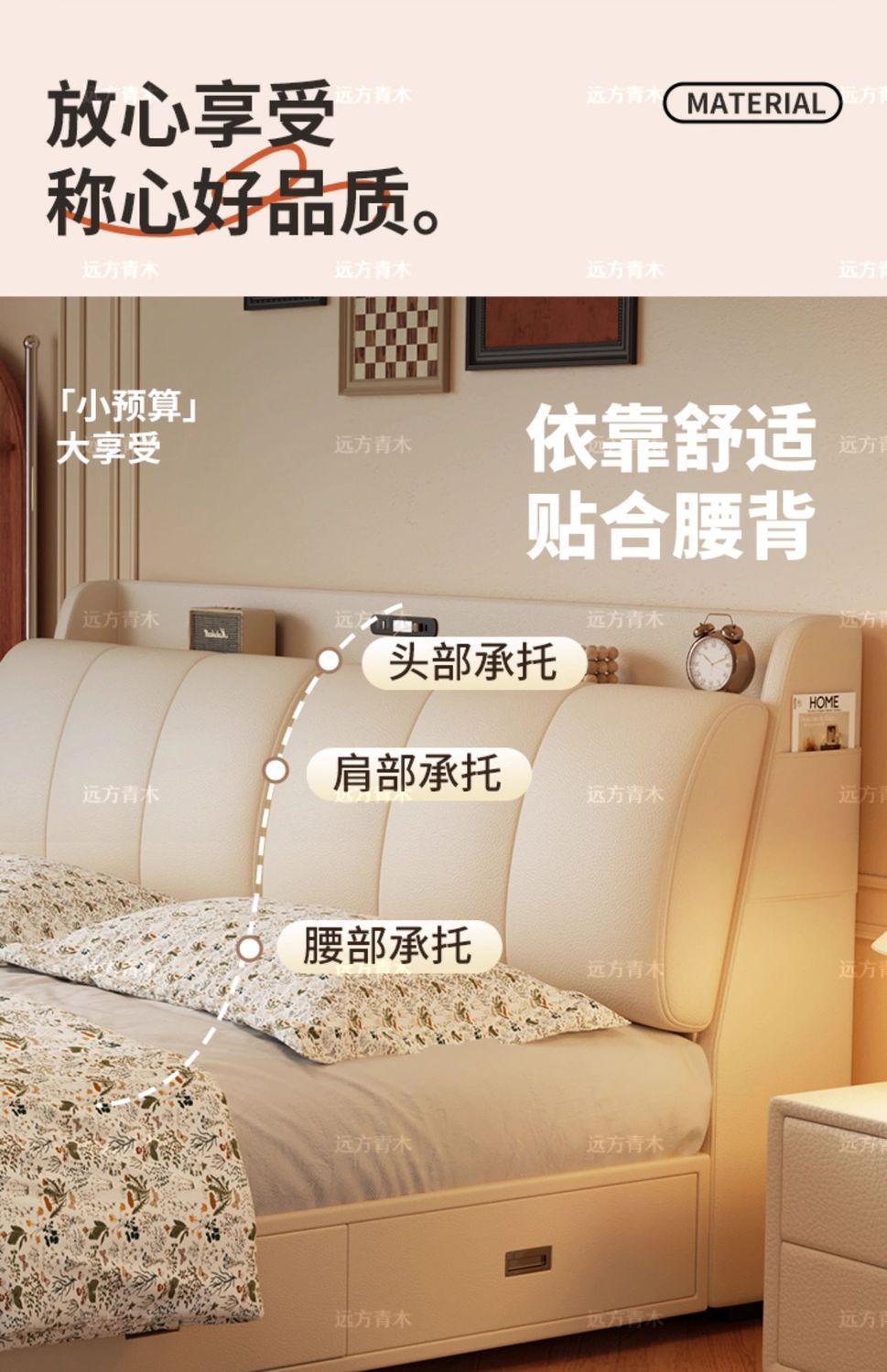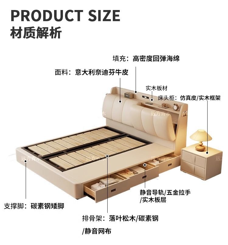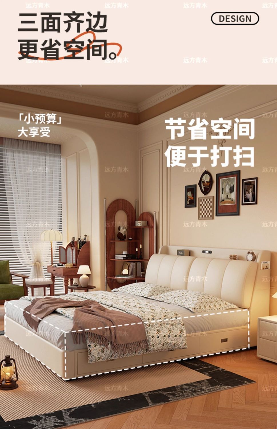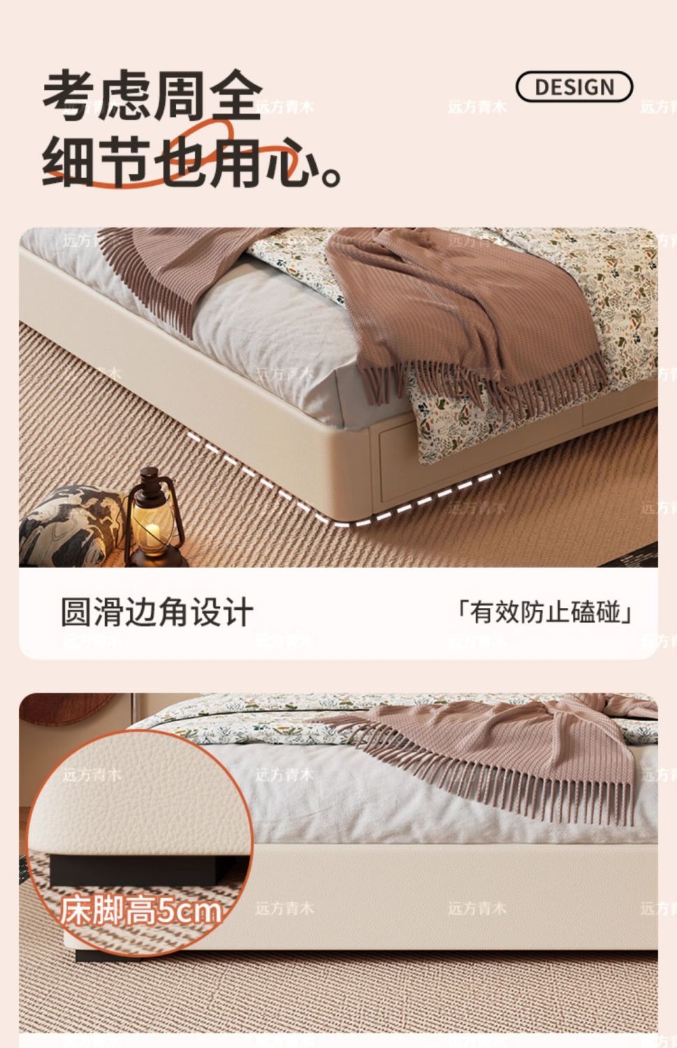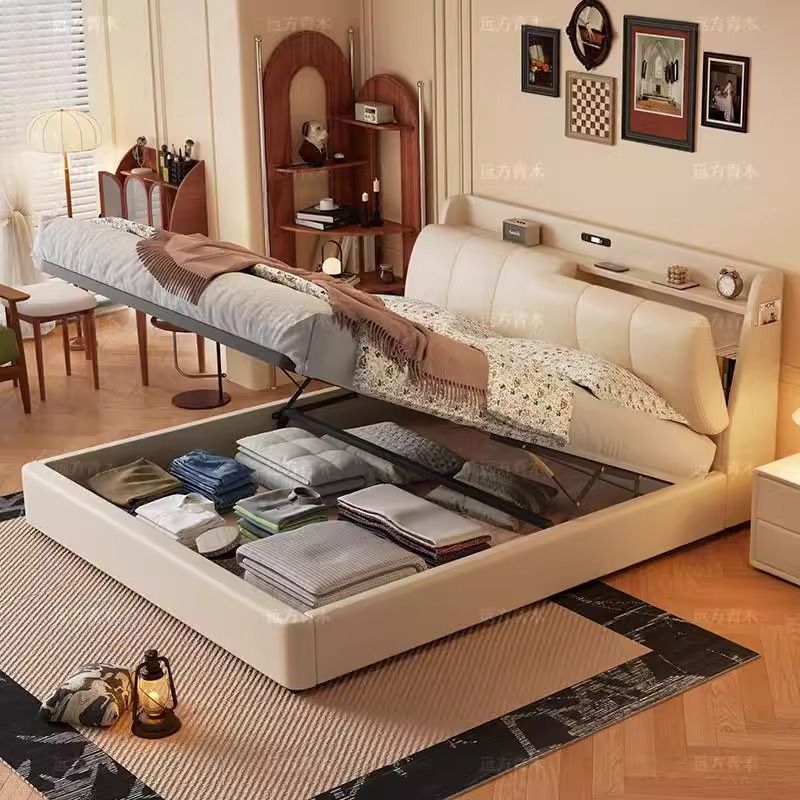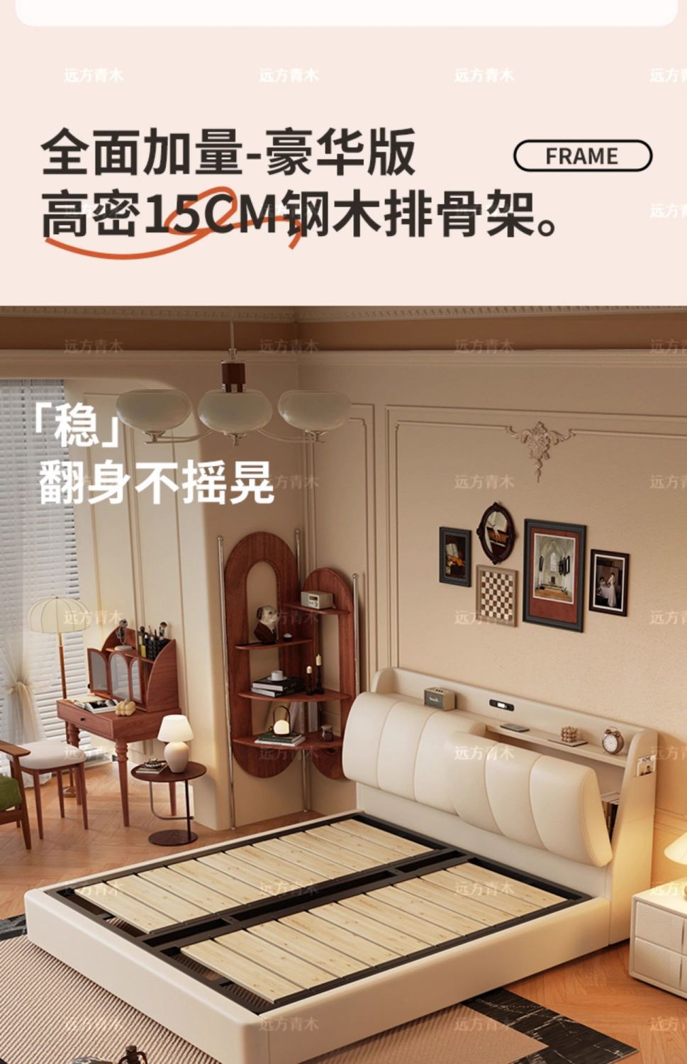 奶油风多功能真皮床轻奢主卧储物双人床网红现代简约抽屉收纳大床