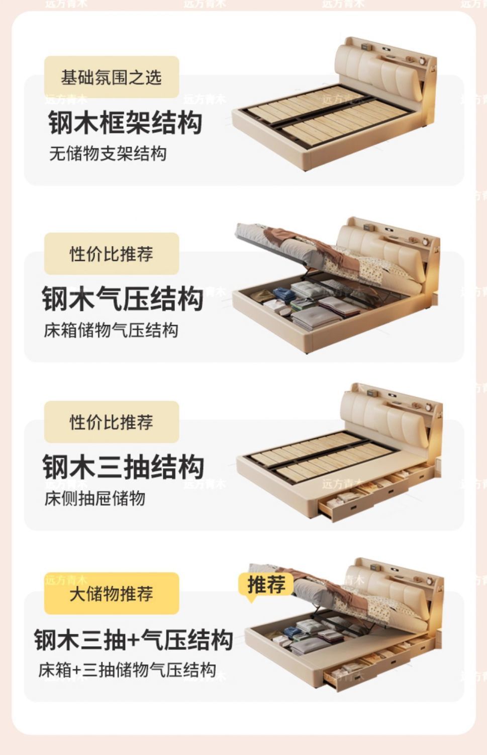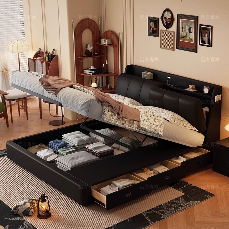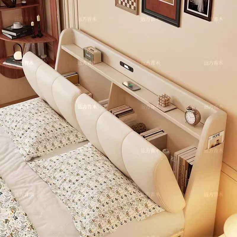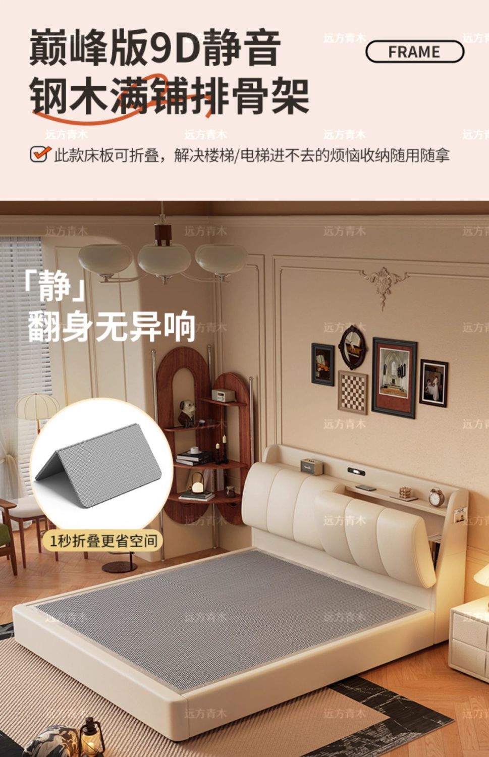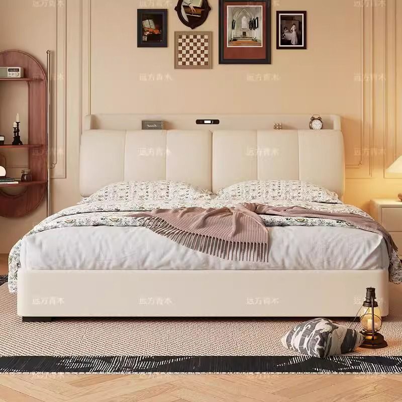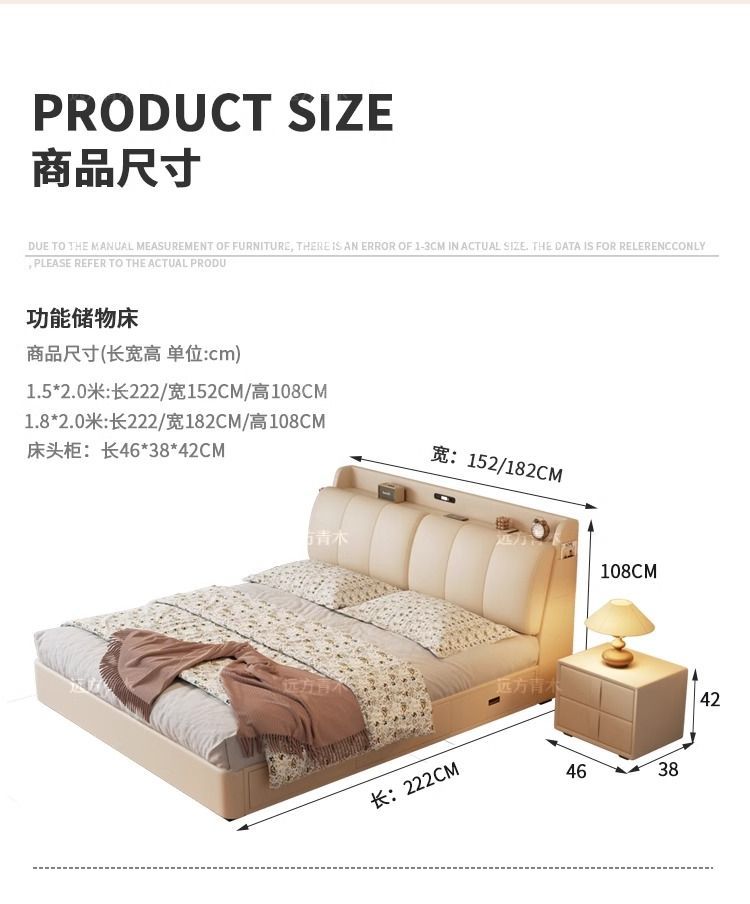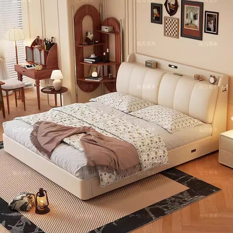 奶油风多功能真皮床轻奢主卧储物双人床网红现代简约抽屉收纳大床