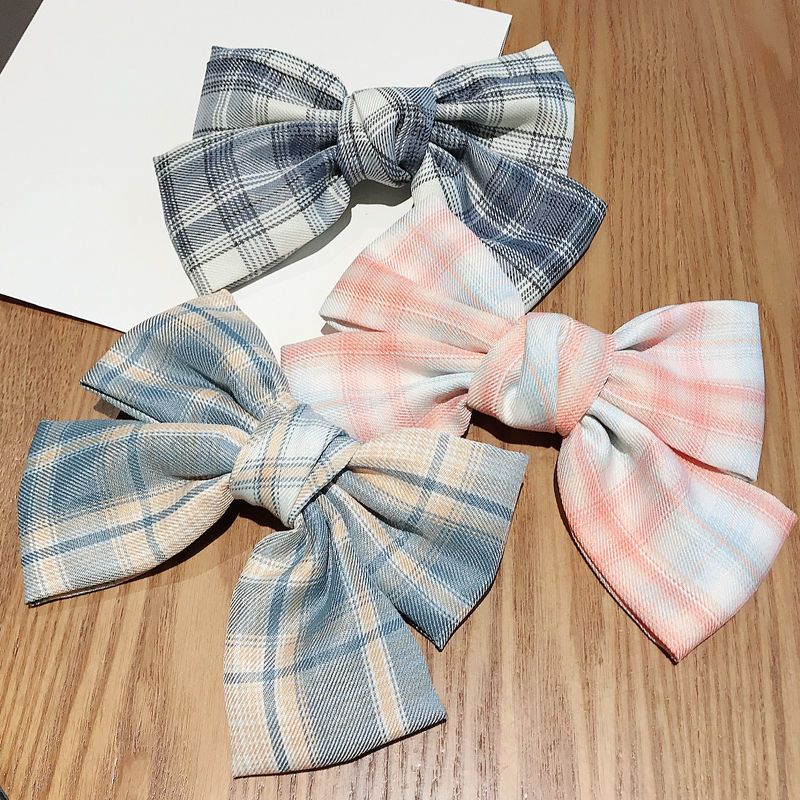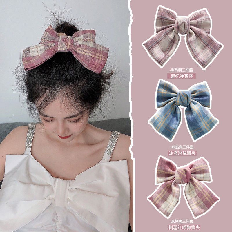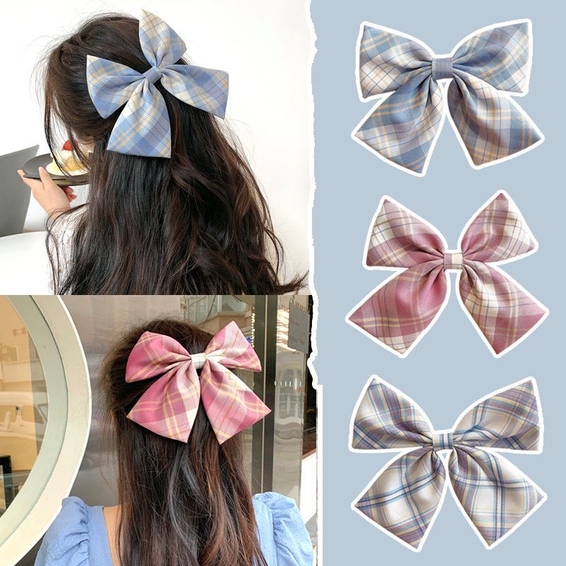日韩网红大蝴蝶结夹子头饰格子发夹后脑勺少女超仙发饰【JK制服】