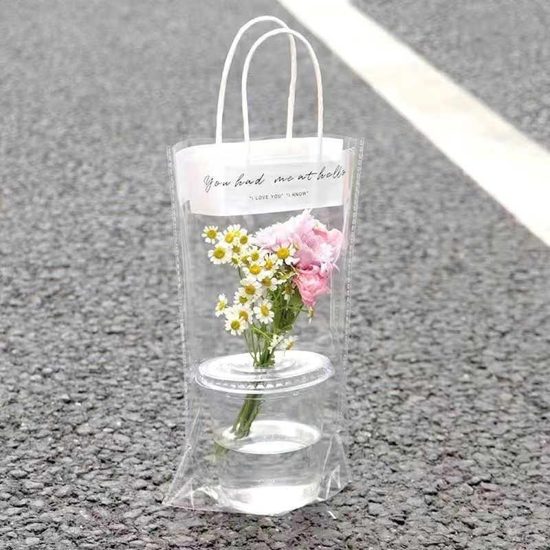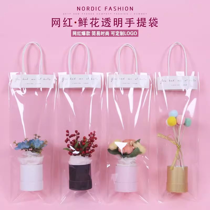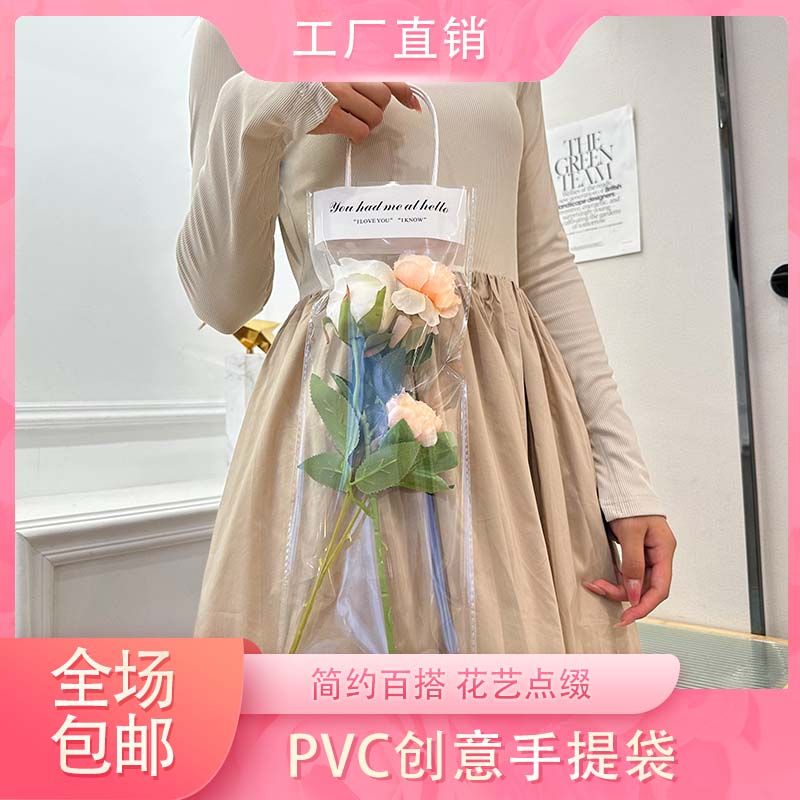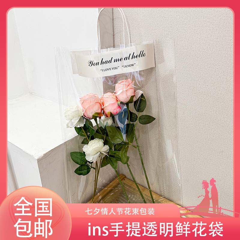 鲜花手提袋网红透明礼品袋花束单只花袋情人节教师节向日葵礼物袋