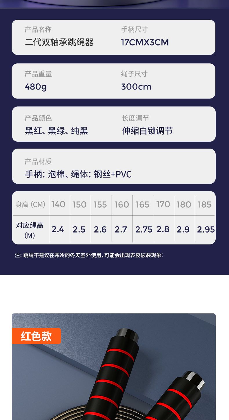 | wht-[double load/fat burning] steel wire rope 340g(WHT-【双负重/燃脂】钢丝绳340g) | USD $3.52 | 999999 piece available |