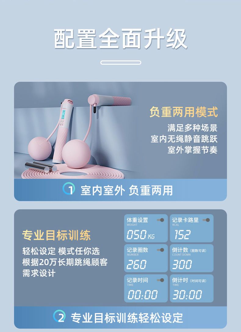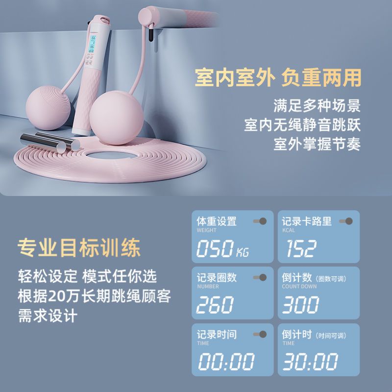 无绳跳绳计数跳绳大负重大球跳绳块减肥专用健身室内运动中考专用