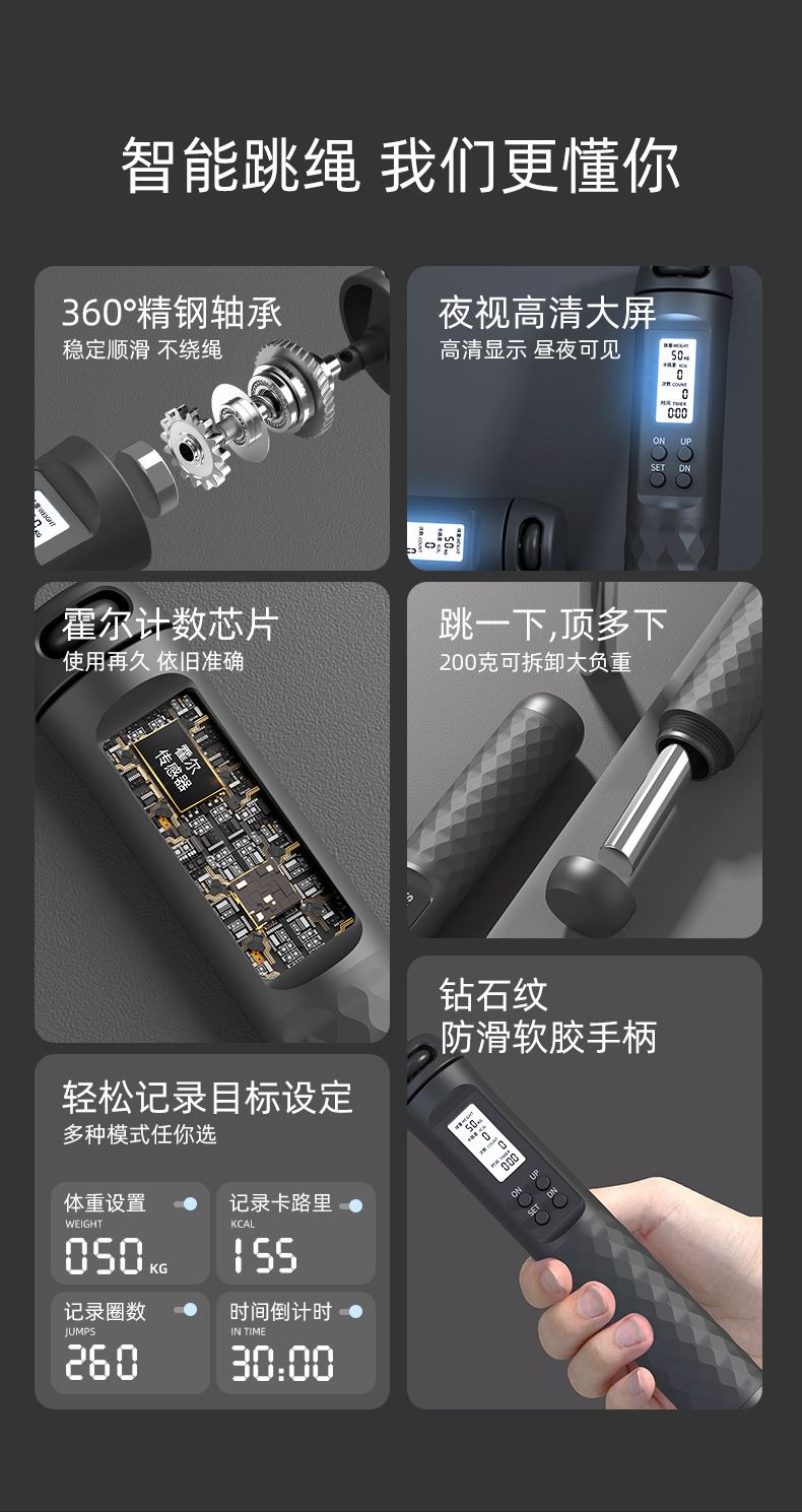 无绳跳绳负重健身减肥运动专用计数专业燃脂中考学生重力成人绳子