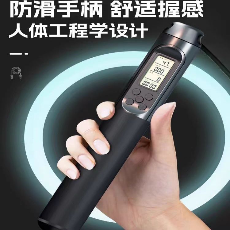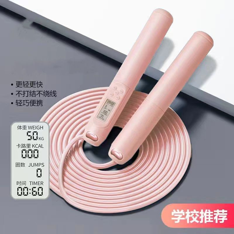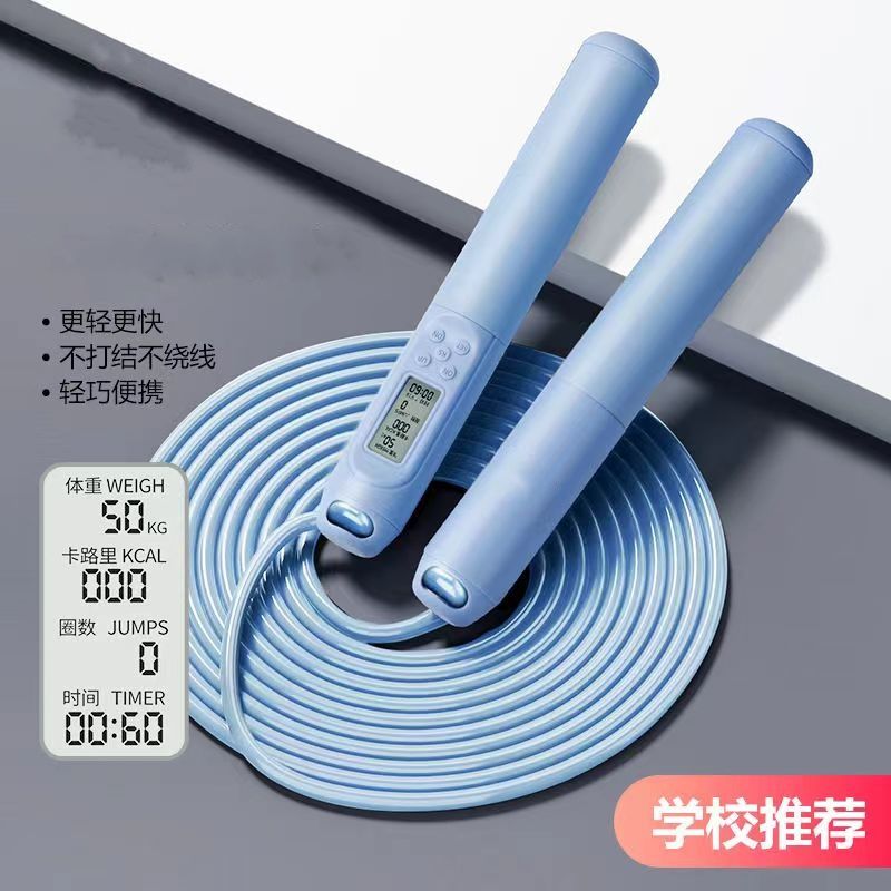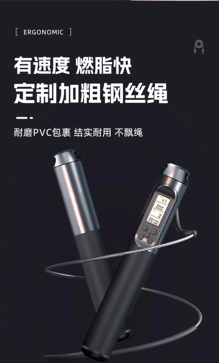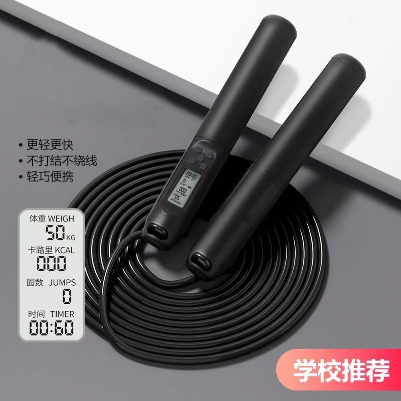中考健身减肥专用跳绳初中生小学生计时计数PU跳绳体育考试钢丝绳