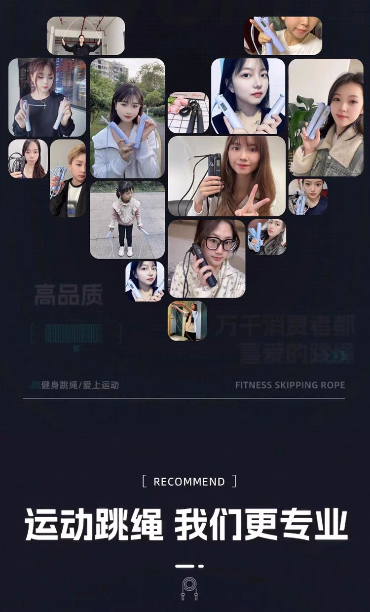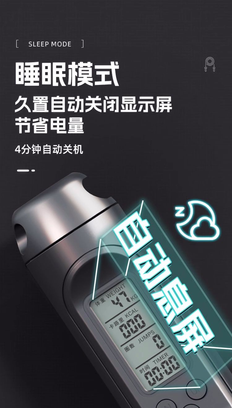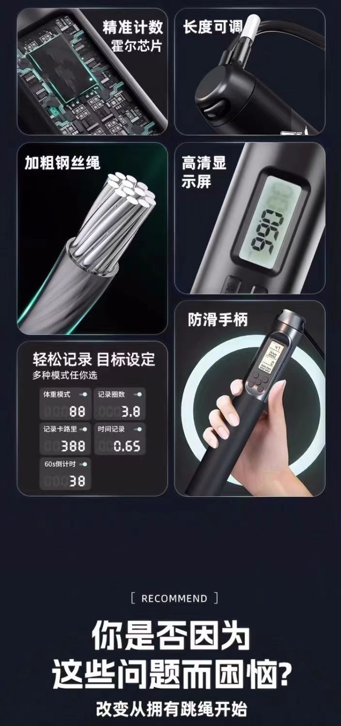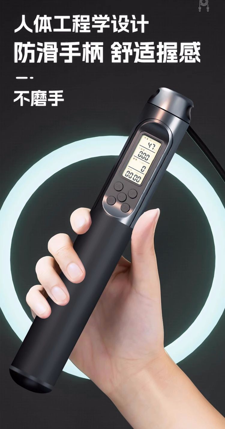 中考健身减肥专用跳绳初中生小学生计时计数PU跳绳体育考试钢丝绳