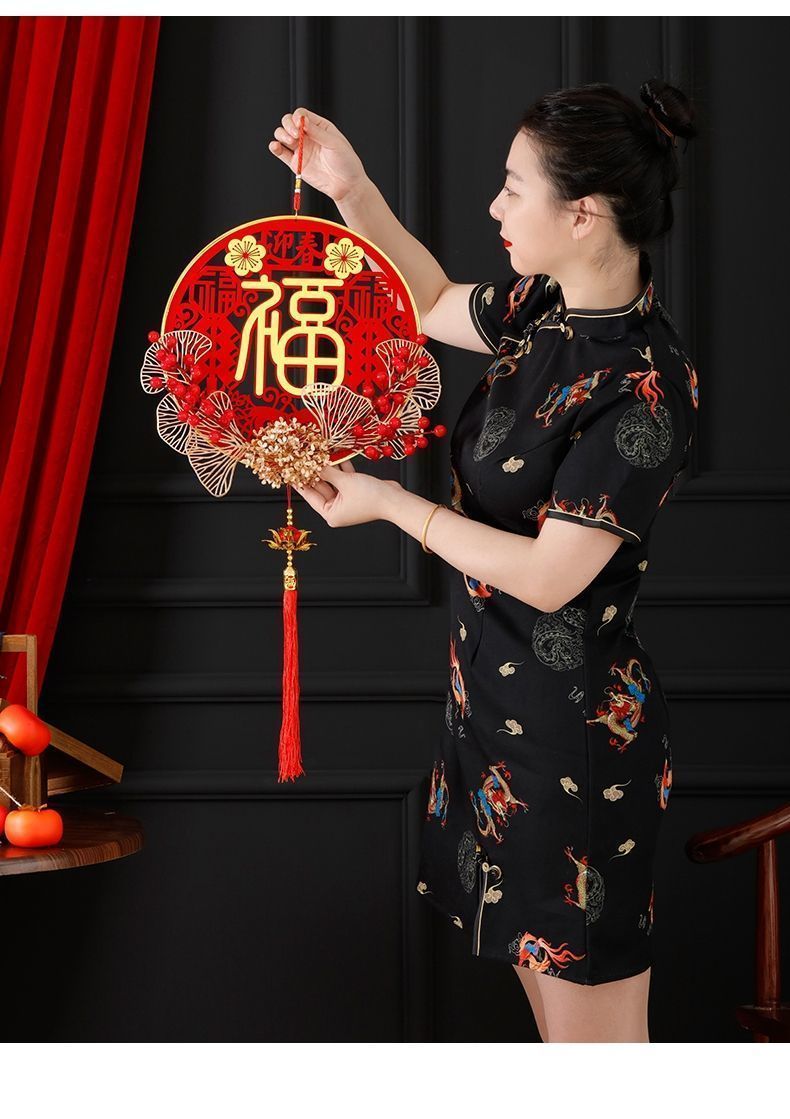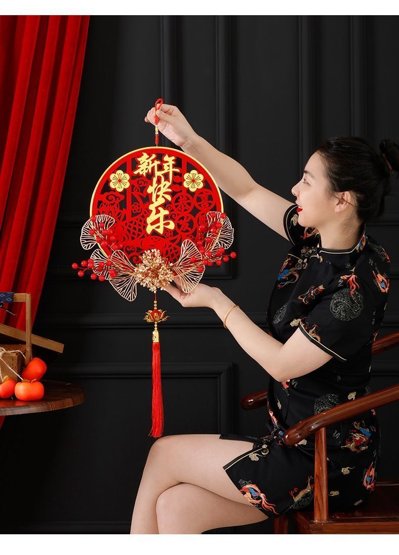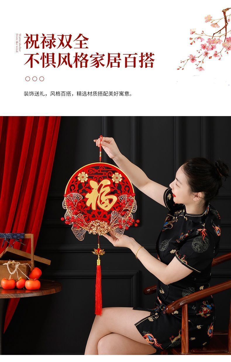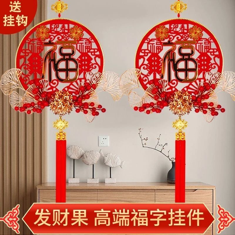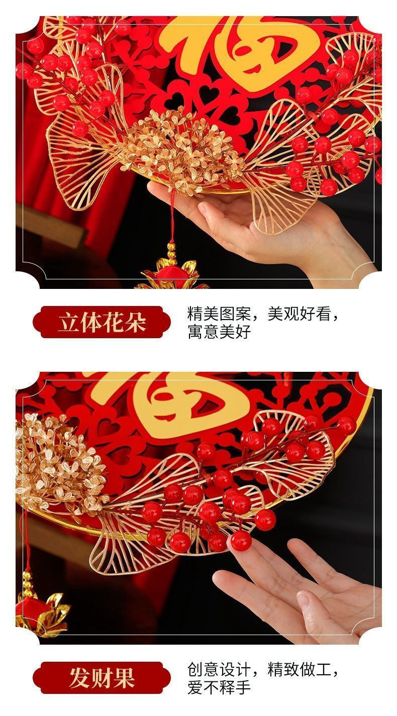新款仿真花假花立体插花福挂饰新年发财果红果福字中国结新年挂件