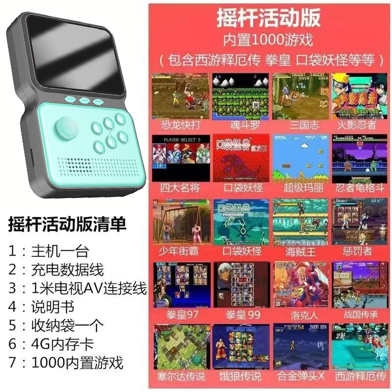 | rocker psp + data cable +2 batteries +1 m video cable(摇杆掌机+数据线+2电池+1米视频线) | USD $20.11 | 999999 piece available |