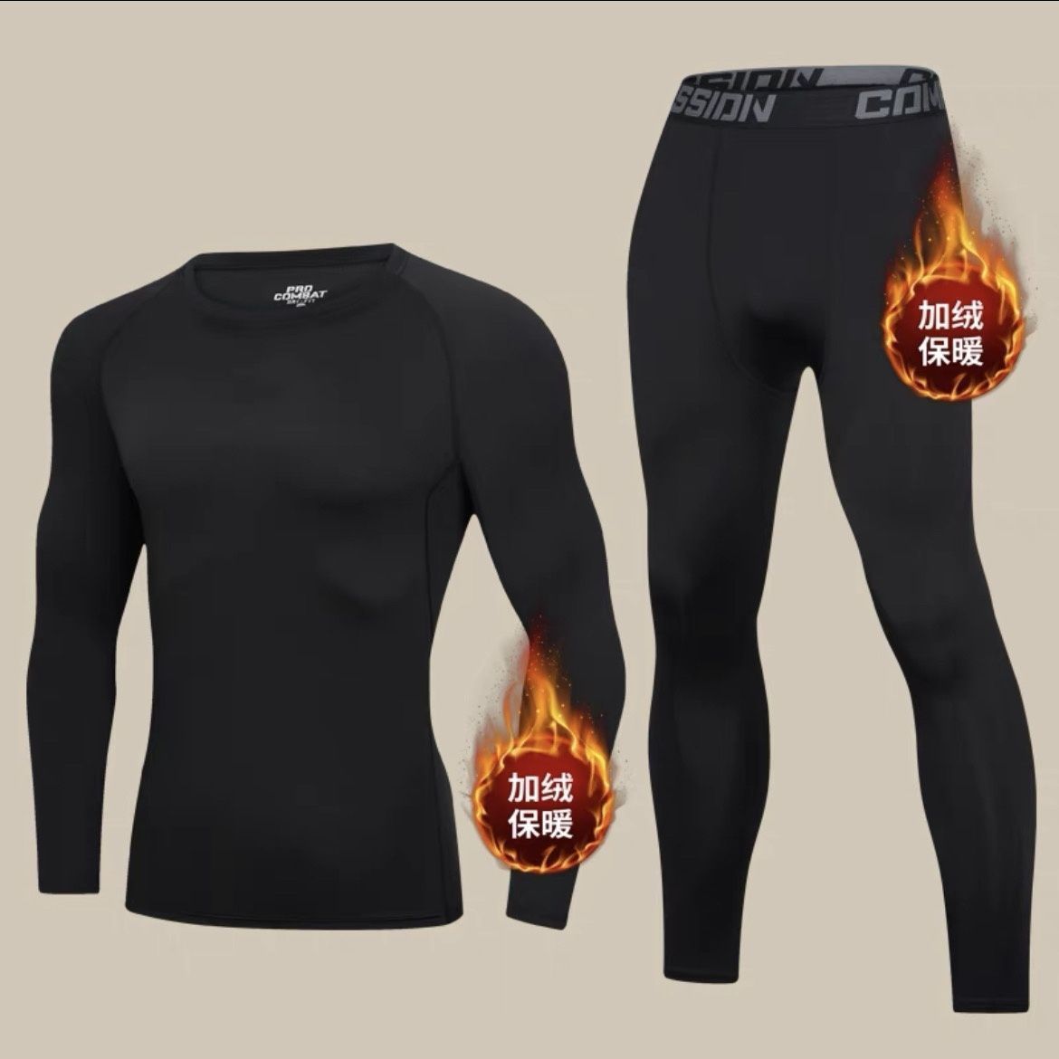 保暖男士套装紧身加绒保暖秋衣秋裤户外跑步运动速干健身衣服秋冬