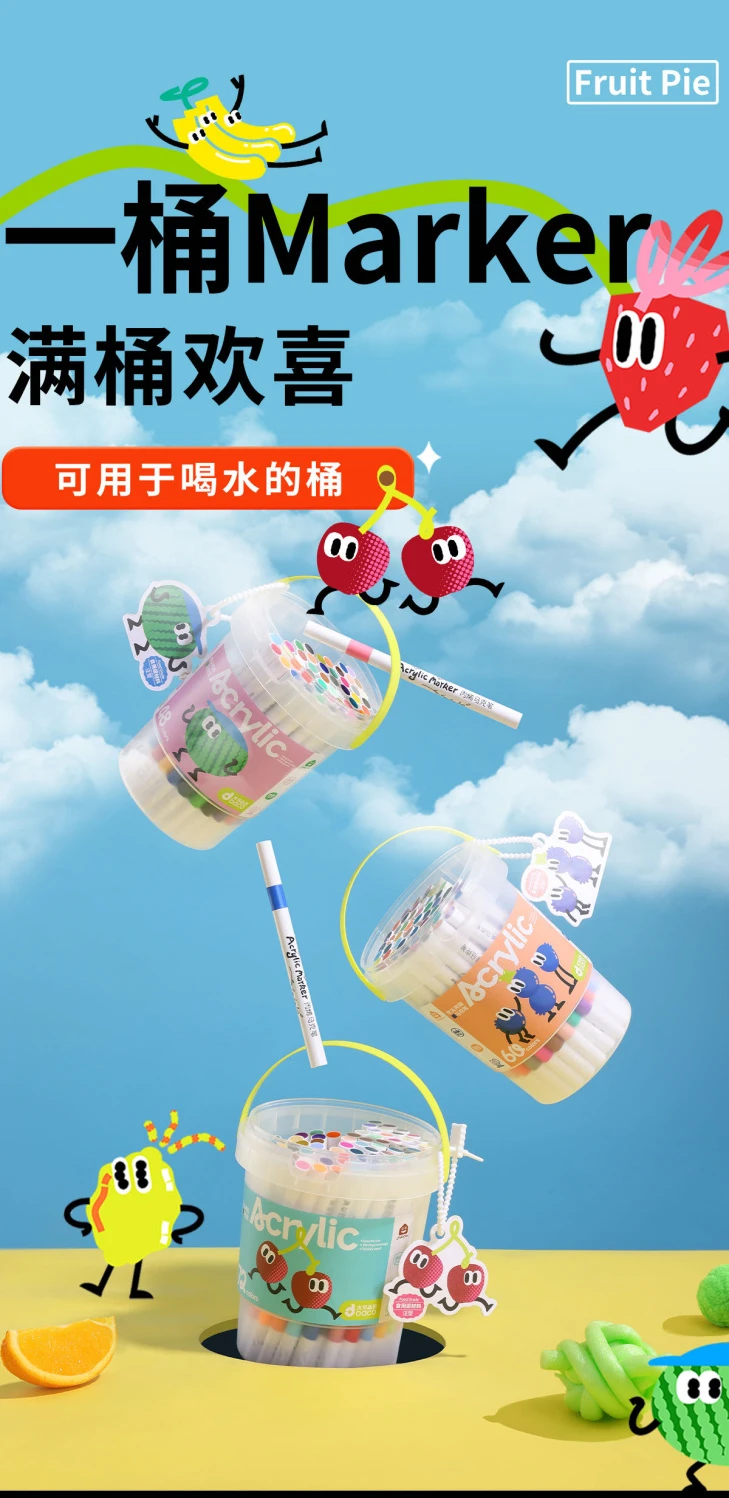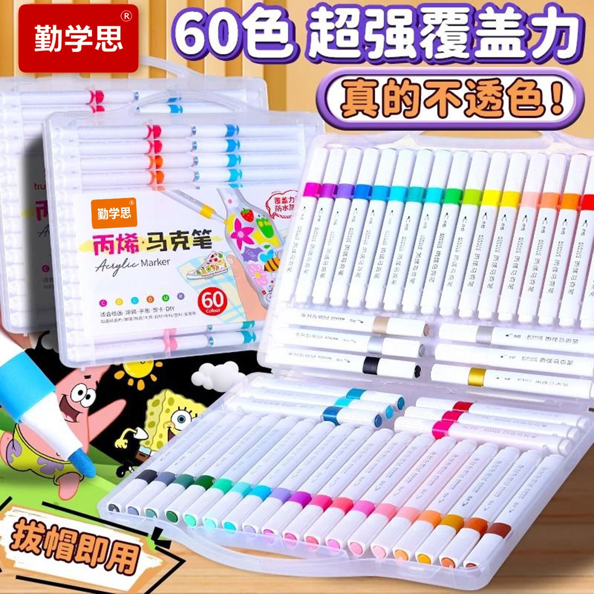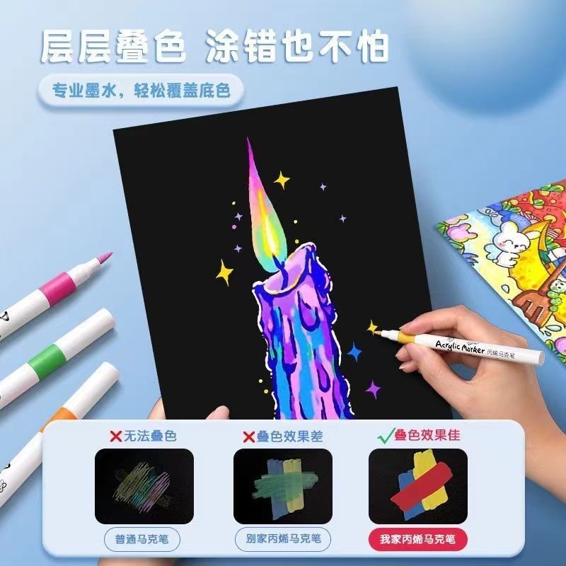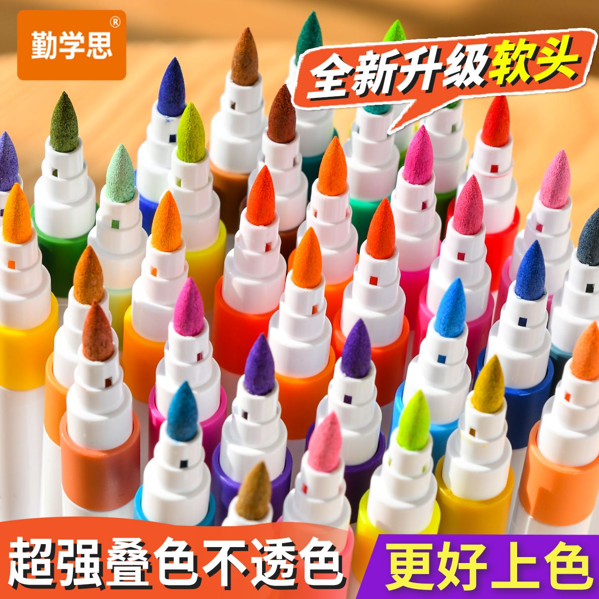 正版丙烯马克笔不透纸可叠色儿童学生专用业软头幼儿园可水洗彩笔