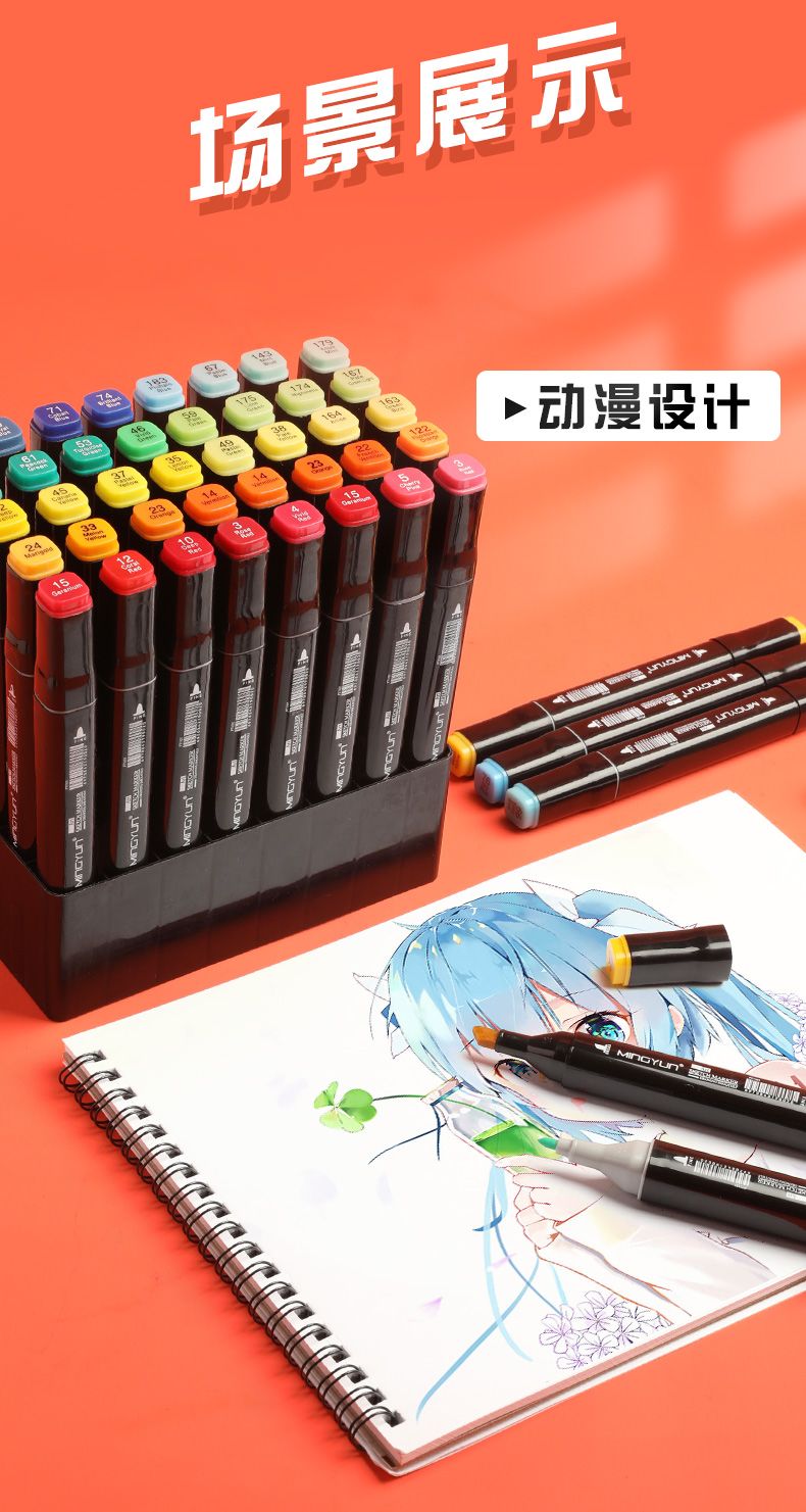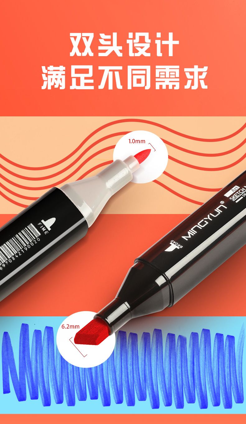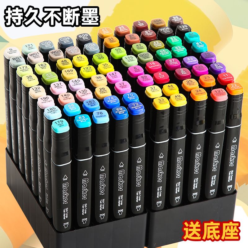 马克笔学生专用正版全套便宜笔芯学生水彩笔多色美术正版双头油性
