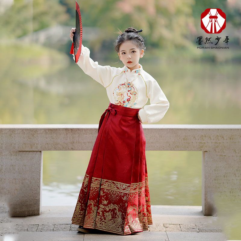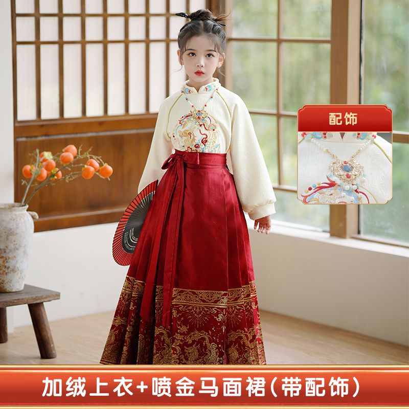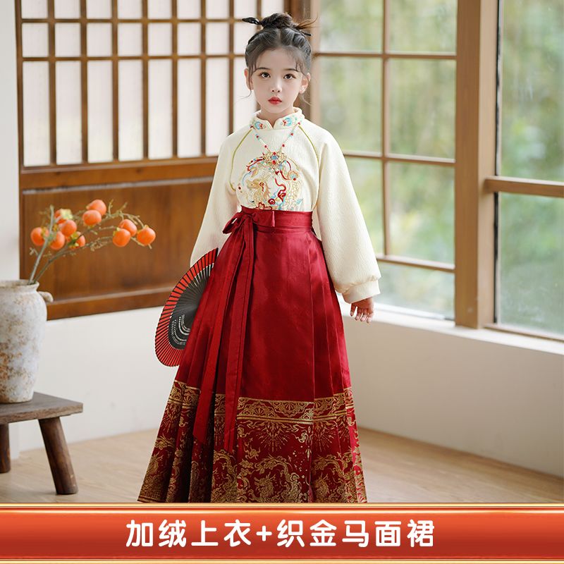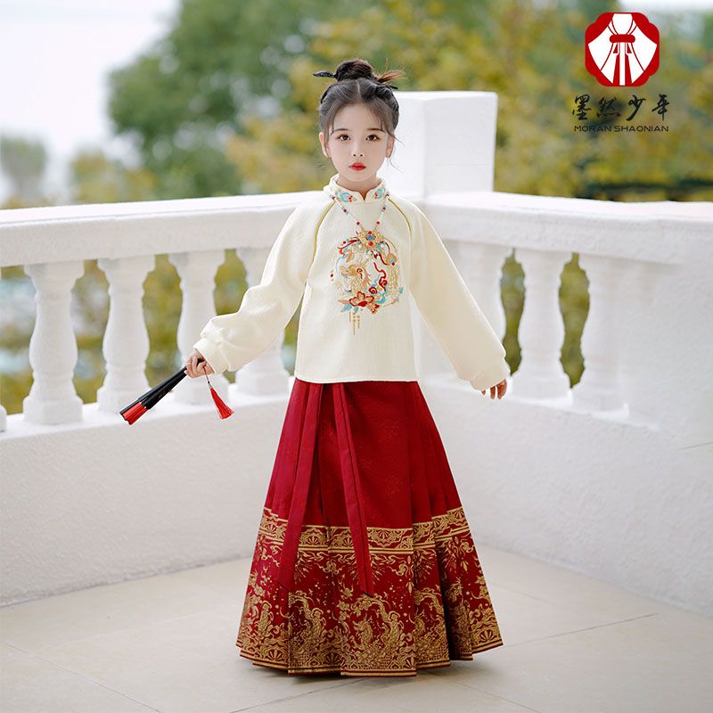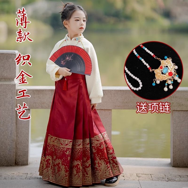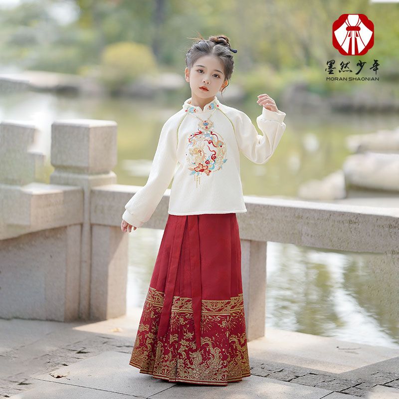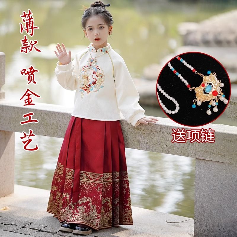 儿童马面裙新款女童套装中国风日常儿童汉服古风秋款长袖薄款唐装